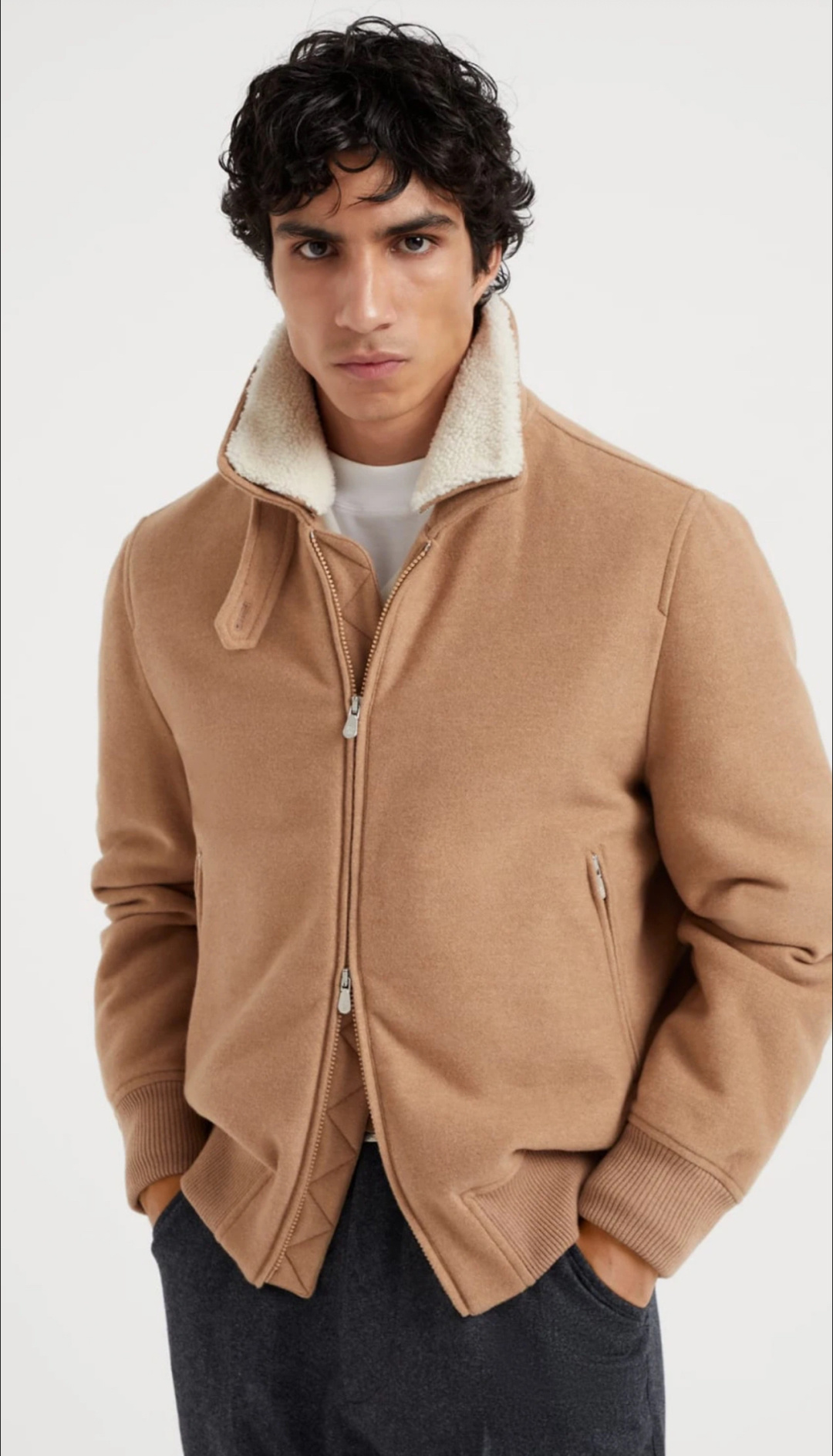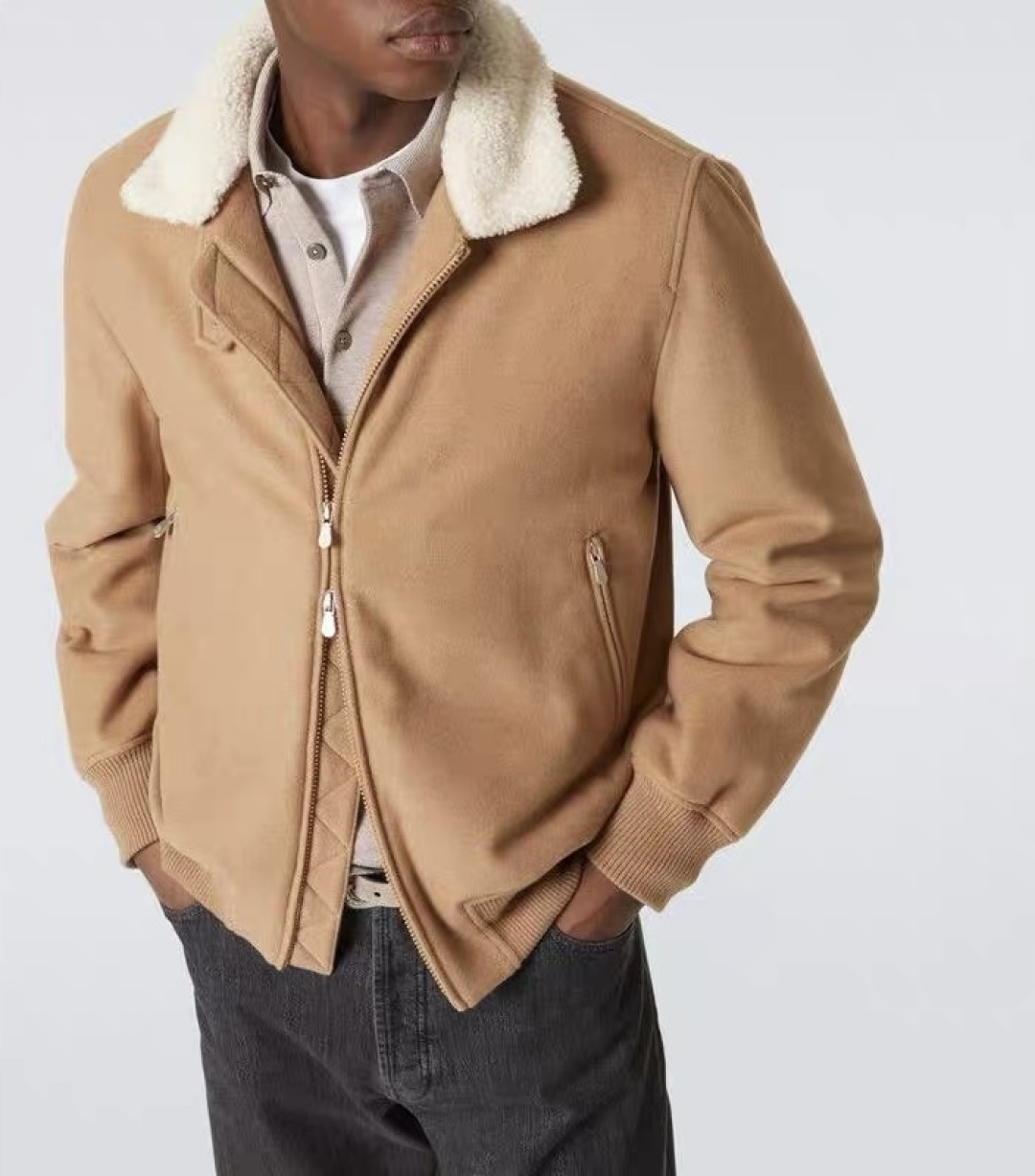 这款衣服是AAAAA 1:1 质量 (非常棒). 使用了和原版一模一样的材料. 商标部分也保持了和Brunello Cucinelli一样. 图片拍摄是实物衣服拍摄, 您所收到的实物保证和我们图片一模一样.