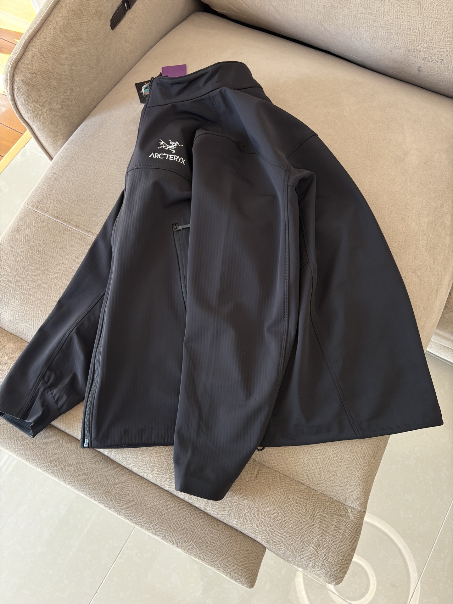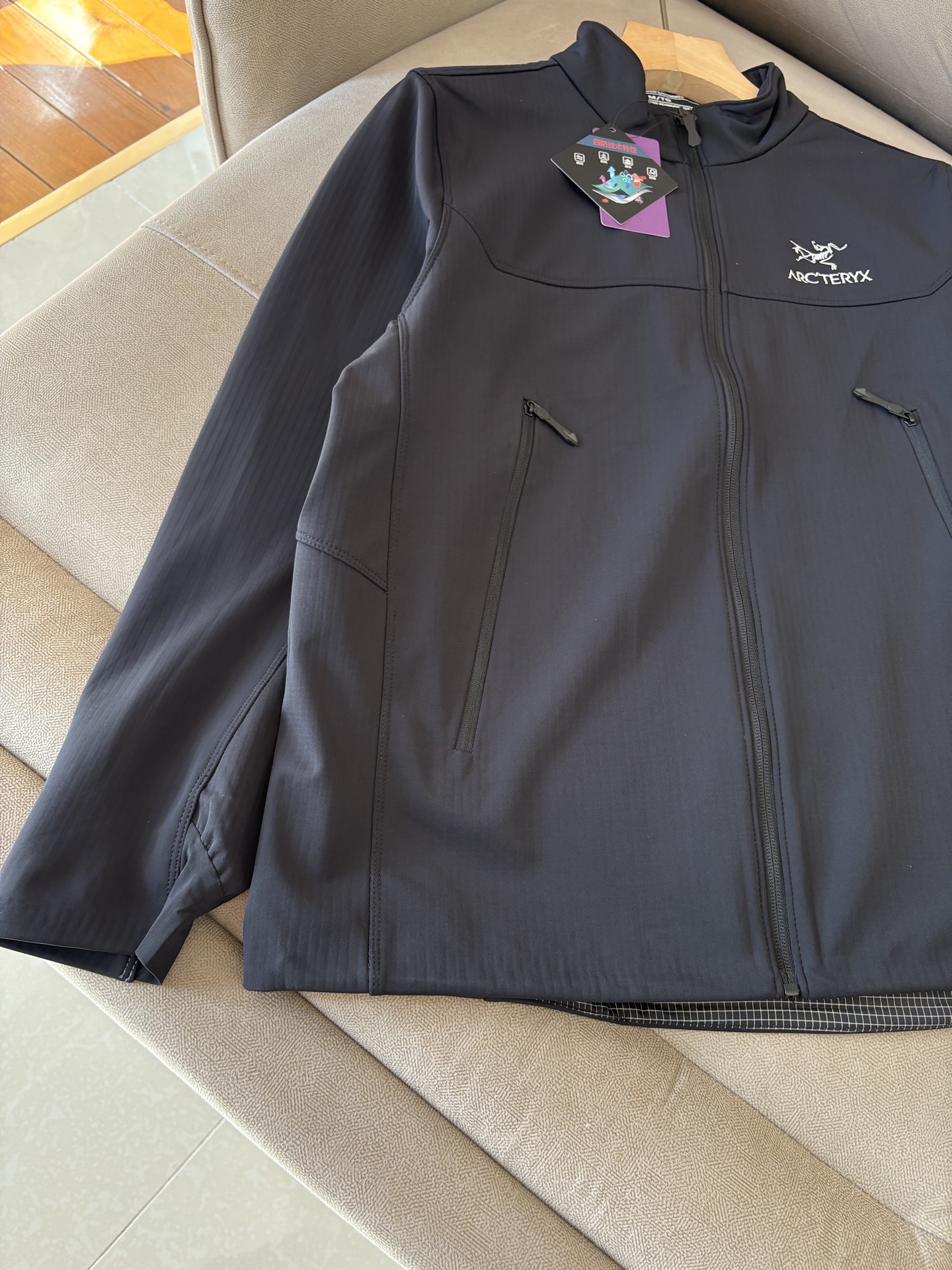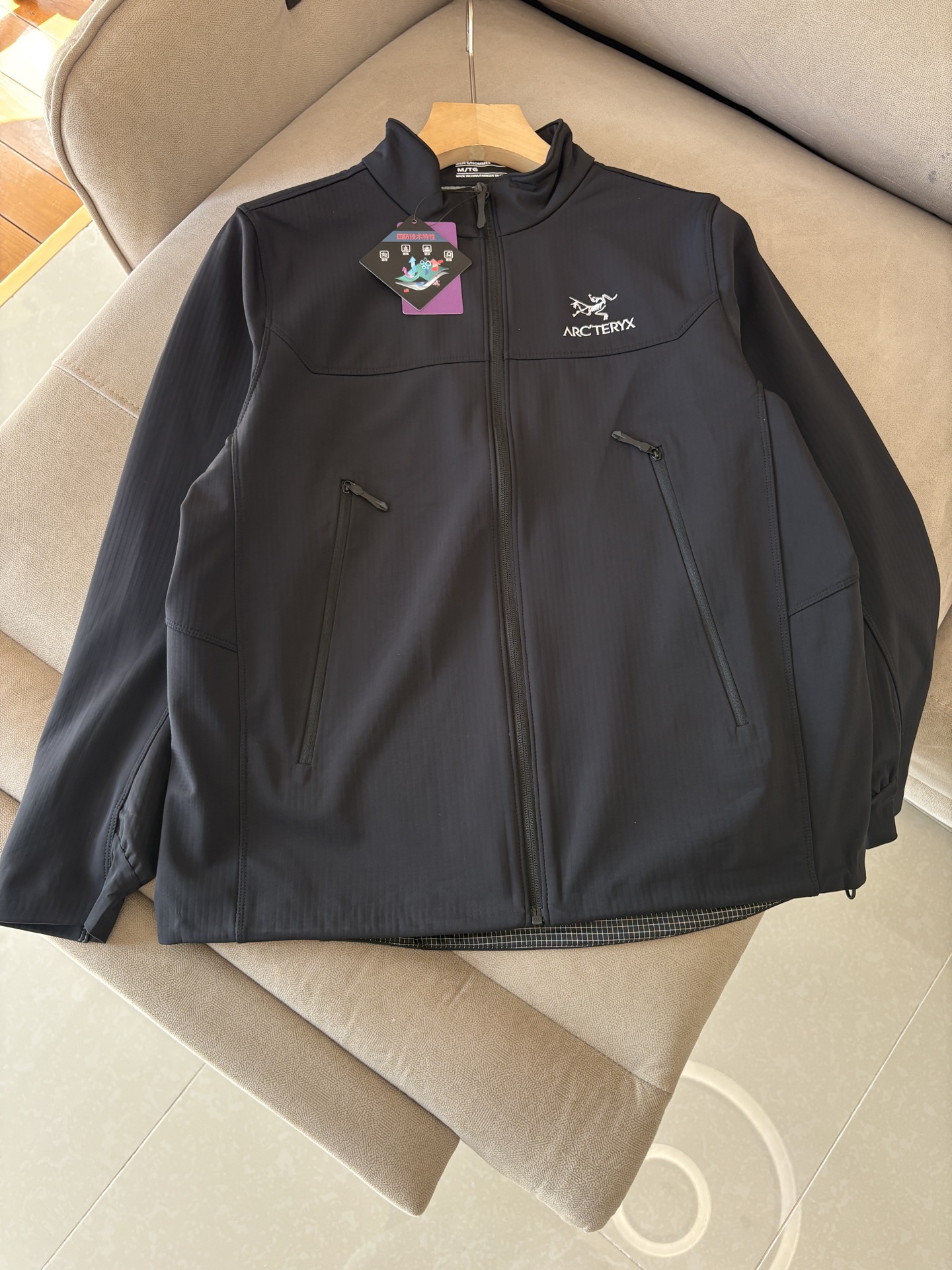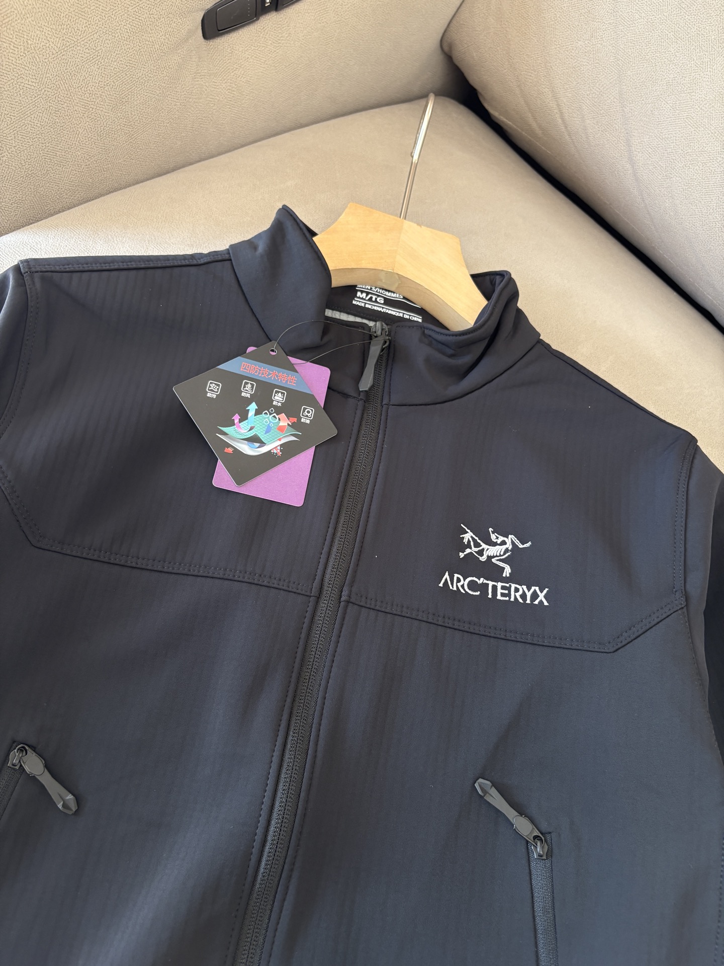 这款衣服是AAAAA 1:1 质量 (非常棒). 使用了和原版一模一样的材料. 商标部分也保持了和ARC'TERYX一样. 图片拍摄是实物衣服拍摄, 您所收到的实物保证和我们图片一模一样.
