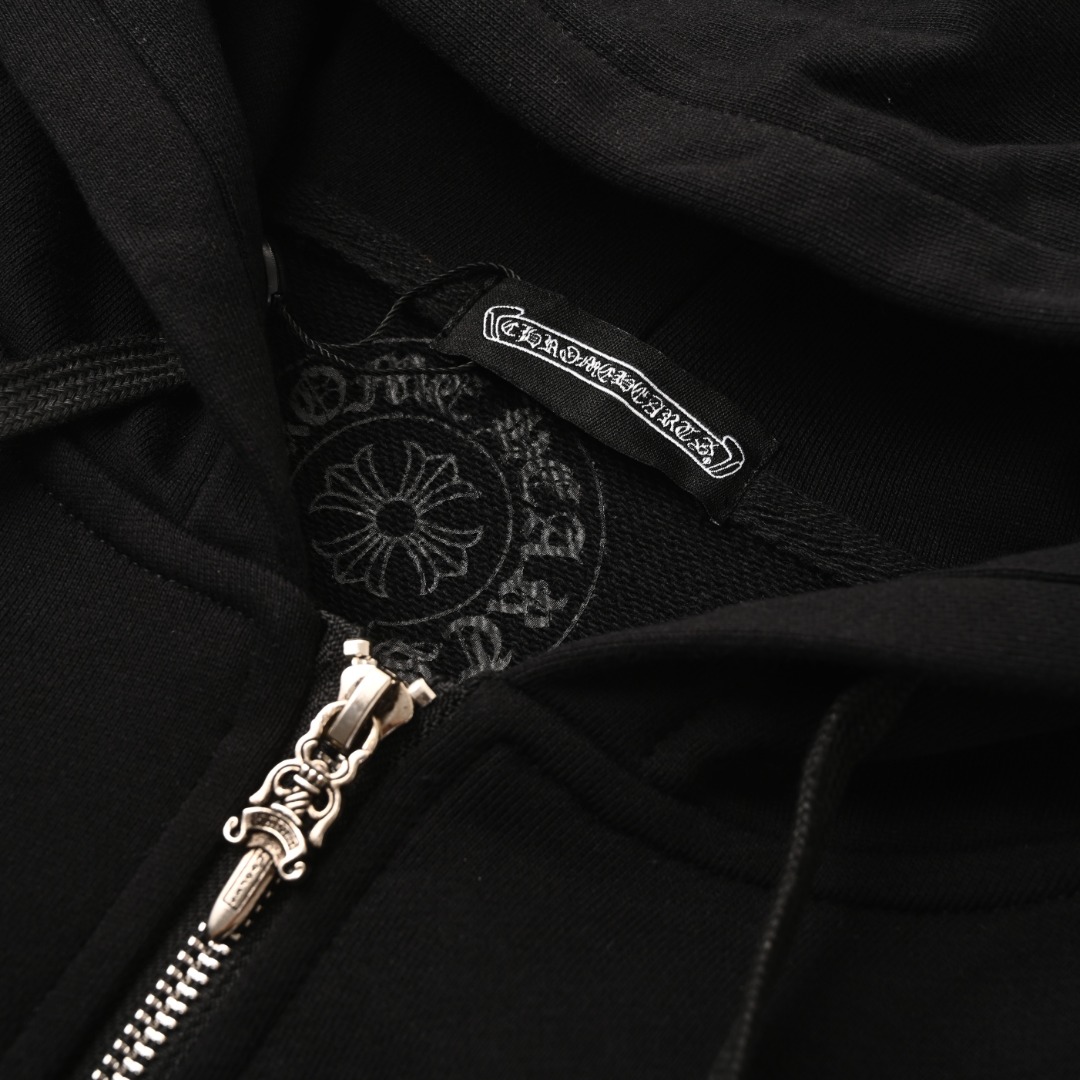 这款衣服是AAAAA 1:1 质量 (非常棒). 使用了和原版一模一样的材料. 商标部分也保持了和克罗心/Chrome Hearts一样. 图片拍摄是实物衣服拍摄, 您所收到的实物保证和我们图片一模一样.