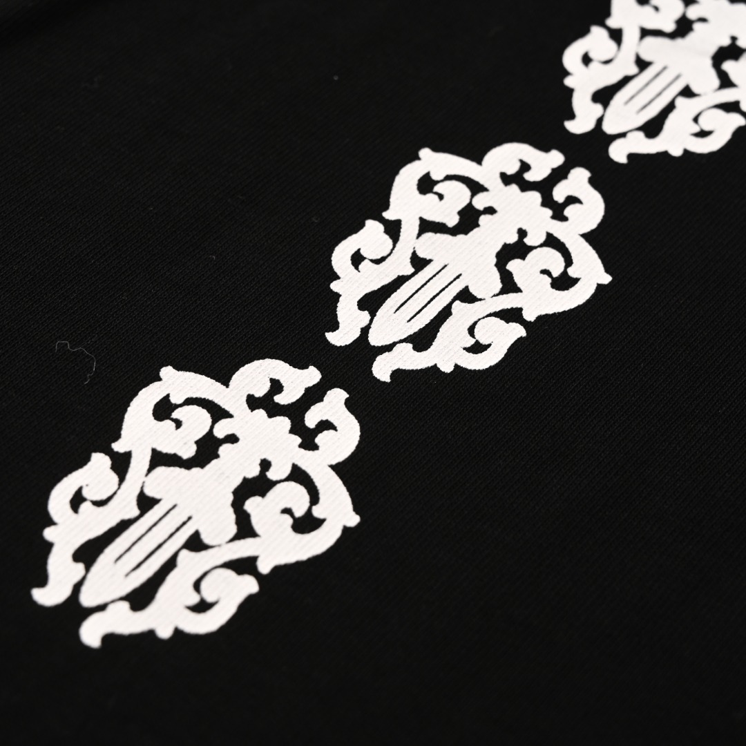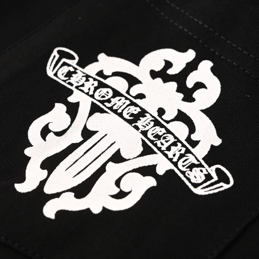 这款衣服是AAAAA 1:1 质量 (非常棒). 使用了和原版一模一样的材料. 商标部分也保持了和克罗心/Chrome Hearts一样. 图片拍摄是实物衣服拍摄, 您所收到的实物保证和我们图片一模一样.