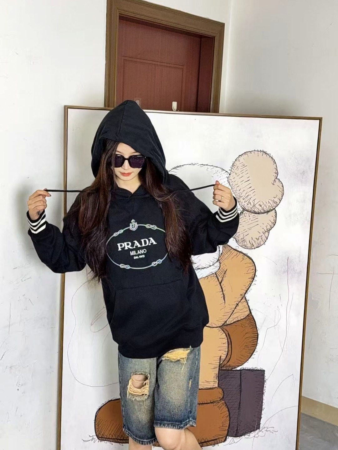 这款衣服是AAAAA 1:1 质量 (非常棒). 使用了和原版一模一样的材料. 商标部分也保持了和普拉达/Prada一样. 图片拍摄是实物衣服拍摄, 您所收到的实物保证和我们图片一模一样.