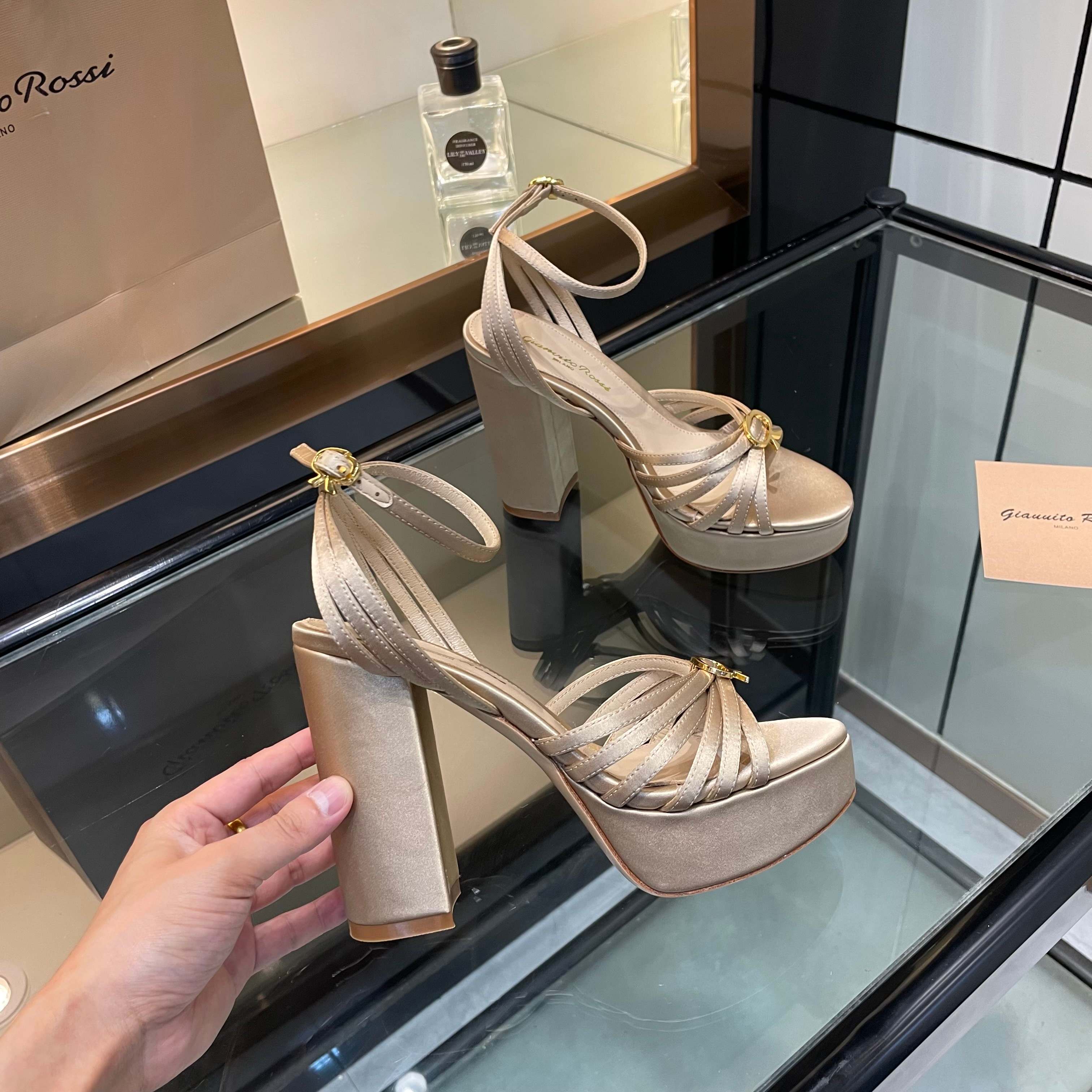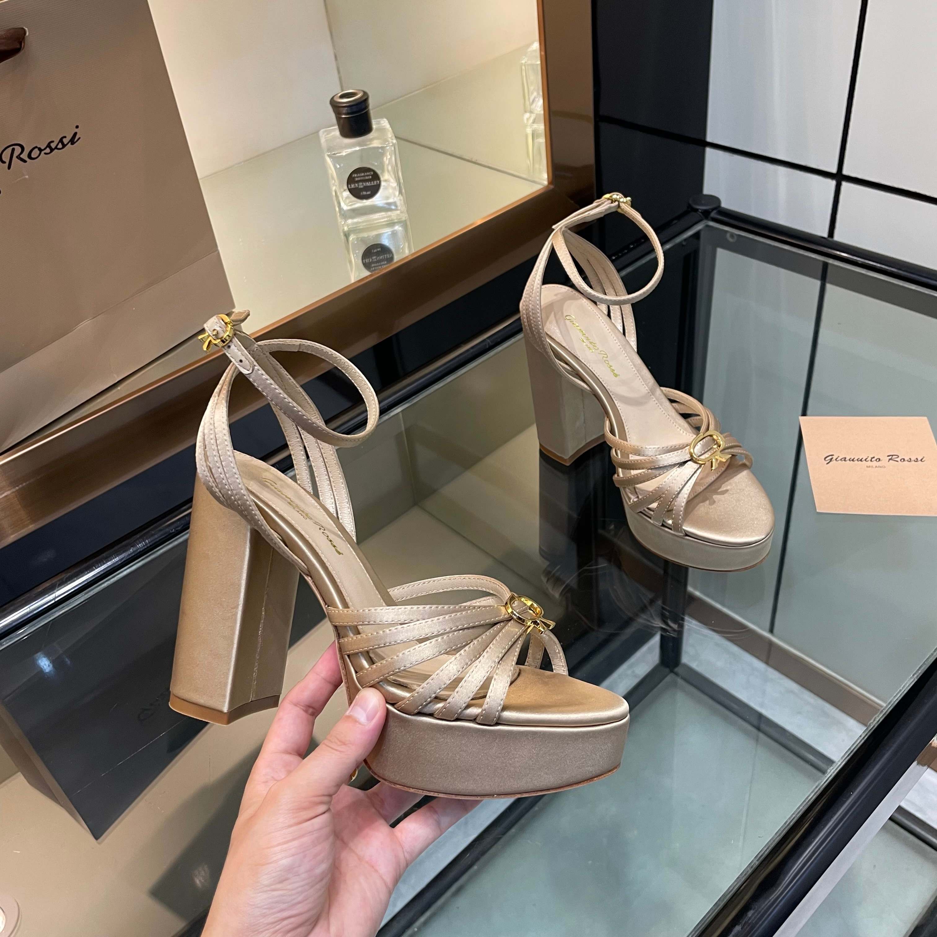 这款鞋子是AAAAA 1:1 质量 (非常棒). 使用了和原版一模一样的材料. 商标部分也保持了和Gianvito Rossi一样. 图片拍摄是实物鞋子拍摄, 您所收到的实物保证和我们图片一模一样.