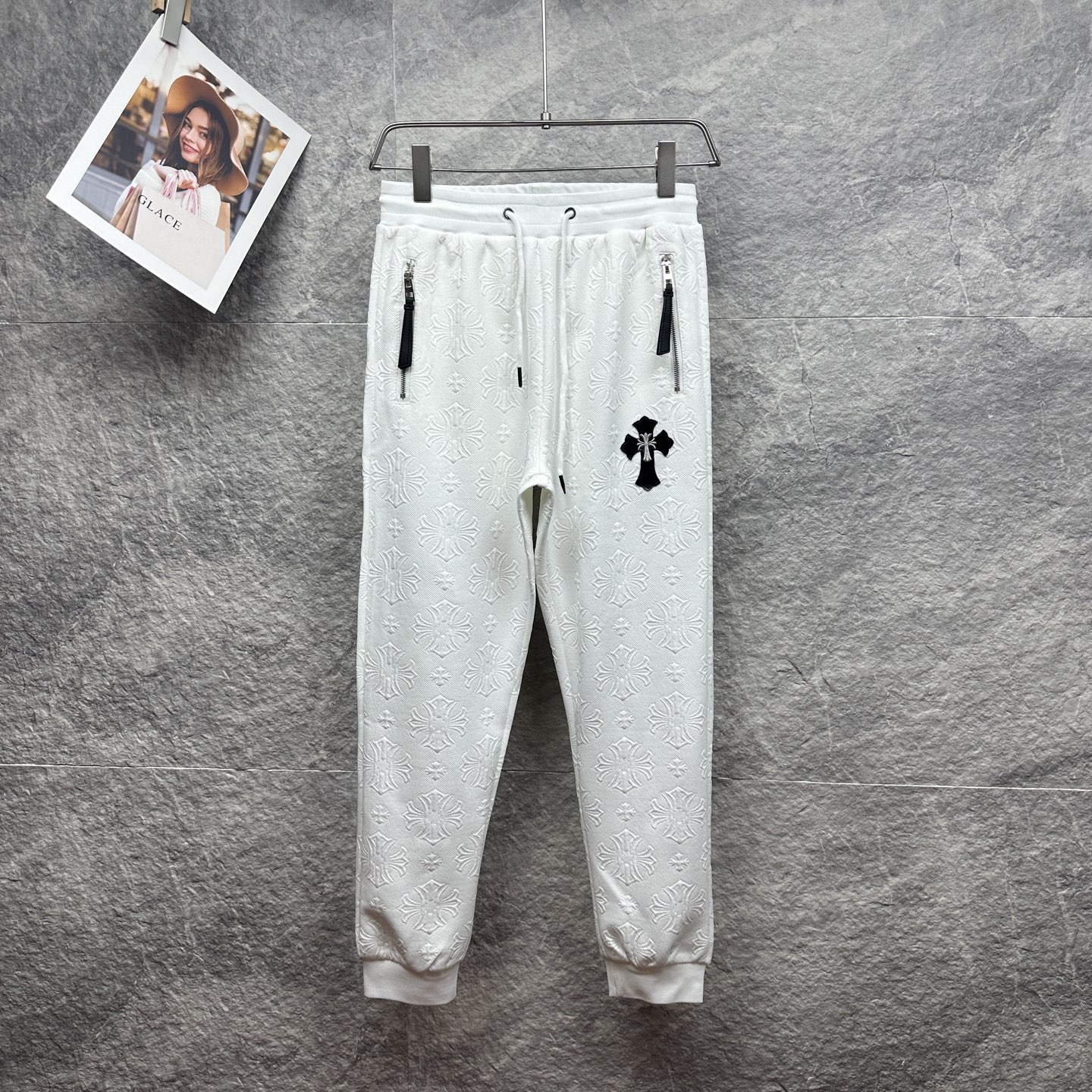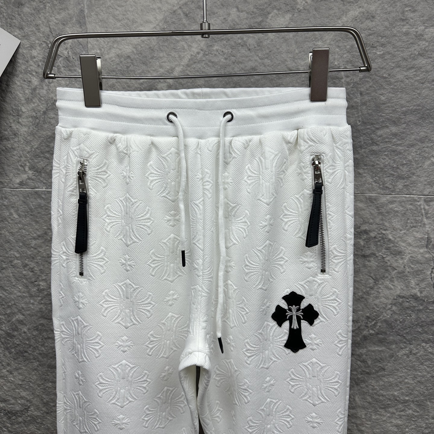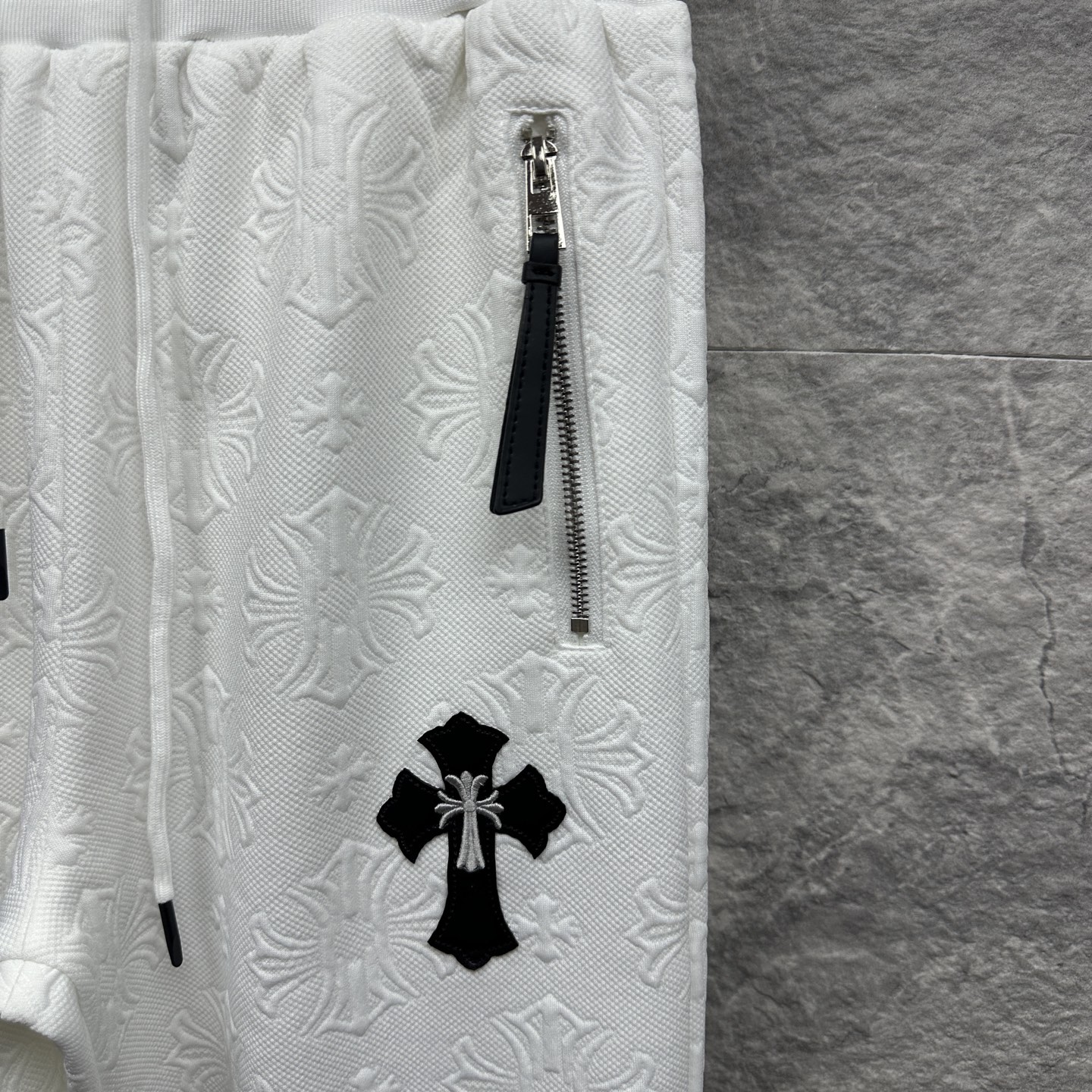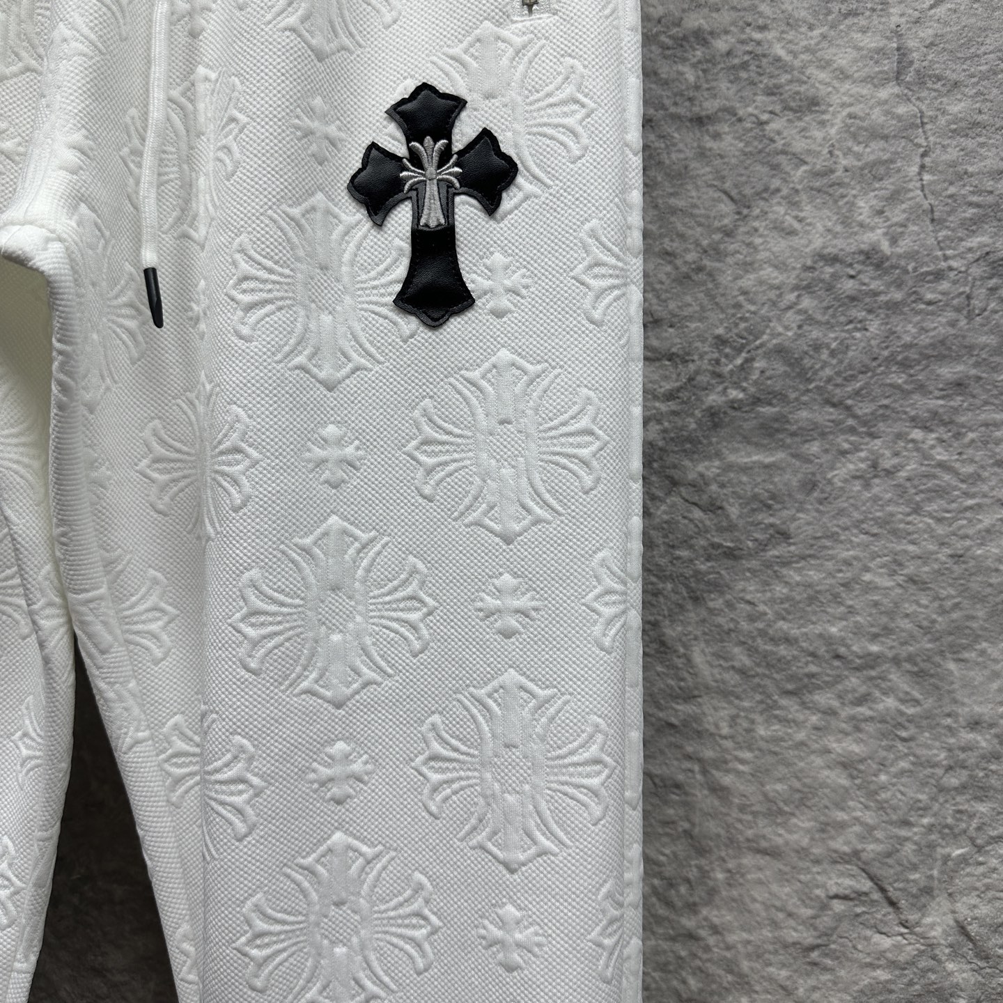 这款衣服是AAAAA 1:1 质量 (非常棒). 使用了和原版一模一样的材料. 商标部分也保持了和克罗心/Chrome Hearts一样. 图片拍摄是实物衣服拍摄, 您所收到的实物保证和我们图片一模一样.