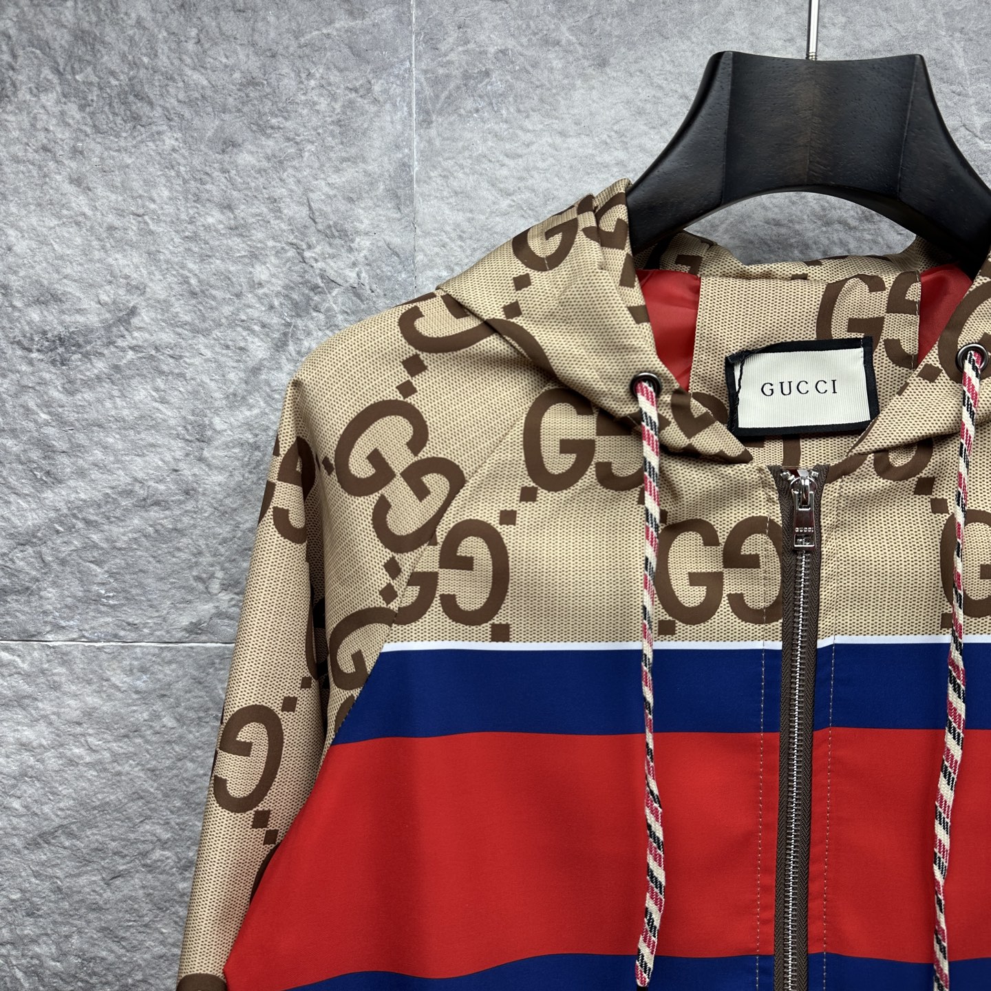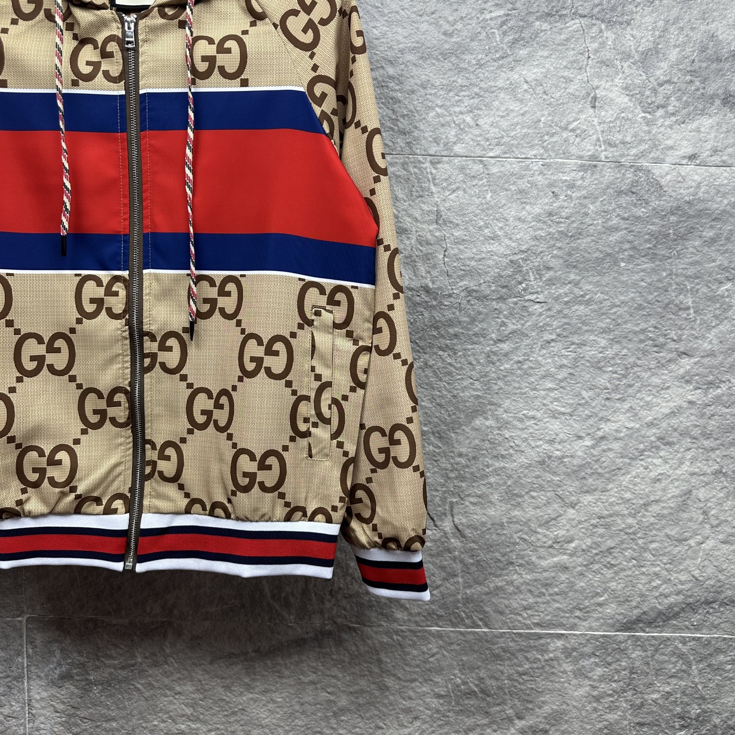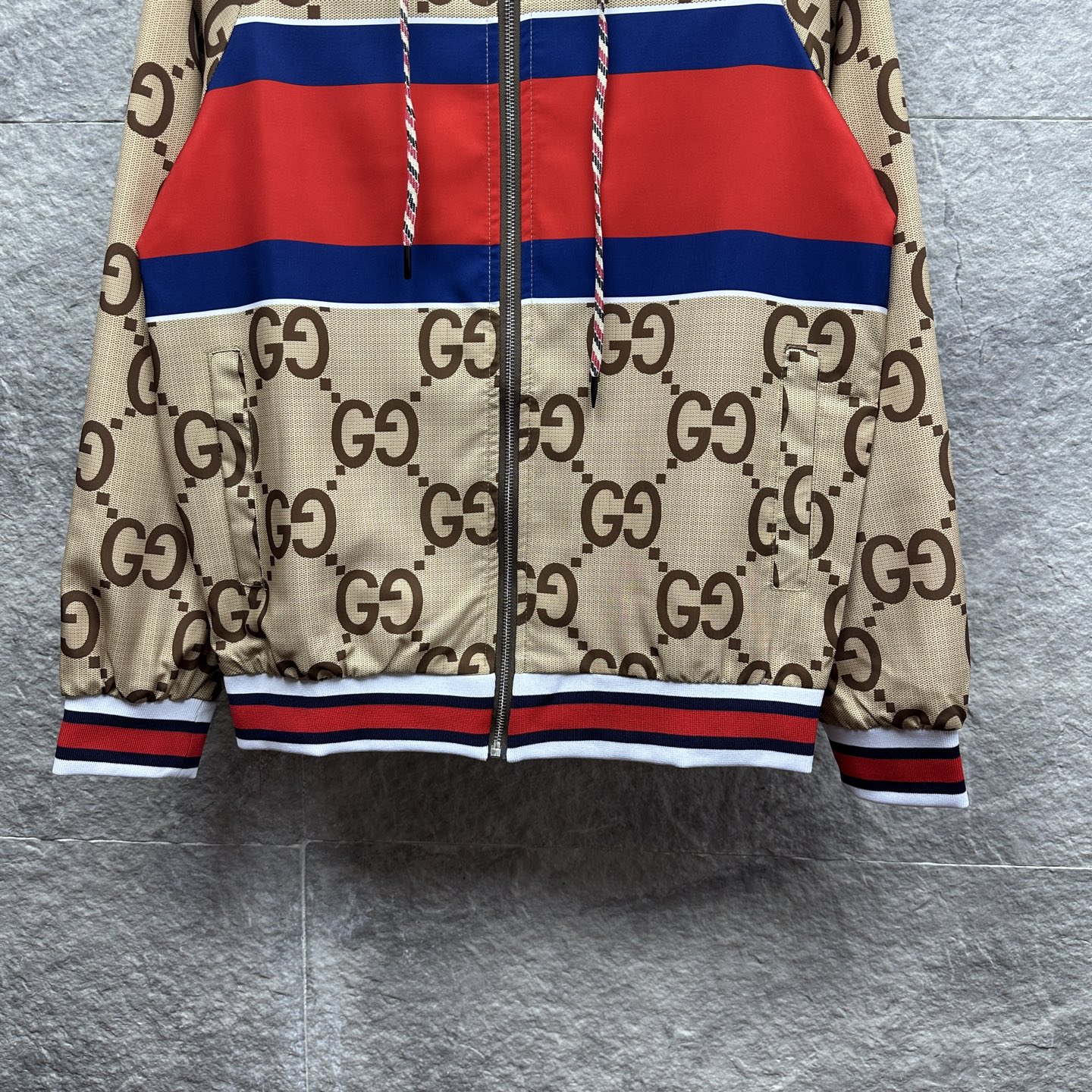 这款衣服是AAAAA 1:1 质量 (非常棒). 使用了和原版一模一样的材料. 商标部分也保持了和古奇/Gucci一样. 图片拍摄是实物衣服拍摄, 您所收到的实物保证和我们图片一模一样.