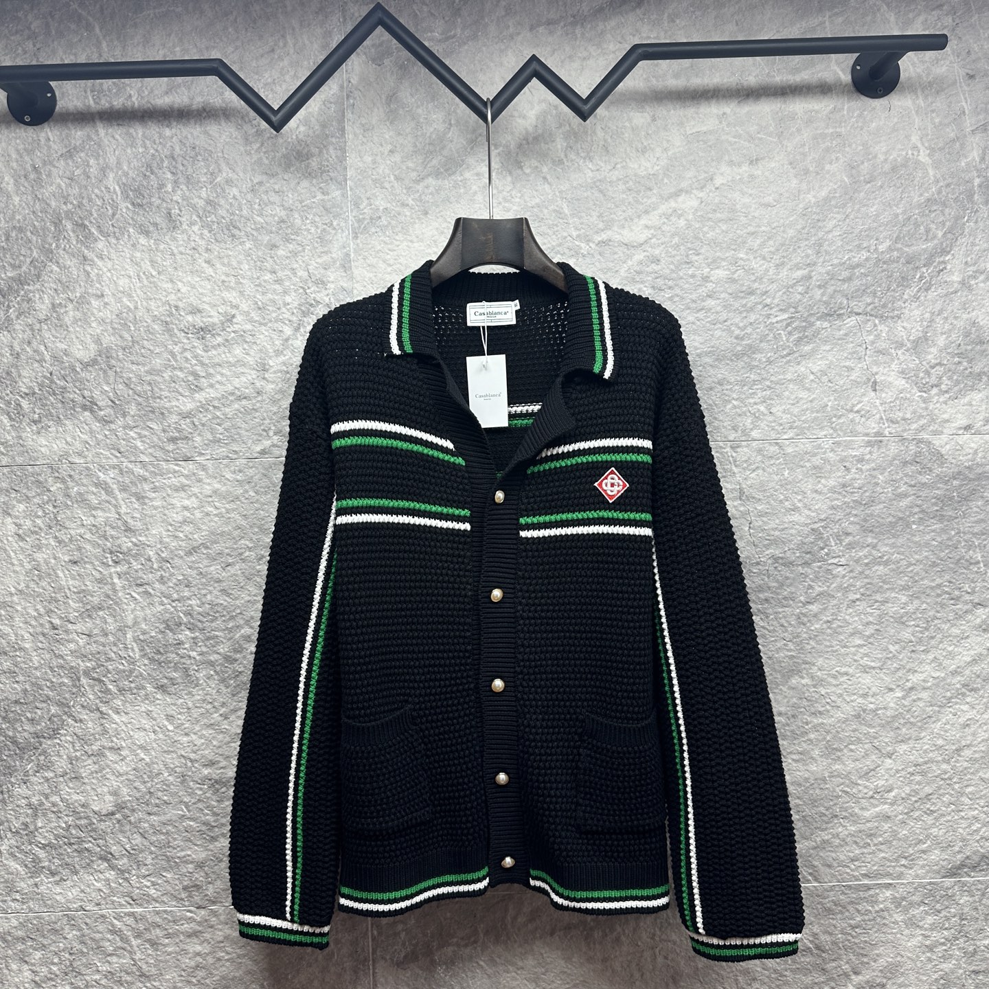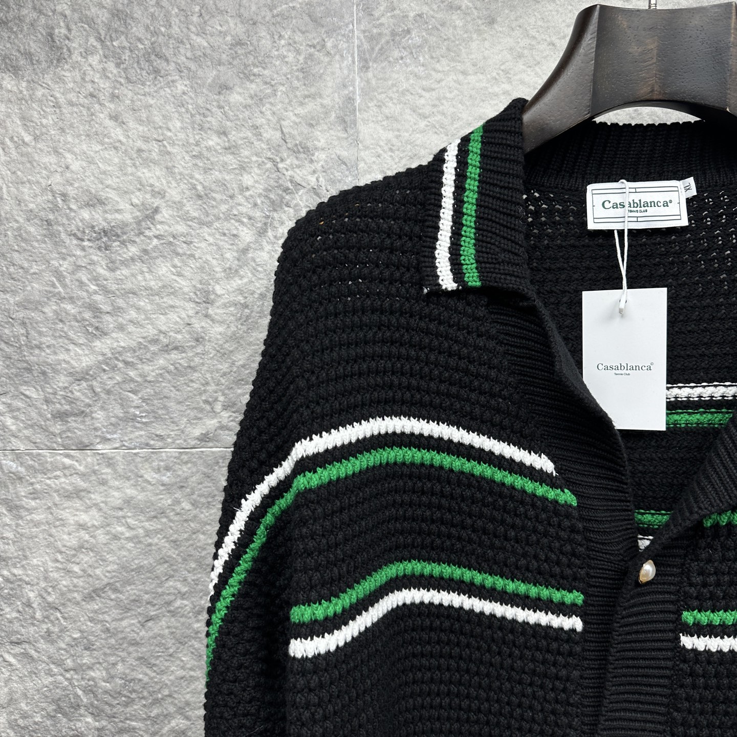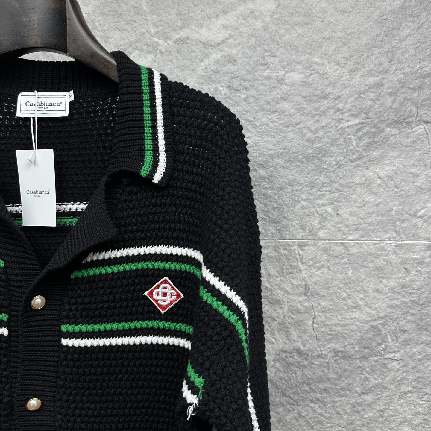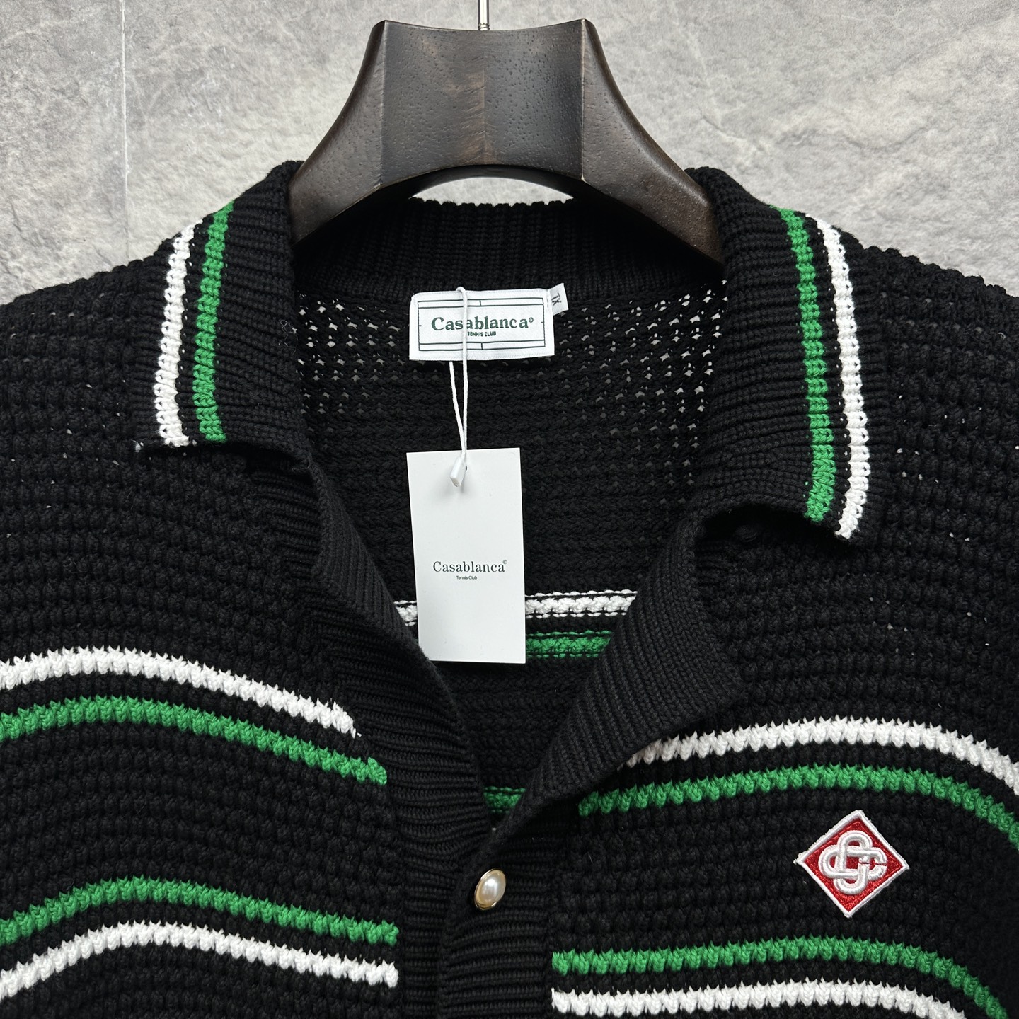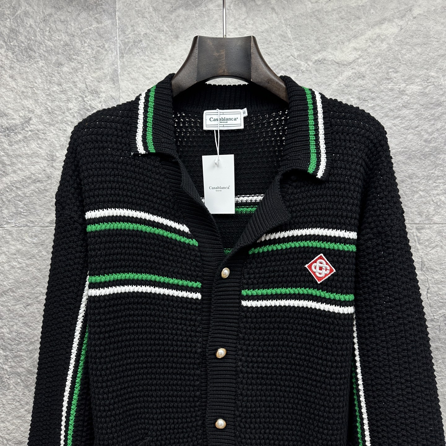 这款衣服是AAAAA 1:1 质量 (非常棒). 使用了和原版一模一样的材料. 商标部分也保持了和Casablanca一样. 图片拍摄是实物衣服拍摄, 您所收到的实物保证和我们图片一模一样.