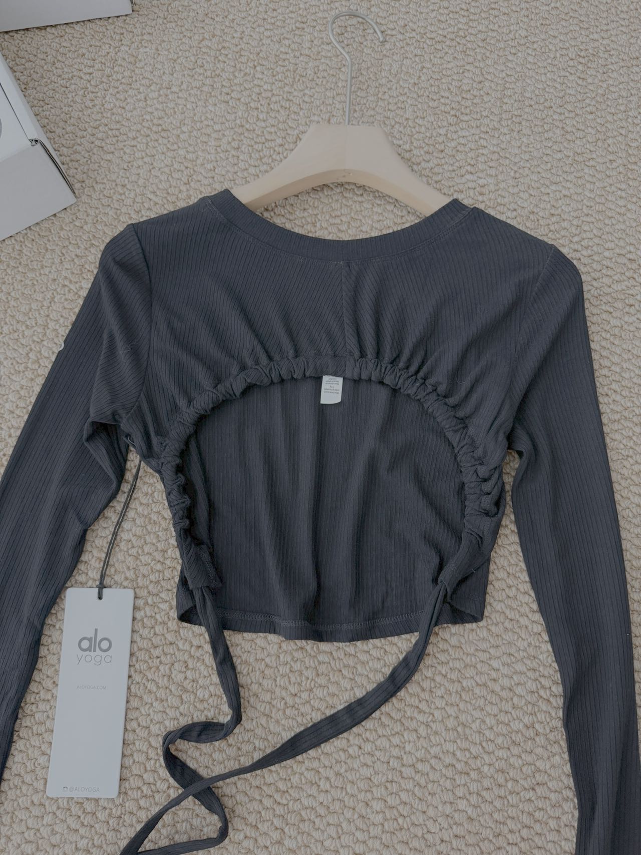 这款衣服是AAAAA 1:1 质量 (非常棒). 使用了和原版一模一样的材料. 商标部分也保持了和Alo Yoga一样. 图片拍摄是实物衣服拍摄, 您所收到的实物保证和我们图片一模一样.