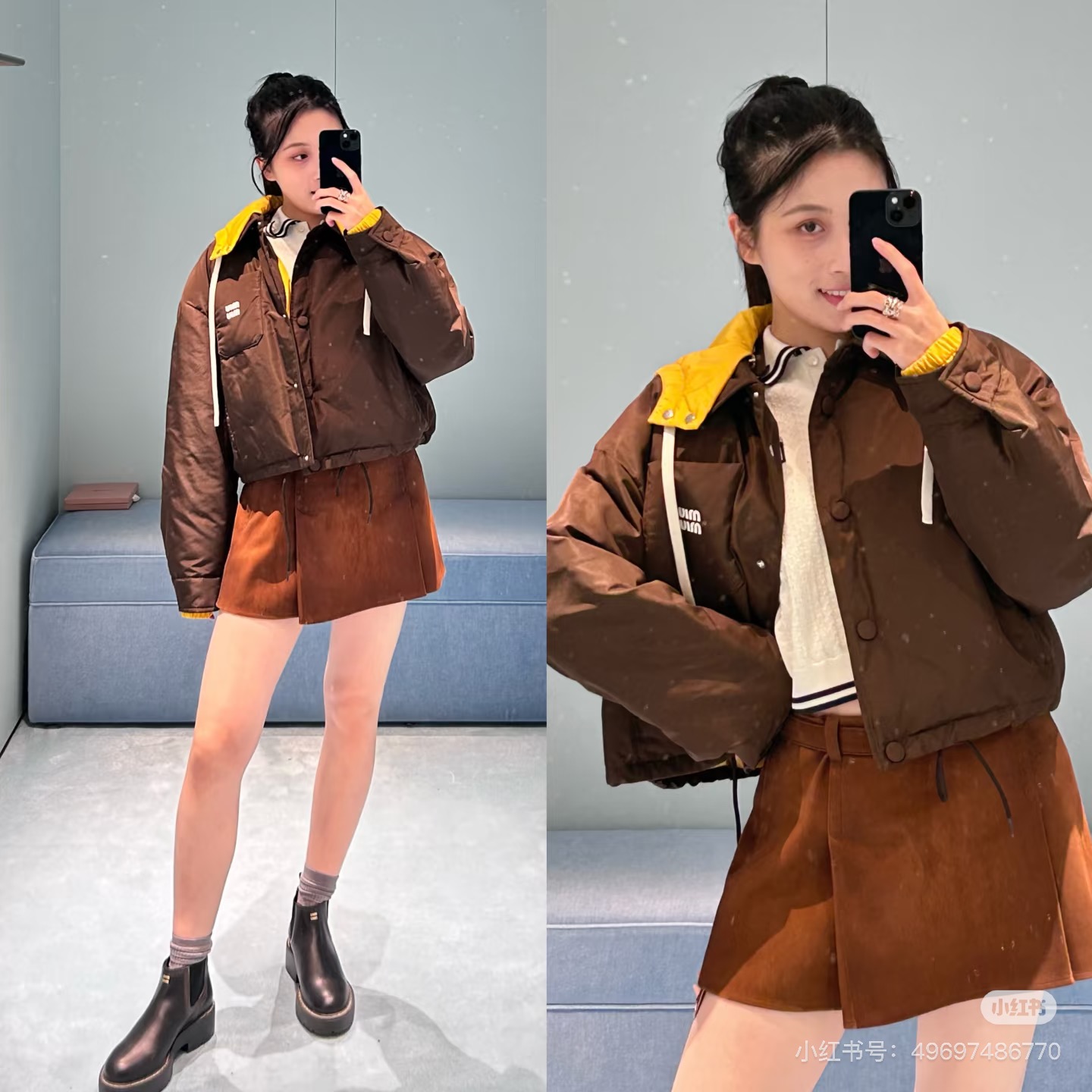 这款衣服是AAAAA 1:1 质量 (非常棒). 使用了和原版一模一样的材料. 商标部分也保持了和缪缪/Miu Miu一样. 图片拍摄是实物衣服拍摄, 您所收到的实物保证和我们图片一模一样.