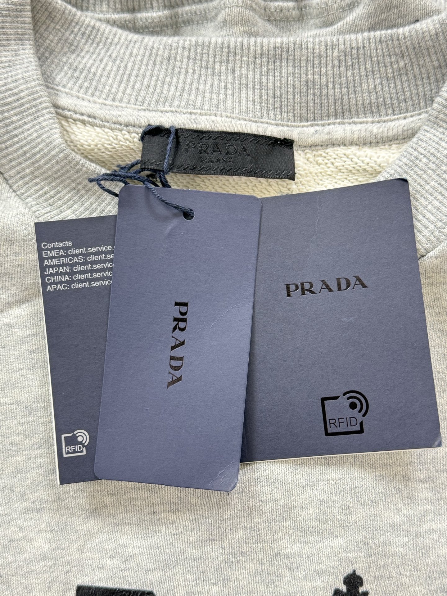 这款衣服是AAAAA 1:1 质量 (非常棒). 使用了和原版一模一样的材料. 商标部分也保持了和普拉达/Prada一样. 图片拍摄是实物衣服拍摄, 您所收到的实物保证和我们图片一模一样.