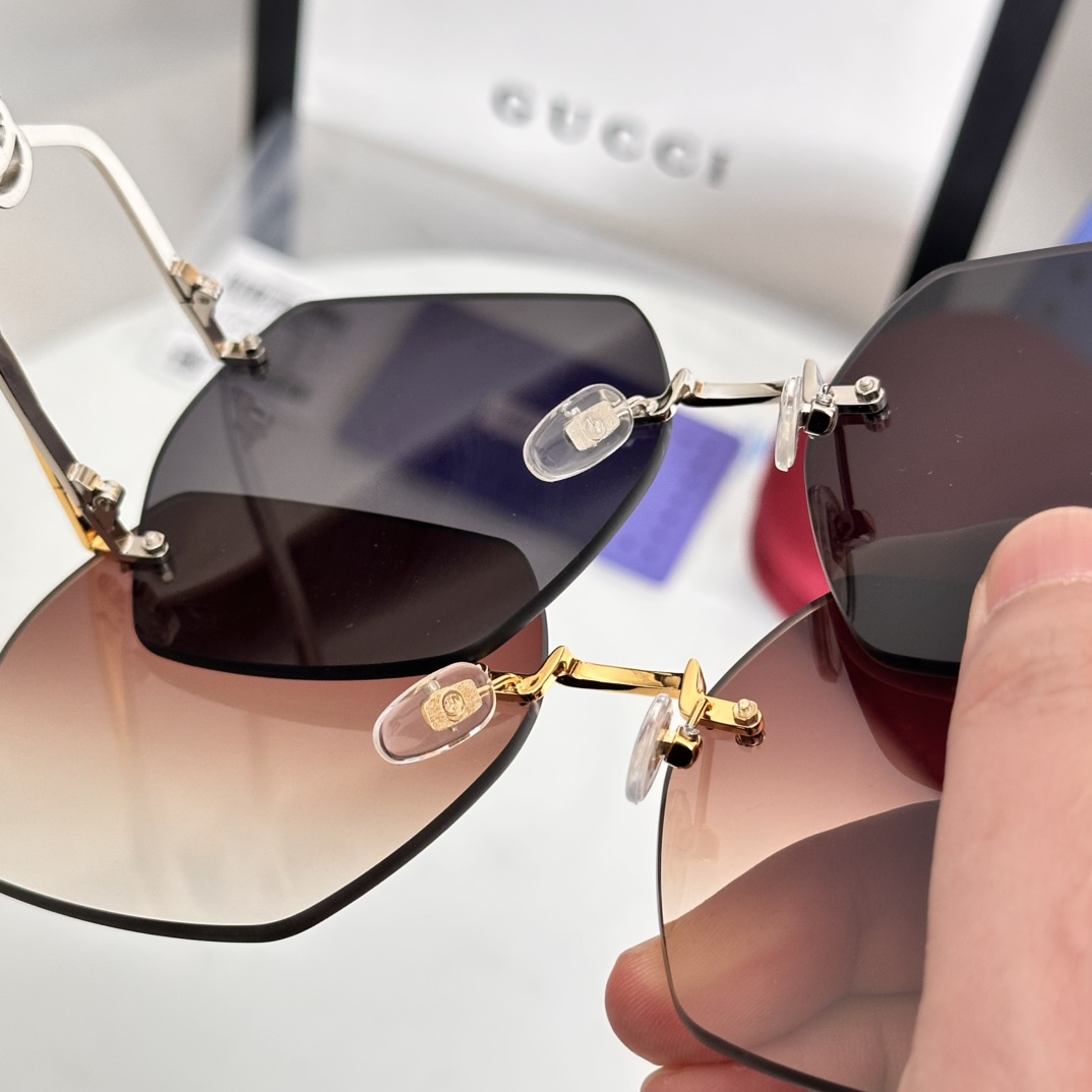 这款太阳眼镜是AAAAA 1:1 质量 (非常棒). 使用了和原版一模一样的材料. 商标部分也保持了和古奇/Gucci一样. 图片拍摄是实物太阳眼镜拍摄, 您所收到的实物保证和我们图片一模一样.