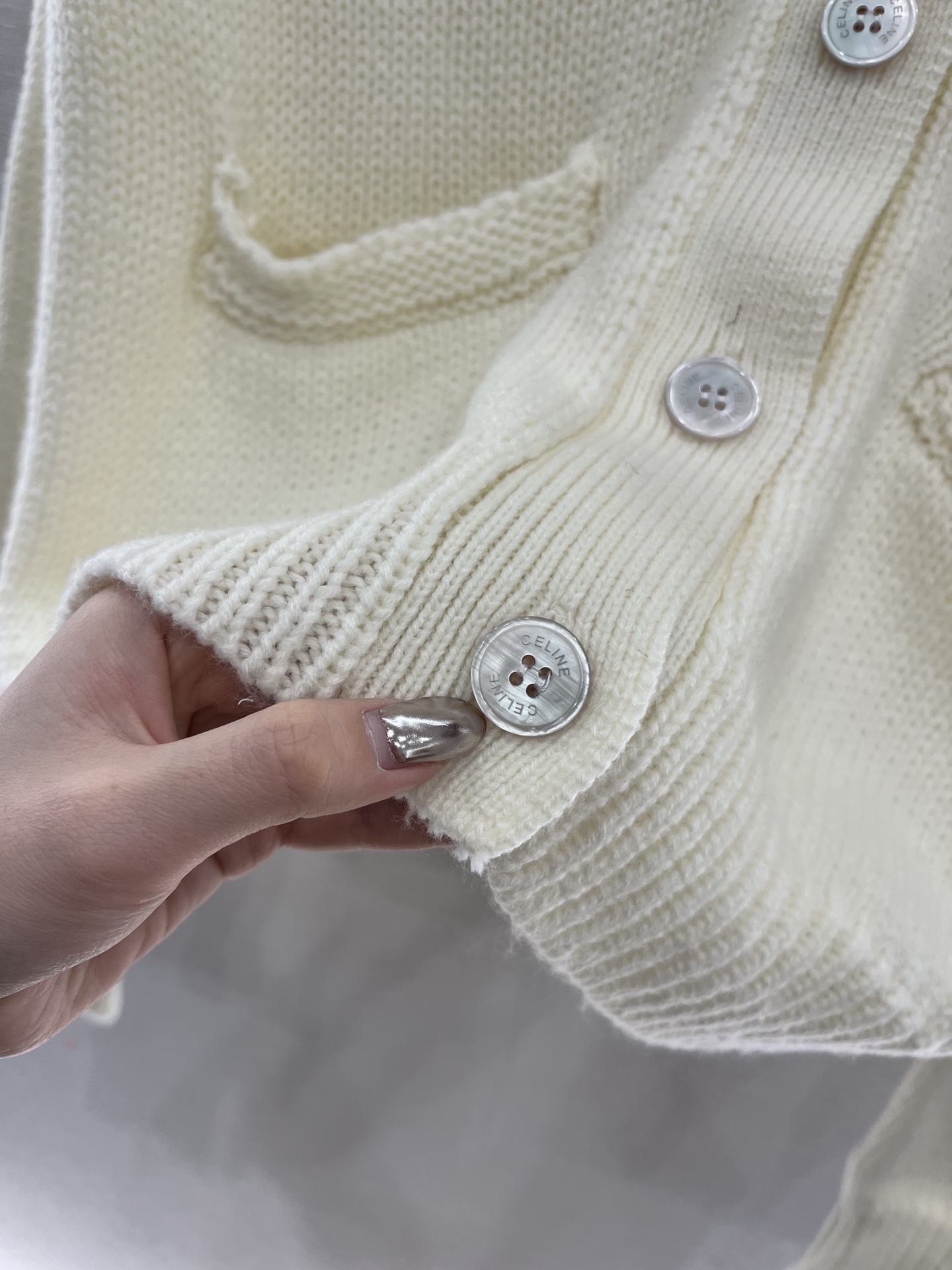 这款衣服是AAAAA 1:1 质量 (非常棒). 使用了和原版一模一样的材料. 商标部分也保持了和思琳/Celine一样. 图片拍摄是实物衣服拍摄, 您所收到的实物保证和我们图片一模一样.