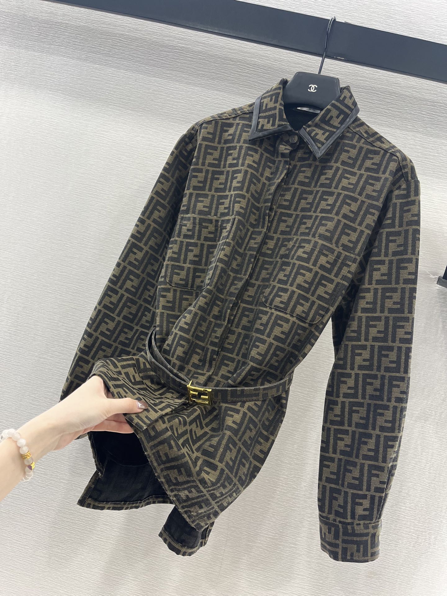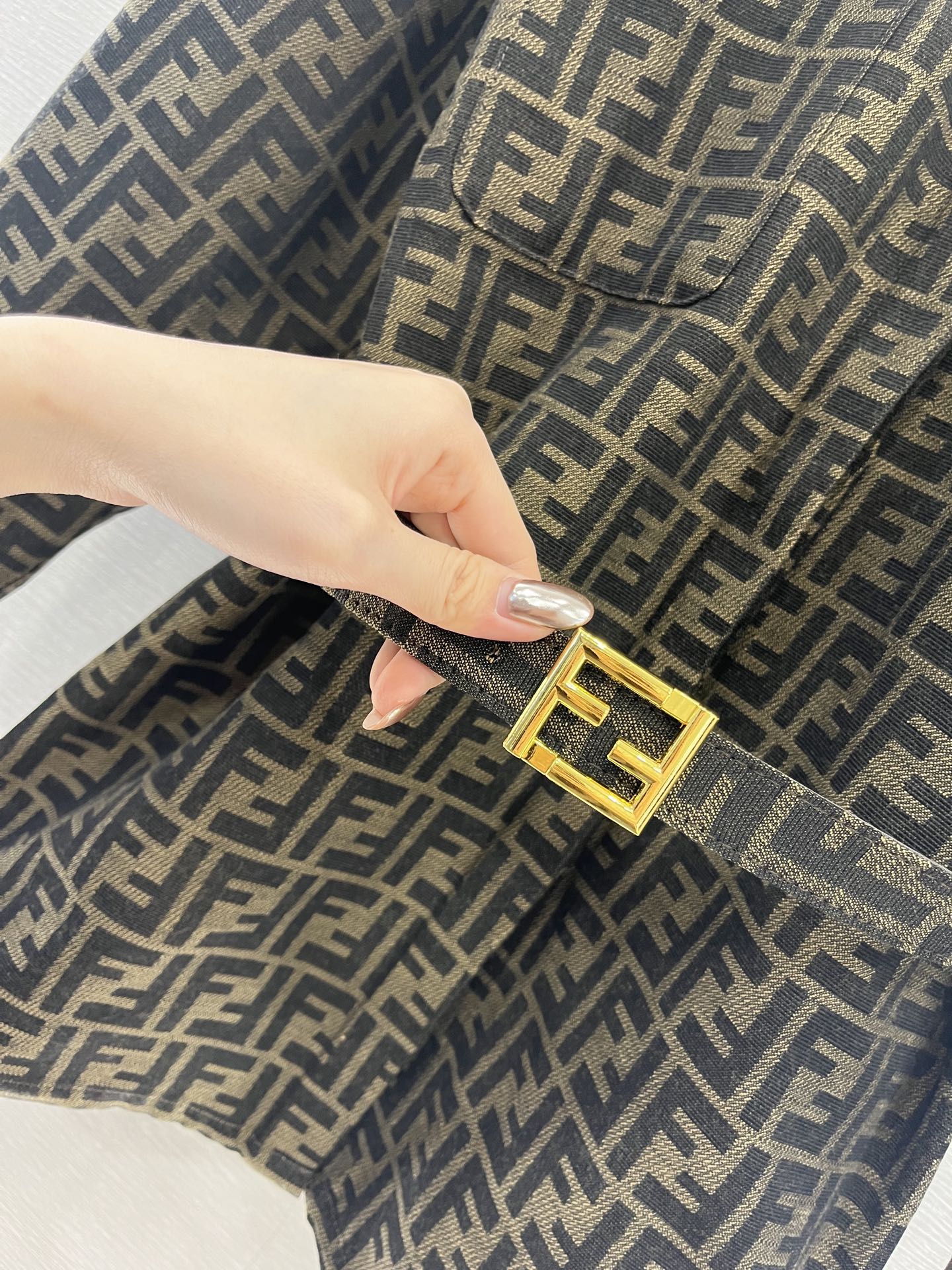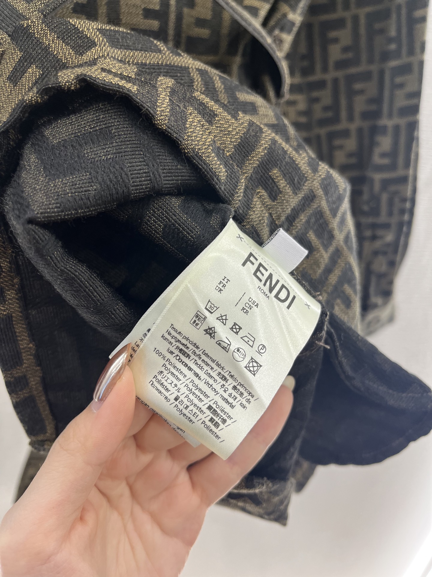 这款衣服是AAAAA 1:1 质量 (非常棒). 使用了和原版一模一样的材料. 商标部分也保持了和芬迪/Fendi一样. 图片拍摄是实物衣服拍摄, 您所收到的实物保证和我们图片一模一样.