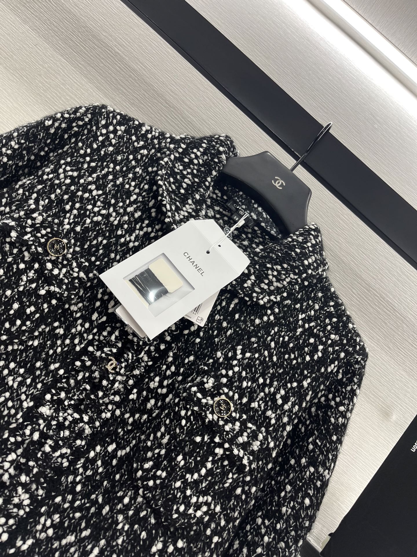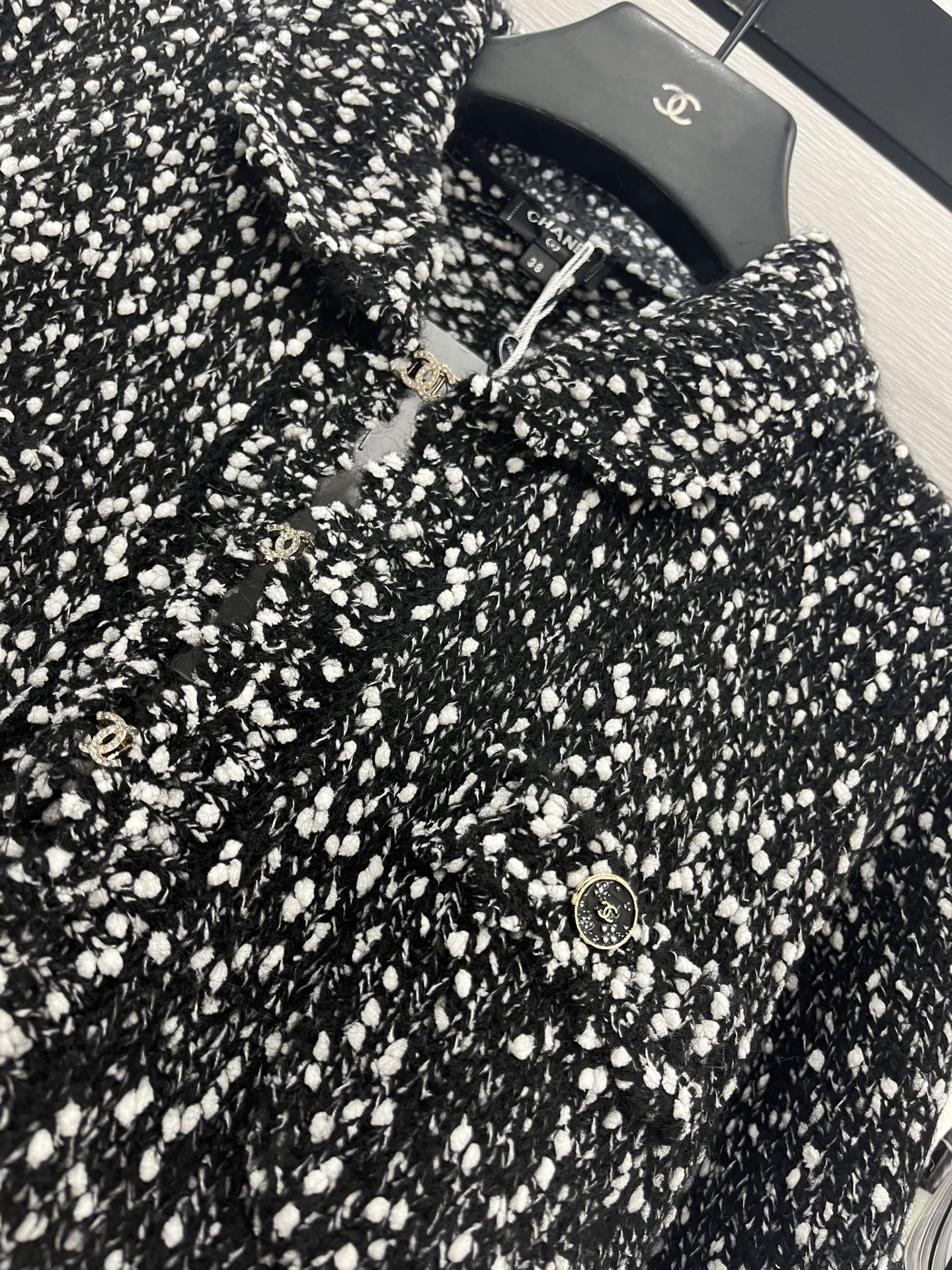 这款衣服是AAAAA 1:1 质量 (非常棒). 使用了和原版一模一样的材料. 商标部分也保持了和香奈儿/Chanel一样. 图片拍摄是实物衣服拍摄, 您所收到的实物保证和我们图片一模一样.