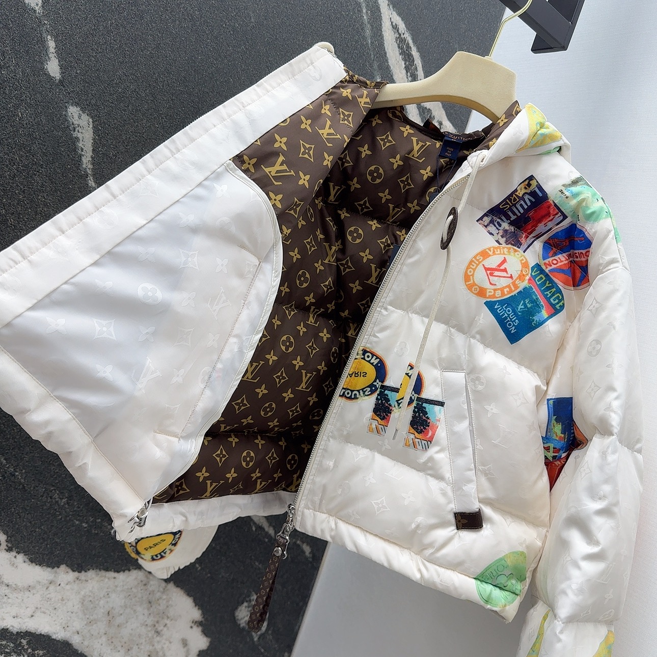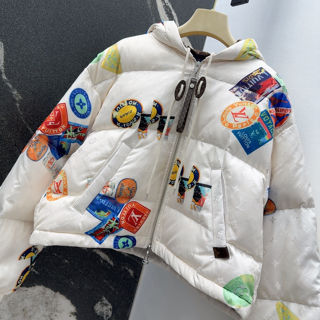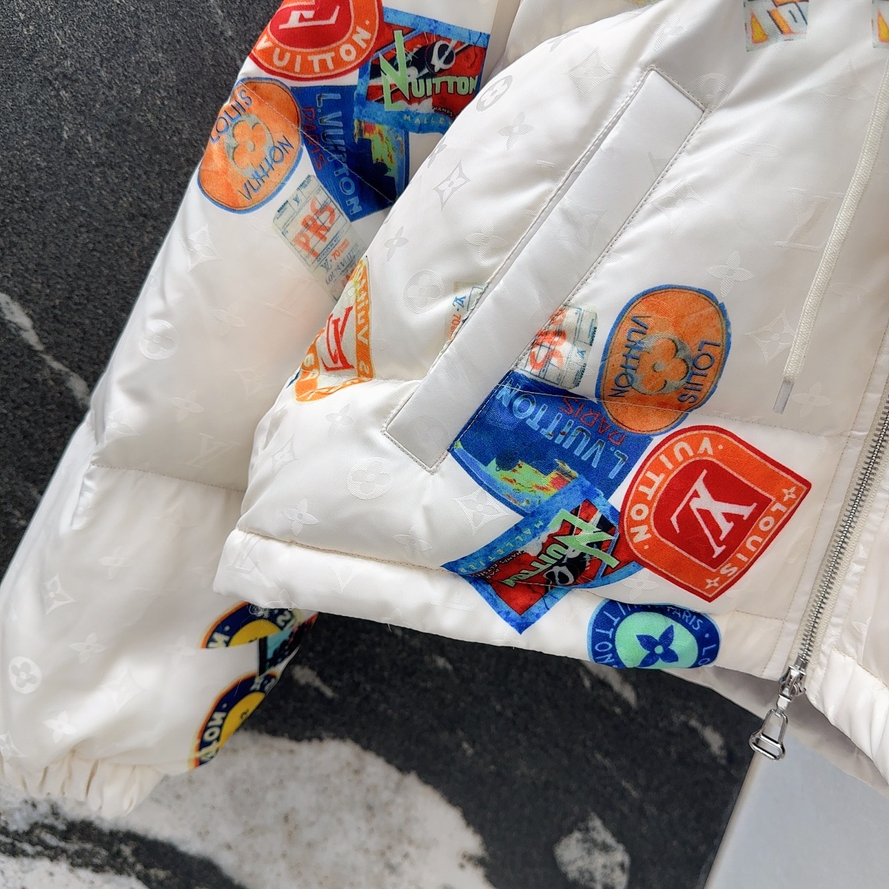 这款衣服是AAAAA 1:1 质量 (非常棒). 使用了和原版一模一样的材料. 商标部分也保持了和路易威登/Louis Vuitton一样. 图片拍摄是实物衣服拍摄, 您所收到的实物保证和我们图片一模一样.