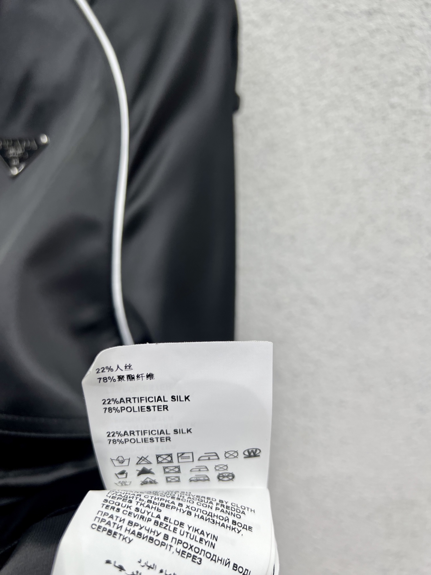 这款衣服是AAAAA 1:1 质量 (非常棒). 使用了和原版一模一样的材料. 商标部分也保持了和普拉达/Prada一样. 图片拍摄是实物衣服拍摄, 您所收到的实物保证和我们图片一模一样.