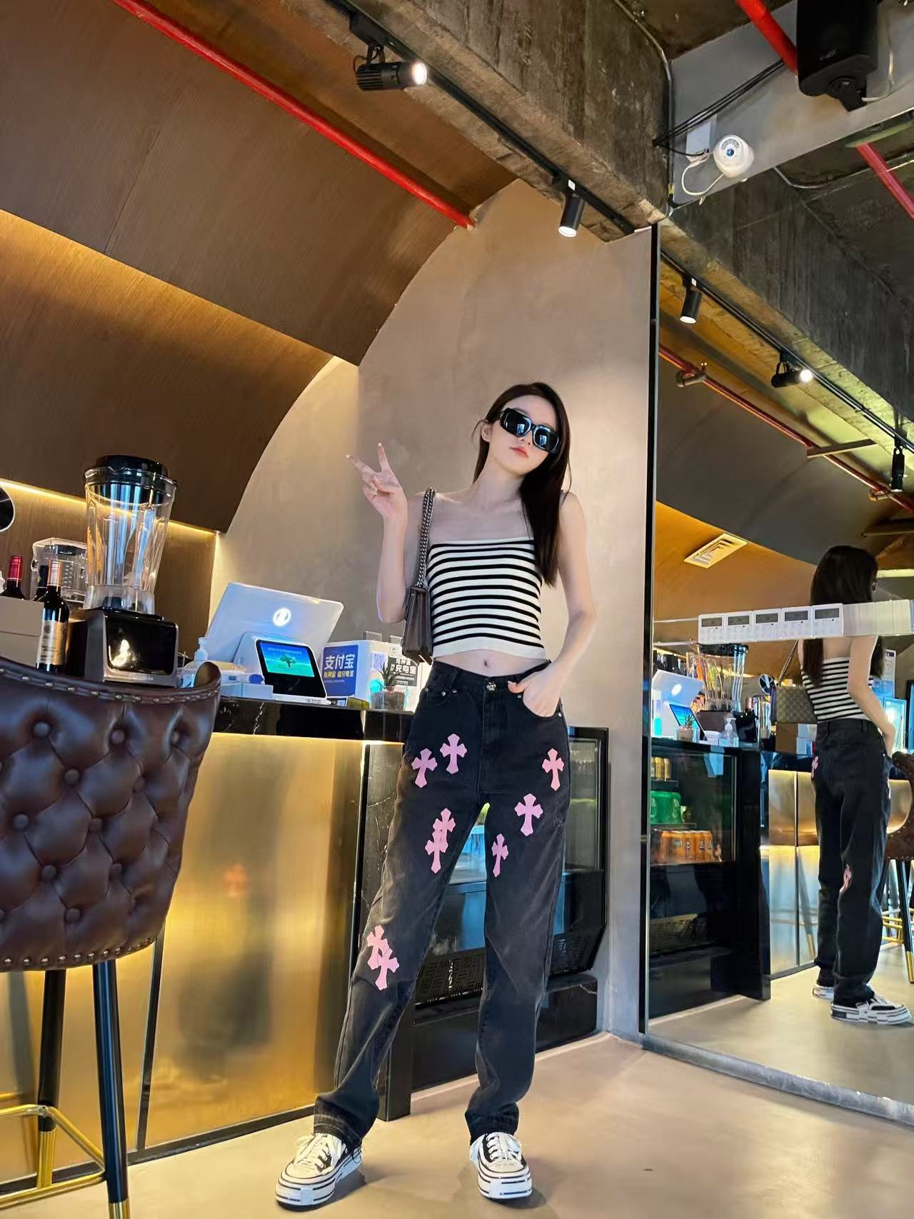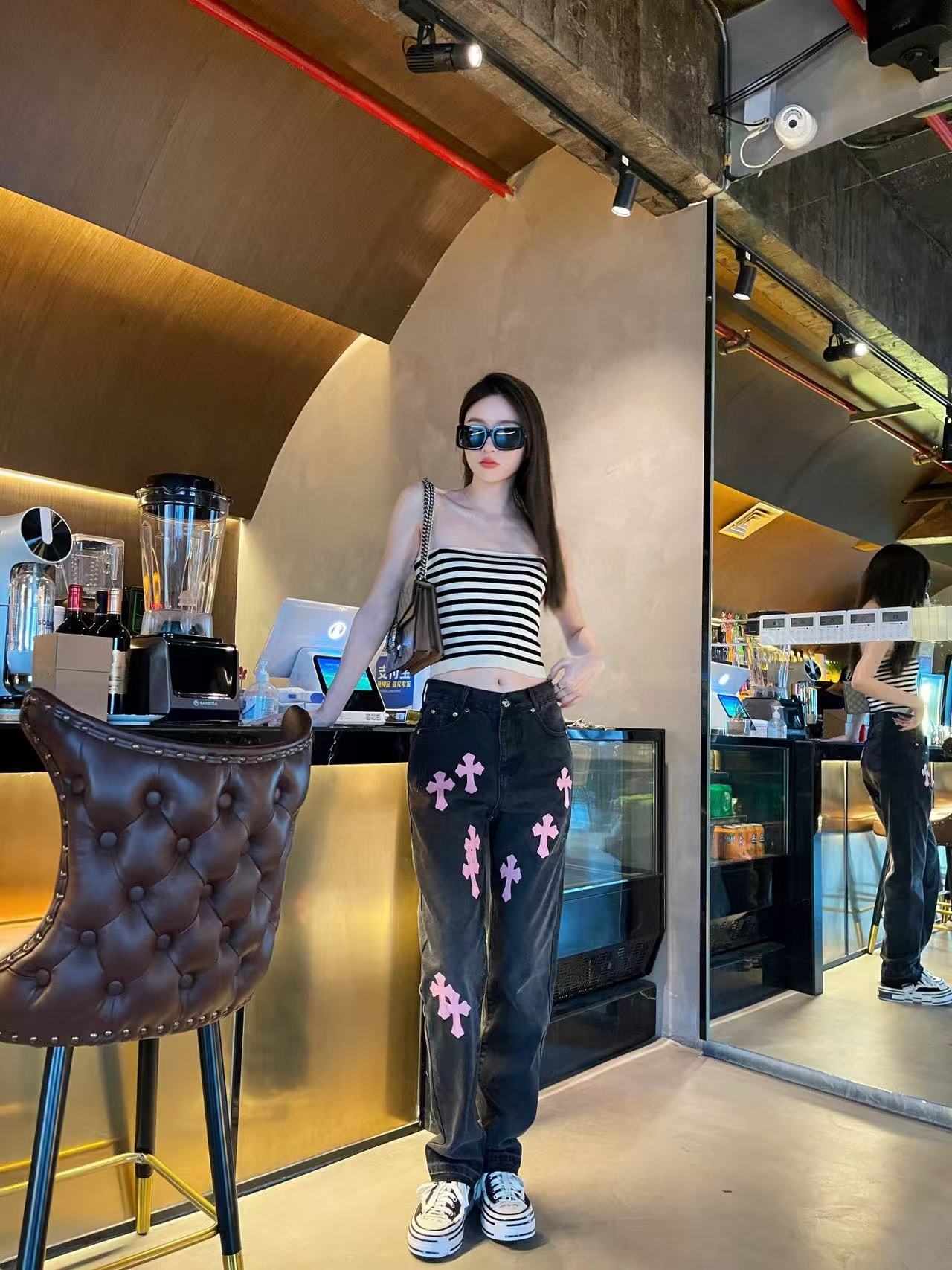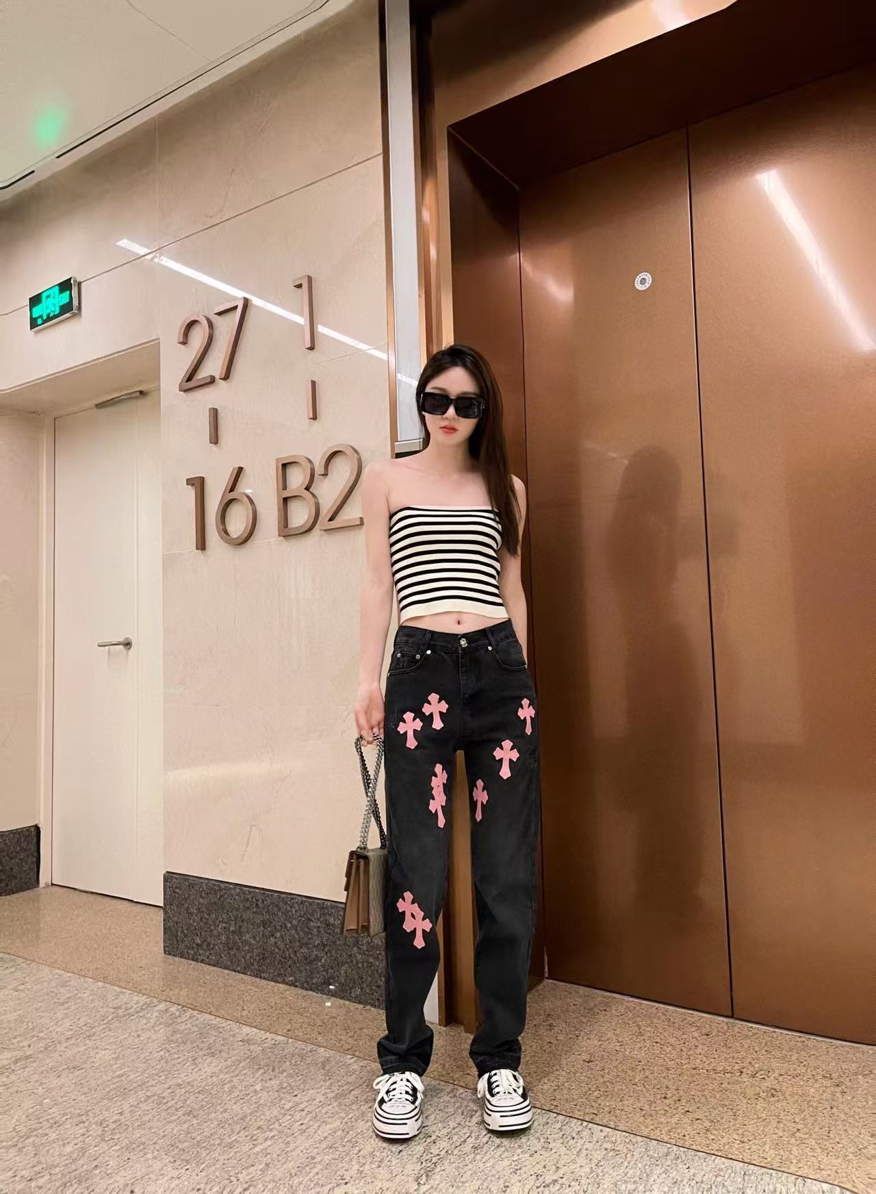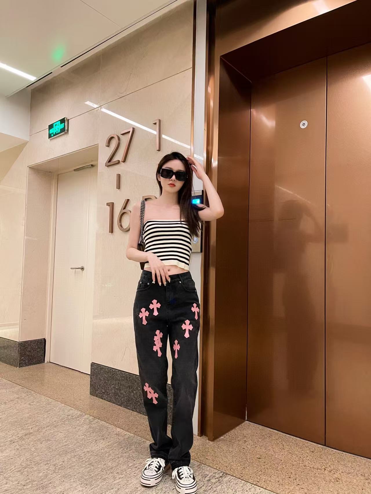 这款衣服是AAAAA 1:1 质量 (非常棒). 使用了和原版一模一样的材料. 商标部分也保持了和克罗心/Chrome Hearts一样. 图片拍摄是实物衣服拍摄, 您所收到的实物保证和我们图片一模一样.