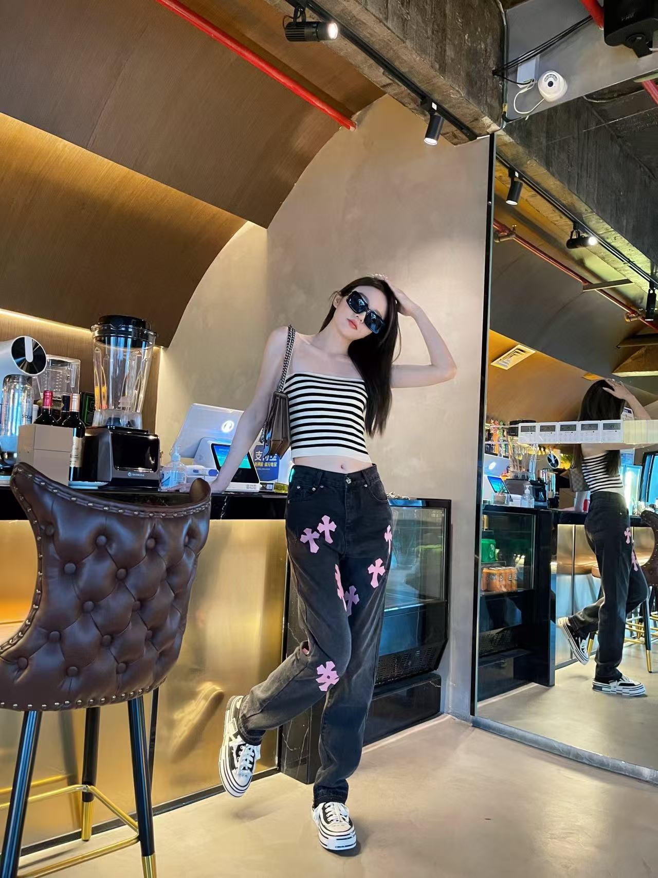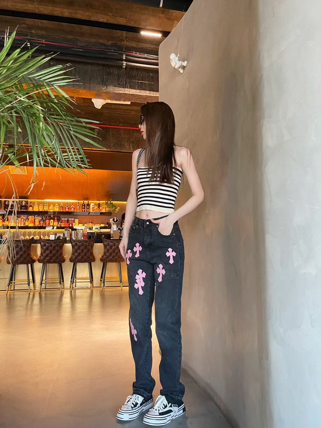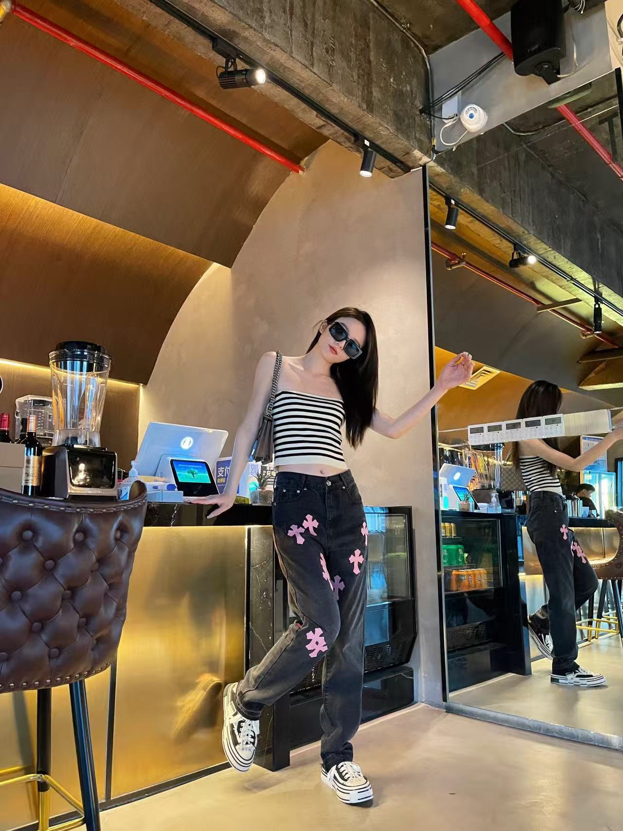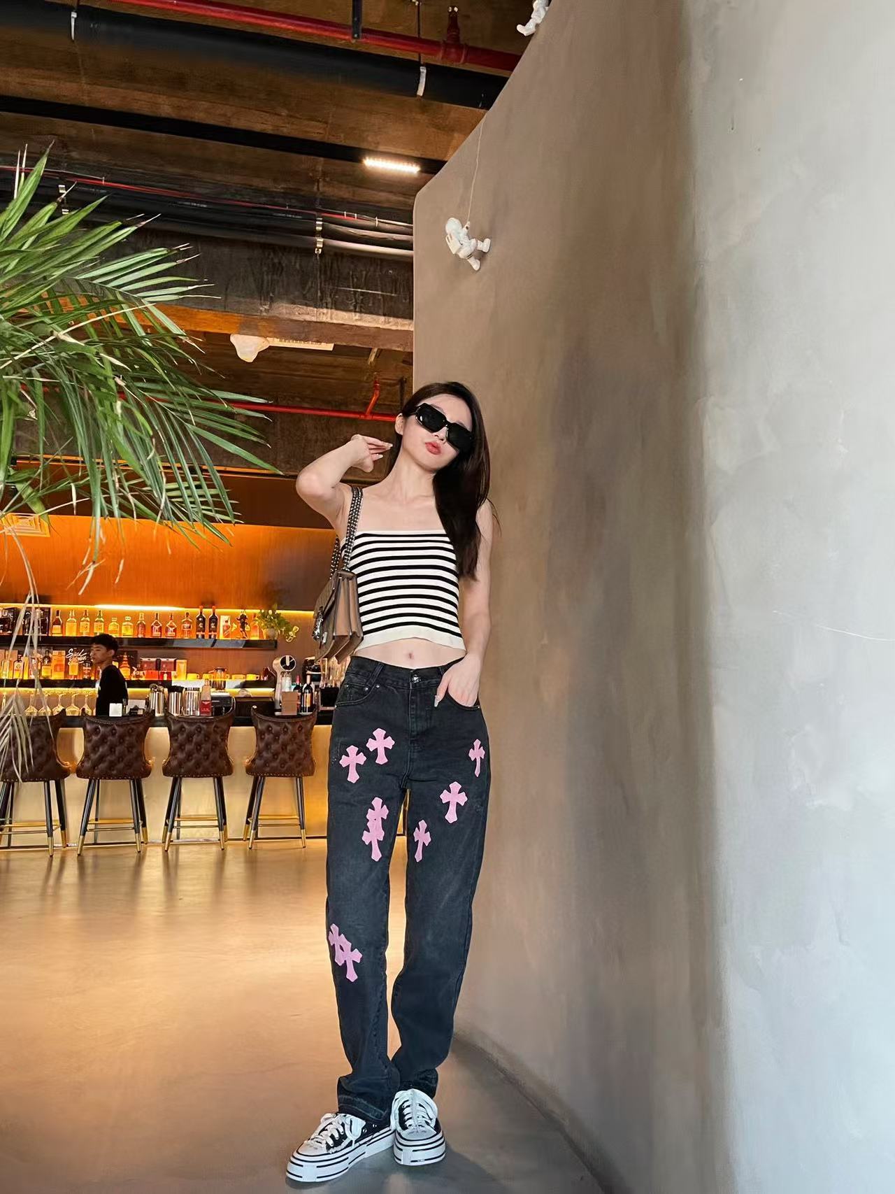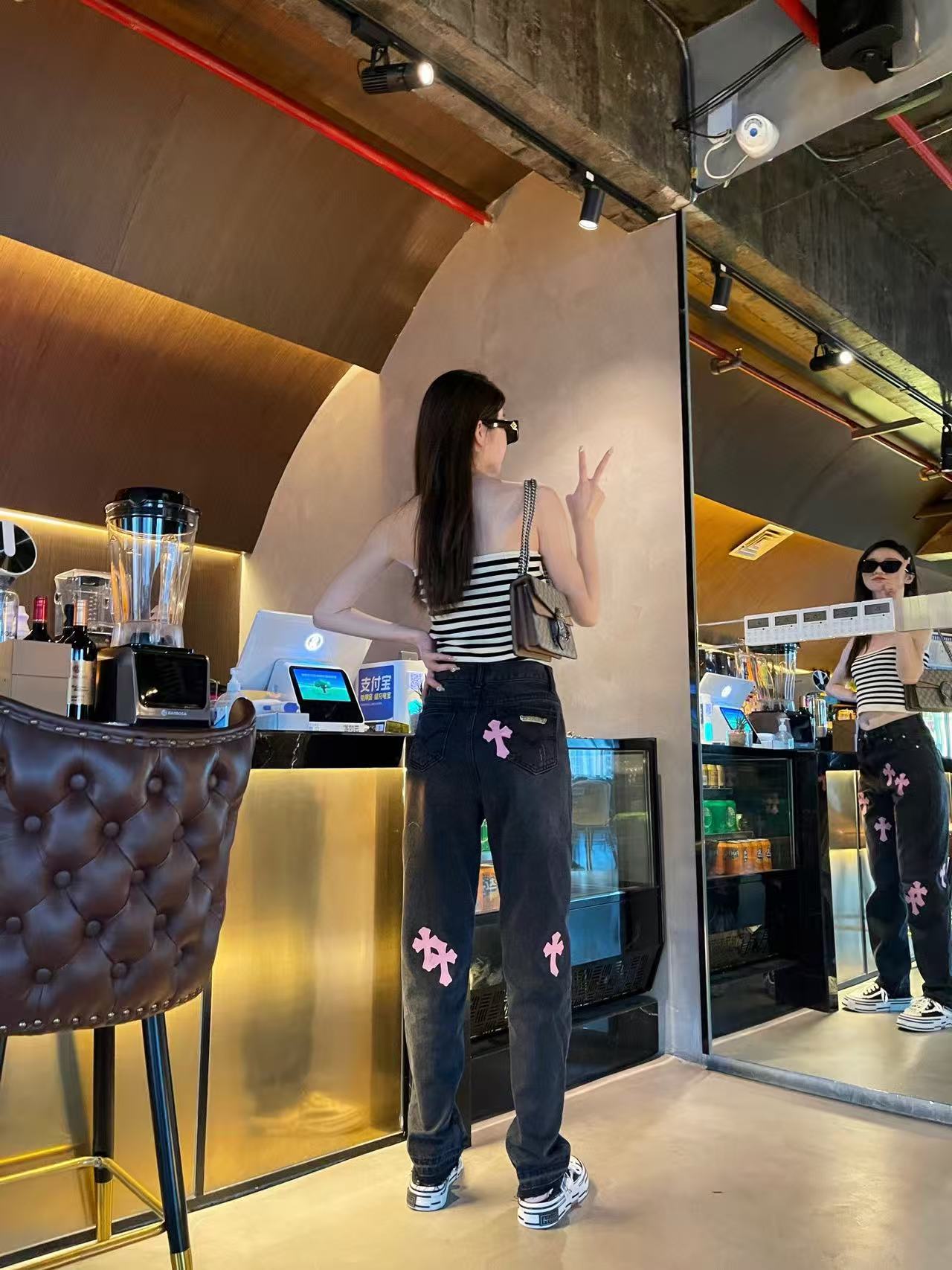 这款衣服是AAAAA 1:1 质量 (非常棒). 使用了和原版一模一样的材料. 商标部分也保持了和克罗心/Chrome Hearts一样. 图片拍摄是实物衣服拍摄, 您所收到的实物保证和我们图片一模一样.