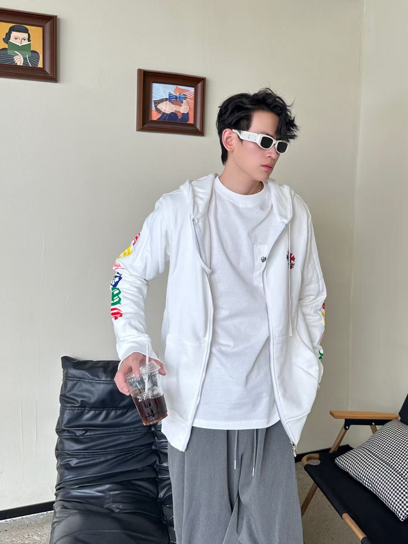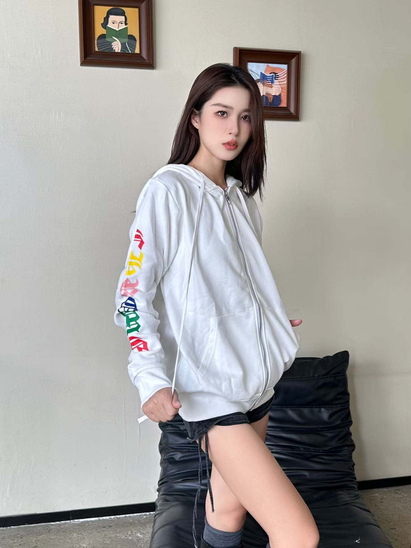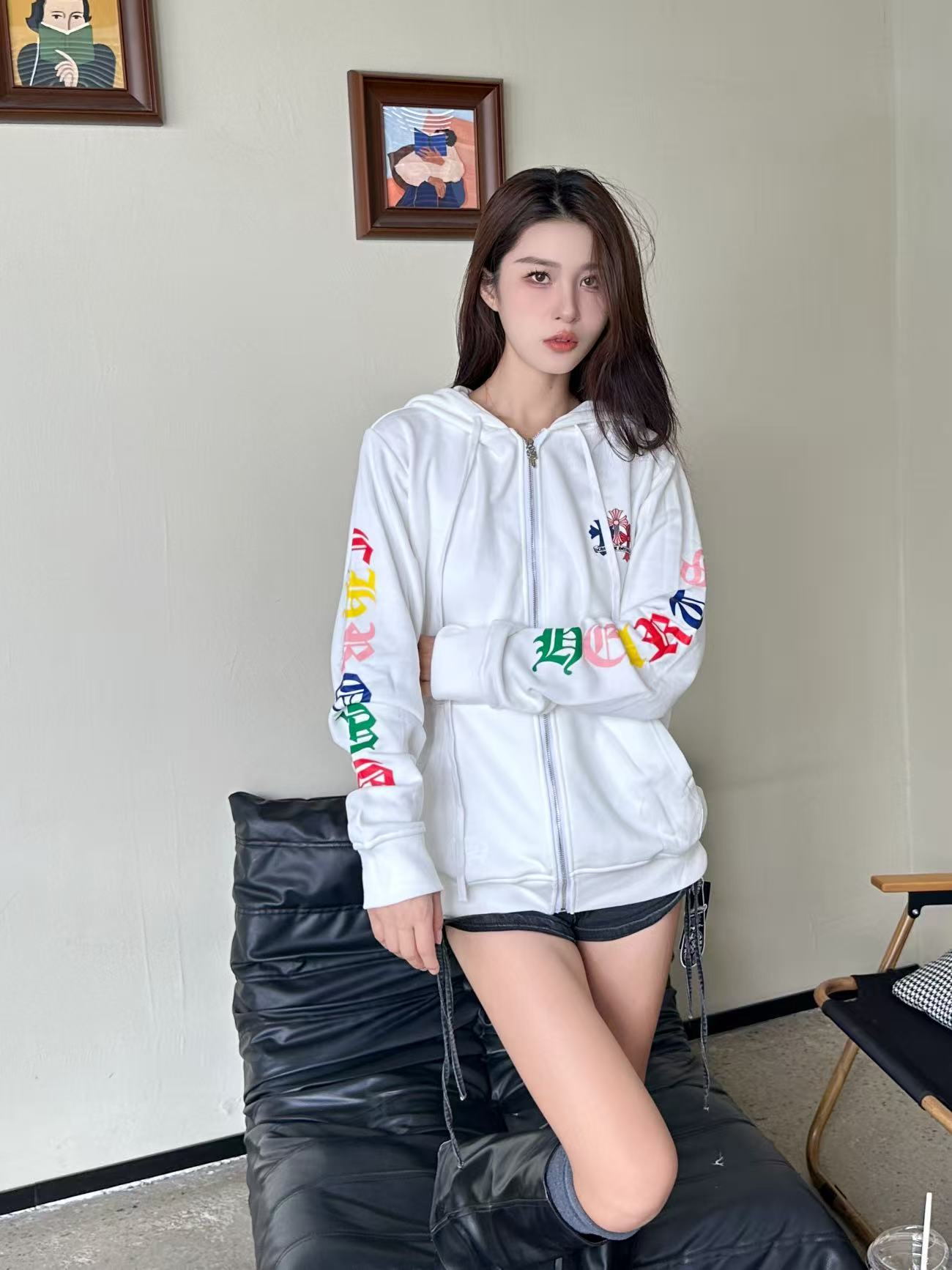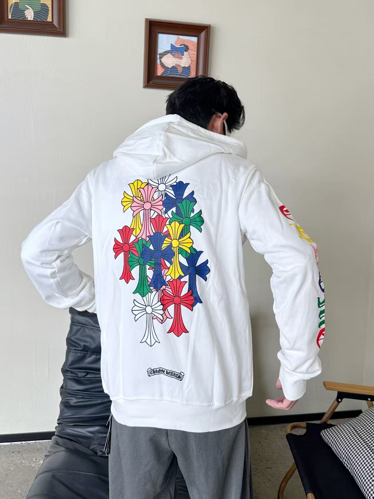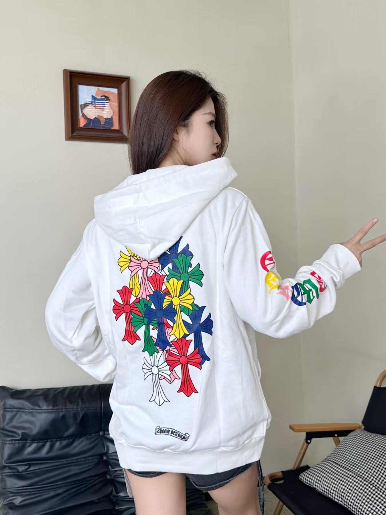 这款衣服是AAAAA 1:1 质量 (非常棒). 使用了和原版一模一样的材料. 商标部分也保持了和克罗心/Chrome Hearts一样. 图片拍摄是实物衣服拍摄, 您所收到的实物保证和我们图片一模一样.