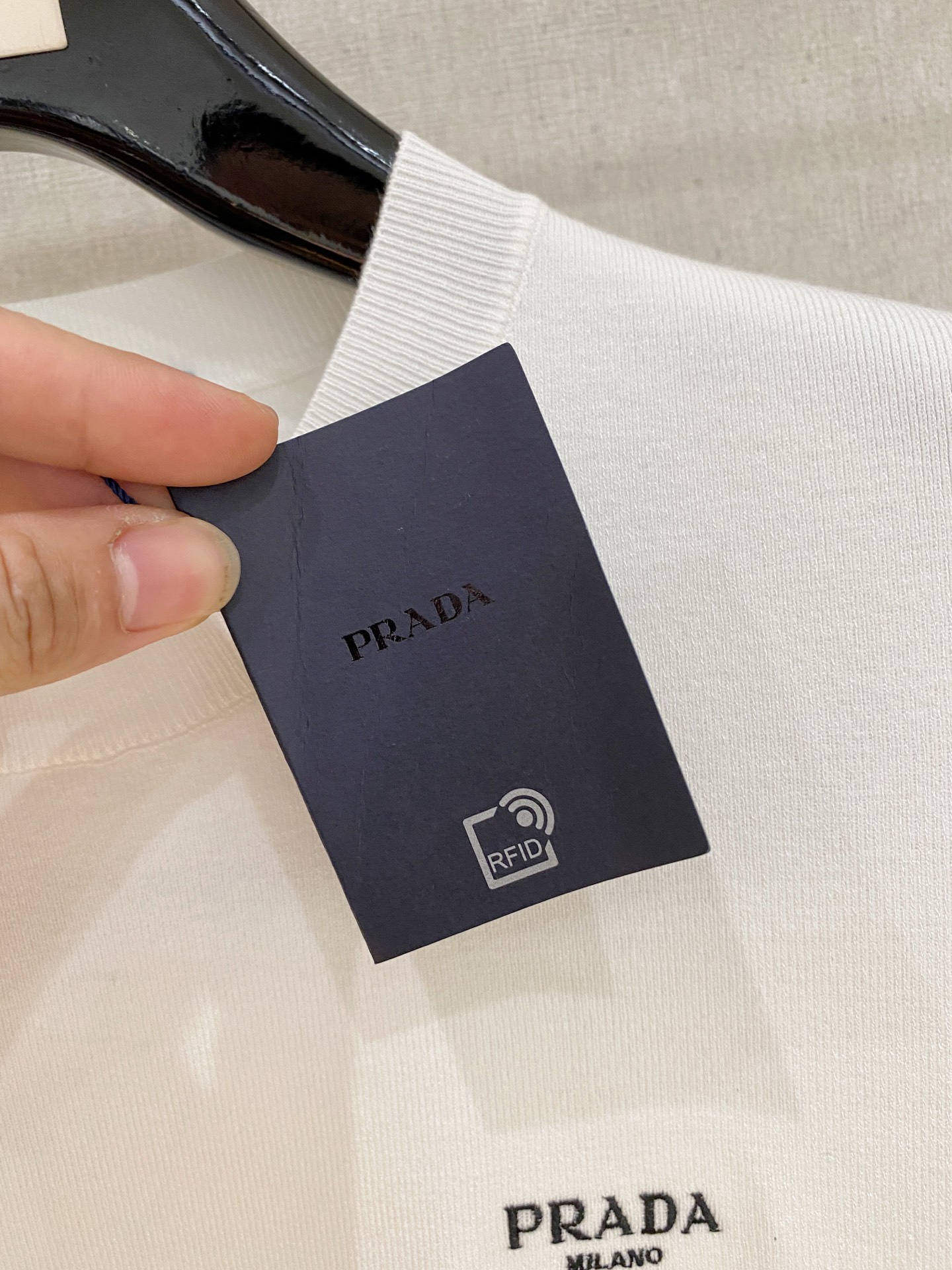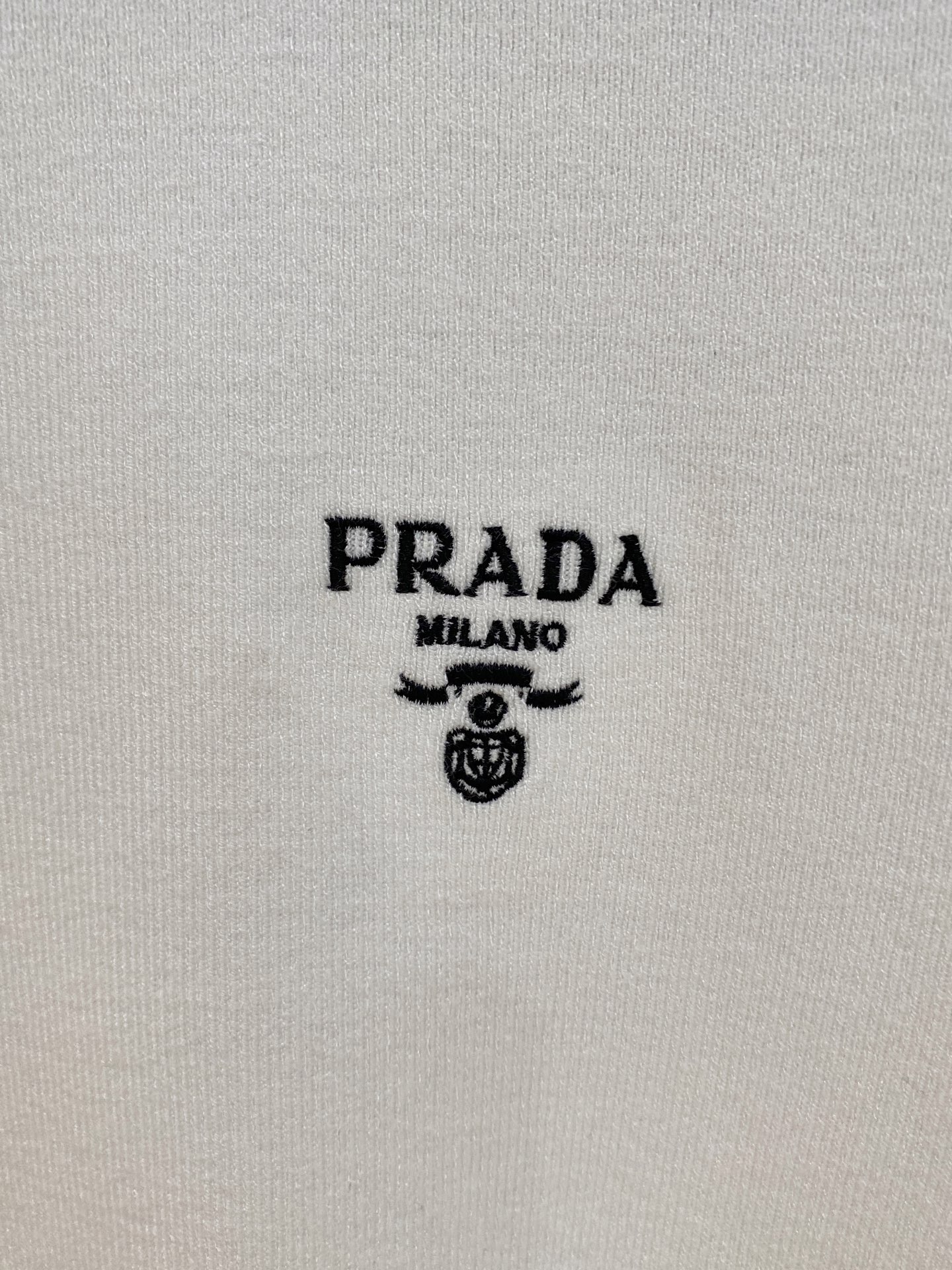 这款衣服是AAAAA 1:1 质量 (非常棒). 使用了和原版一模一样的材料. 商标部分也保持了和普拉达/Prada一样. 图片拍摄是实物衣服拍摄, 您所收到的实物保证和我们图片一模一样.