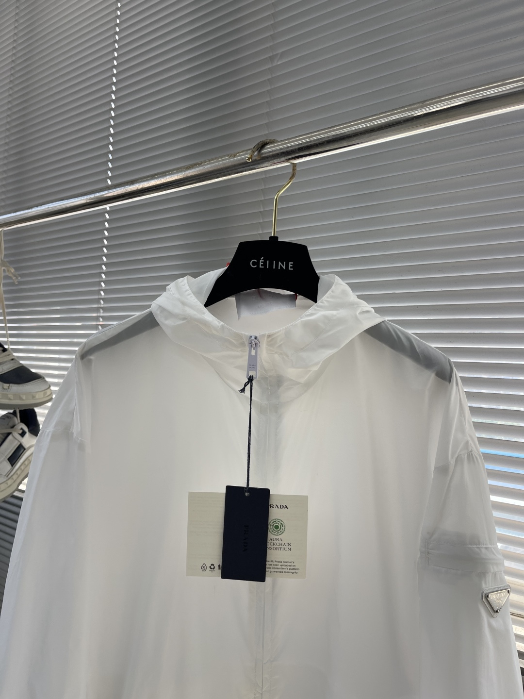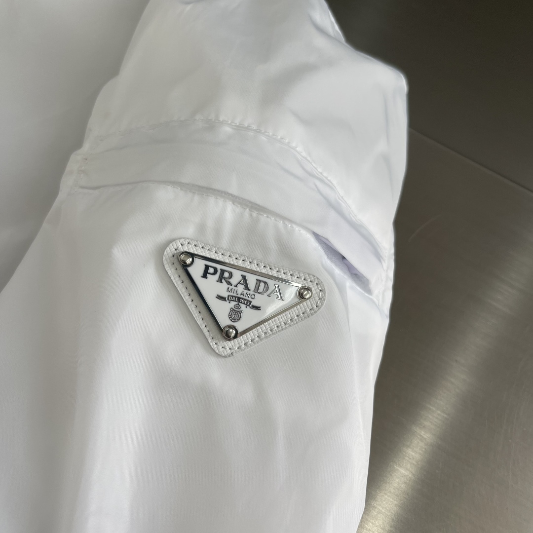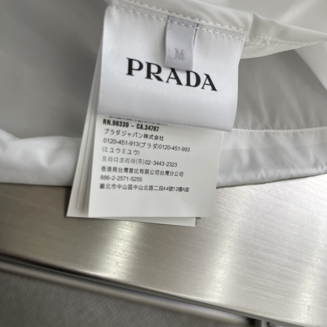 这款衣服是AAAAA 1:1 质量 (非常棒). 使用了和原版一模一样的材料. 商标部分也保持了和普拉达/Prada一样. 图片拍摄是实物衣服拍摄, 您所收到的实物保证和我们图片一模一样.