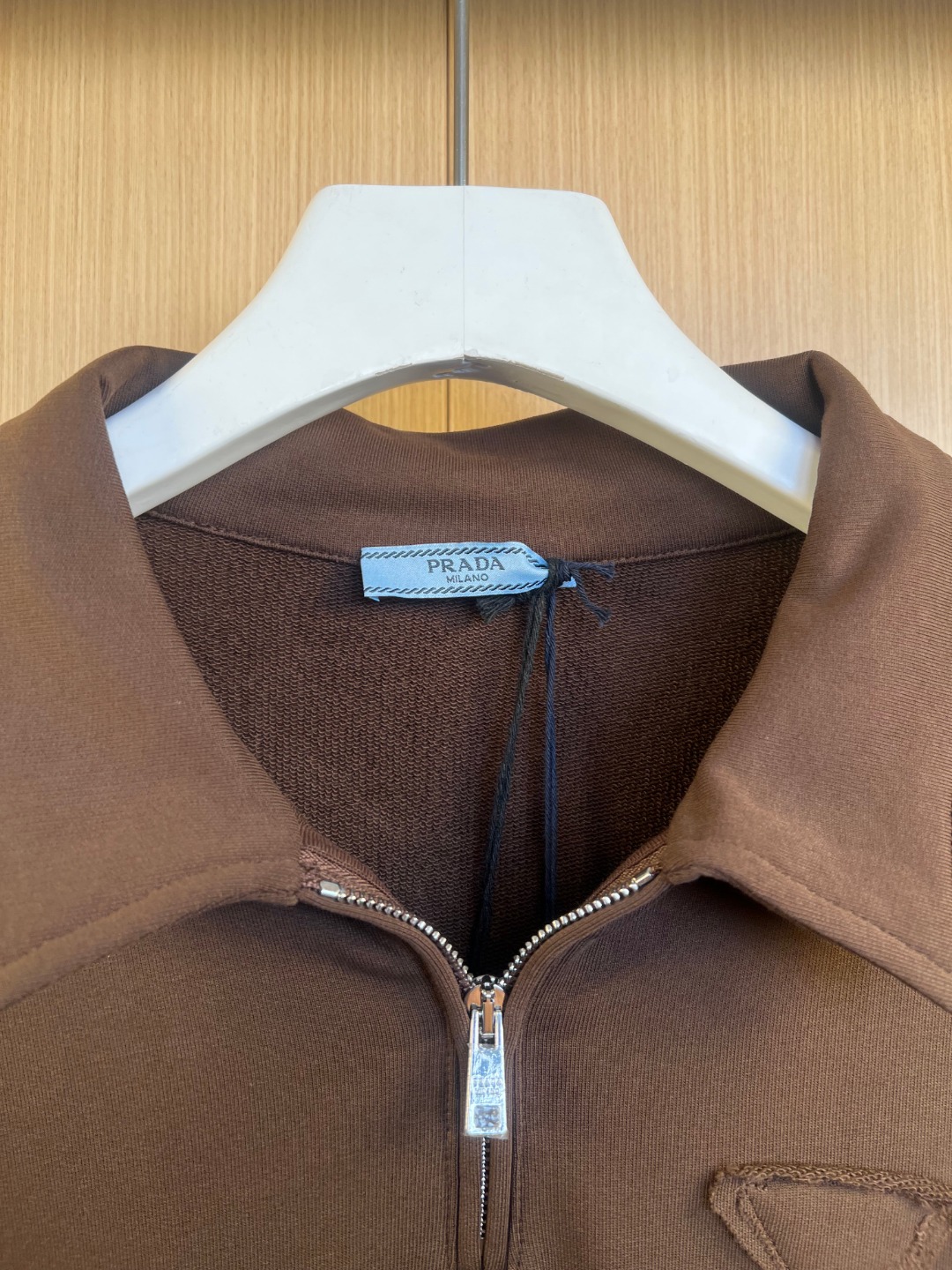 这款衣服是AAAAA 1:1 质量 (非常棒). 使用了和原版一模一样的材料. 商标部分也保持了和普拉达/Prada一样. 图片拍摄是实物衣服拍摄, 您所收到的实物保证和我们图片一模一样.