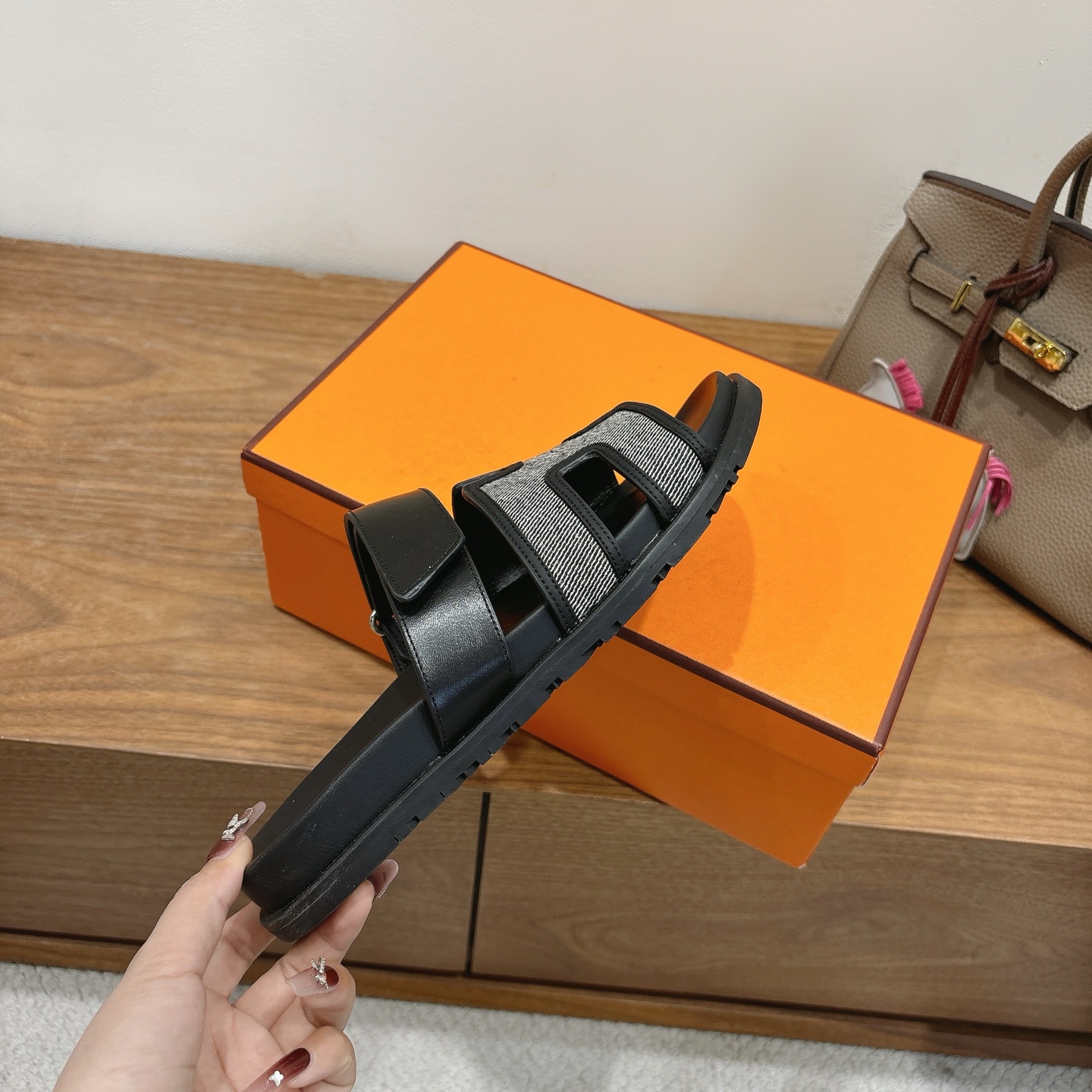 这款鞋子是AAAAA 1:1 质量 (非常棒). 使用了和原版一模一样的材料. 商标部分也保持了和爱马仕/Hermes一样. 图片拍摄是实物鞋子拍摄, 您所收到的实物保证和我们图片一模一样.