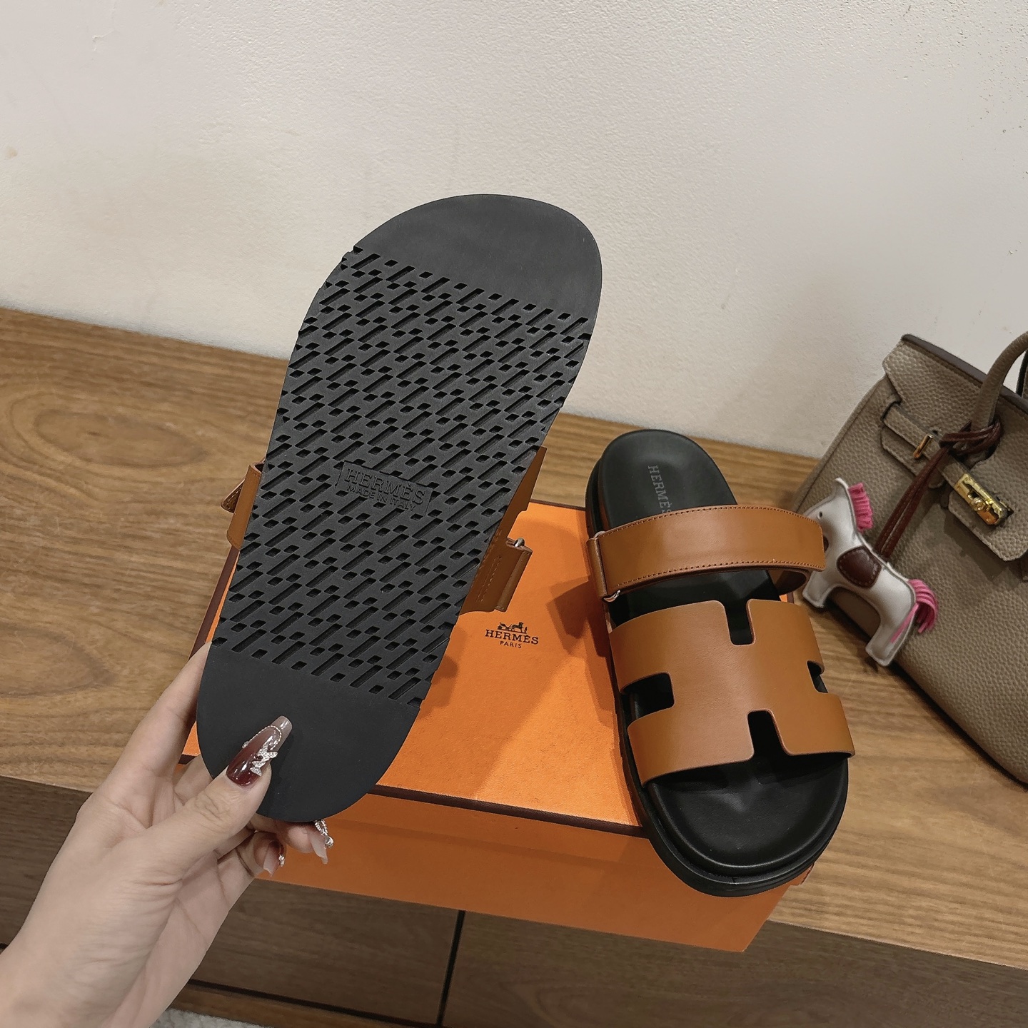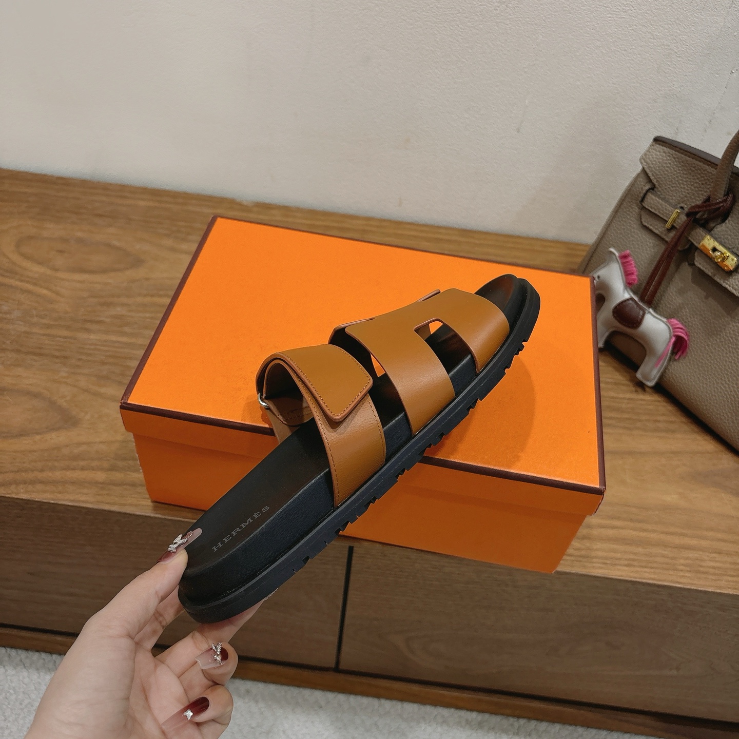 这款鞋子是AAAAA 1:1 质量 (非常棒). 使用了和原版一模一样的材料. 商标部分也保持了和爱马仕/Hermes一样. 图片拍摄是实物鞋子拍摄, 您所收到的实物保证和我们图片一模一样.