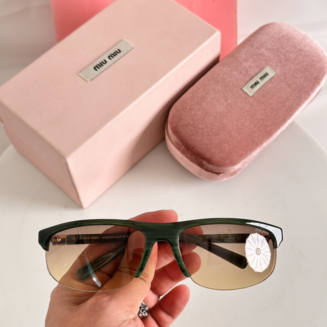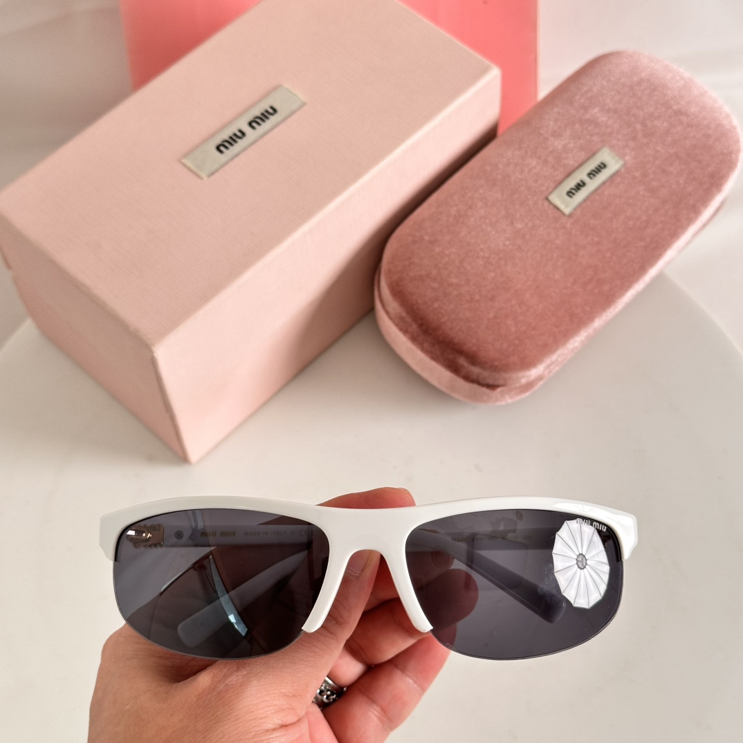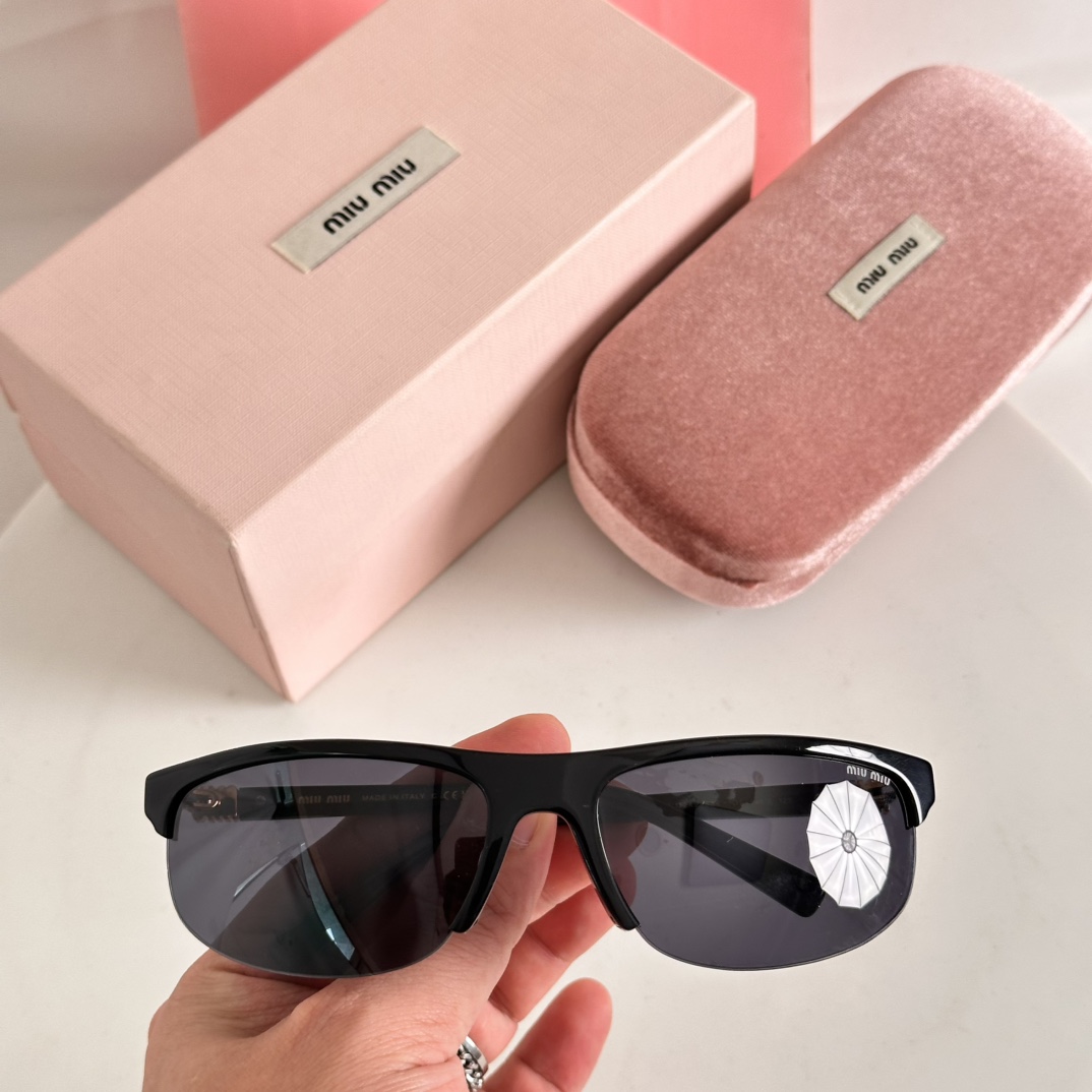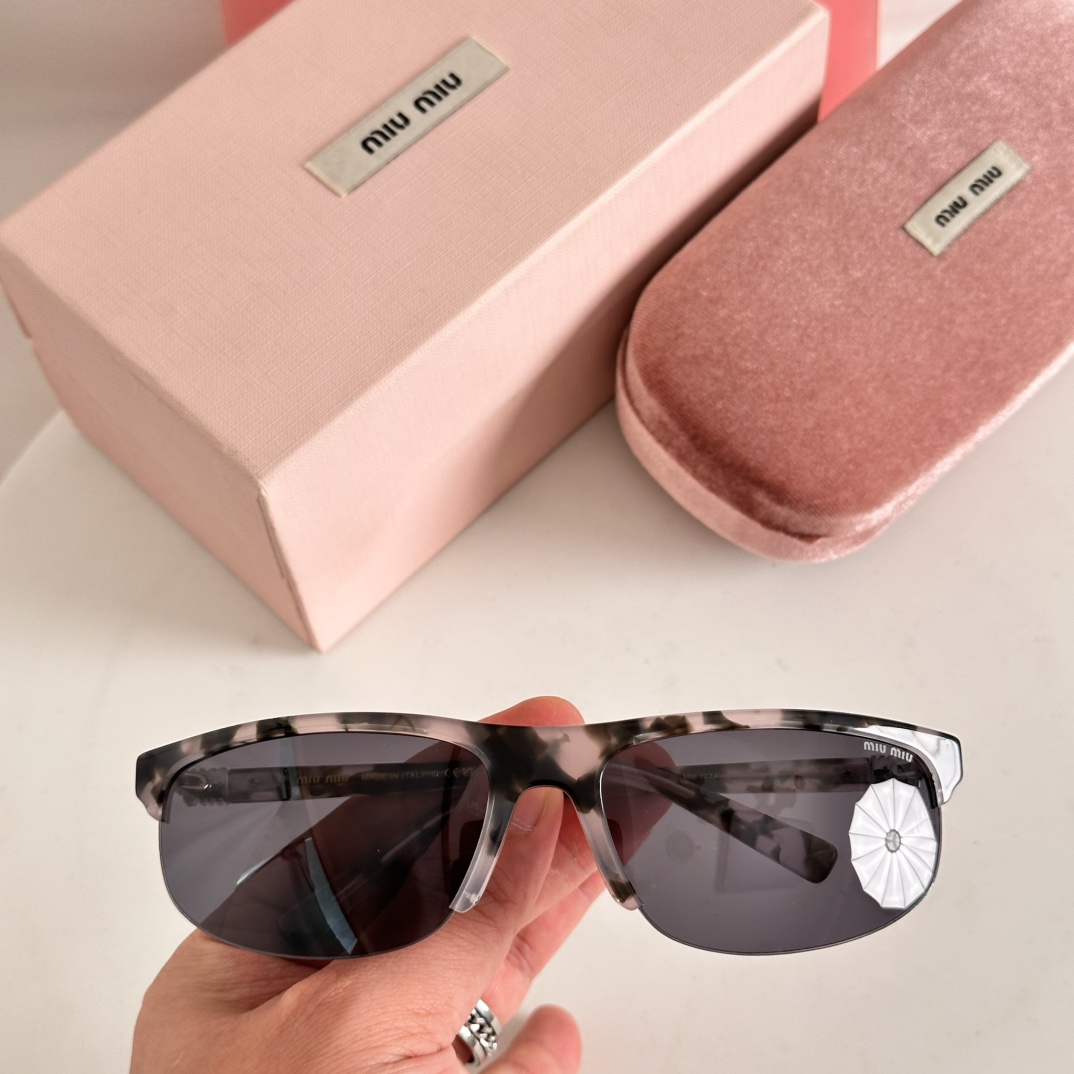 这款太阳眼镜是AAAAA 1:1 质量 (非常棒). 使用了和原版一模一样的材料. 商标部分也保持了和缪缪/Miu Miu一样. 图片拍摄是实物太阳眼镜拍摄, 您所收到的实物保证和我们图片一模一样.