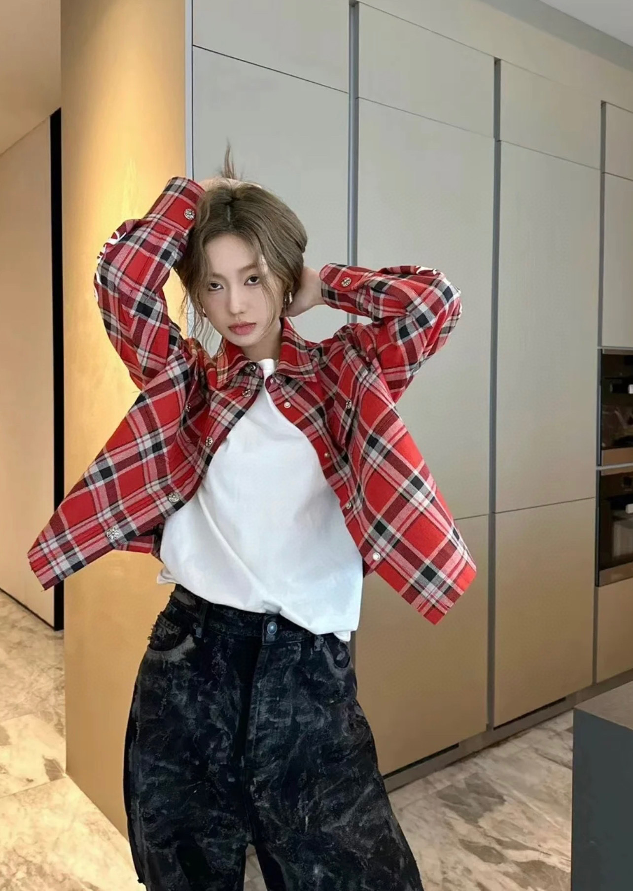 这款衣服是AAAAA 1:1 质量 (非常棒). 使用了和原版一模一样的材料. 商标部分也保持了和克罗心/Chrome Hearts一样. 图片拍摄是实物衣服拍摄, 您所收到的实物保证和我们图片一模一样.