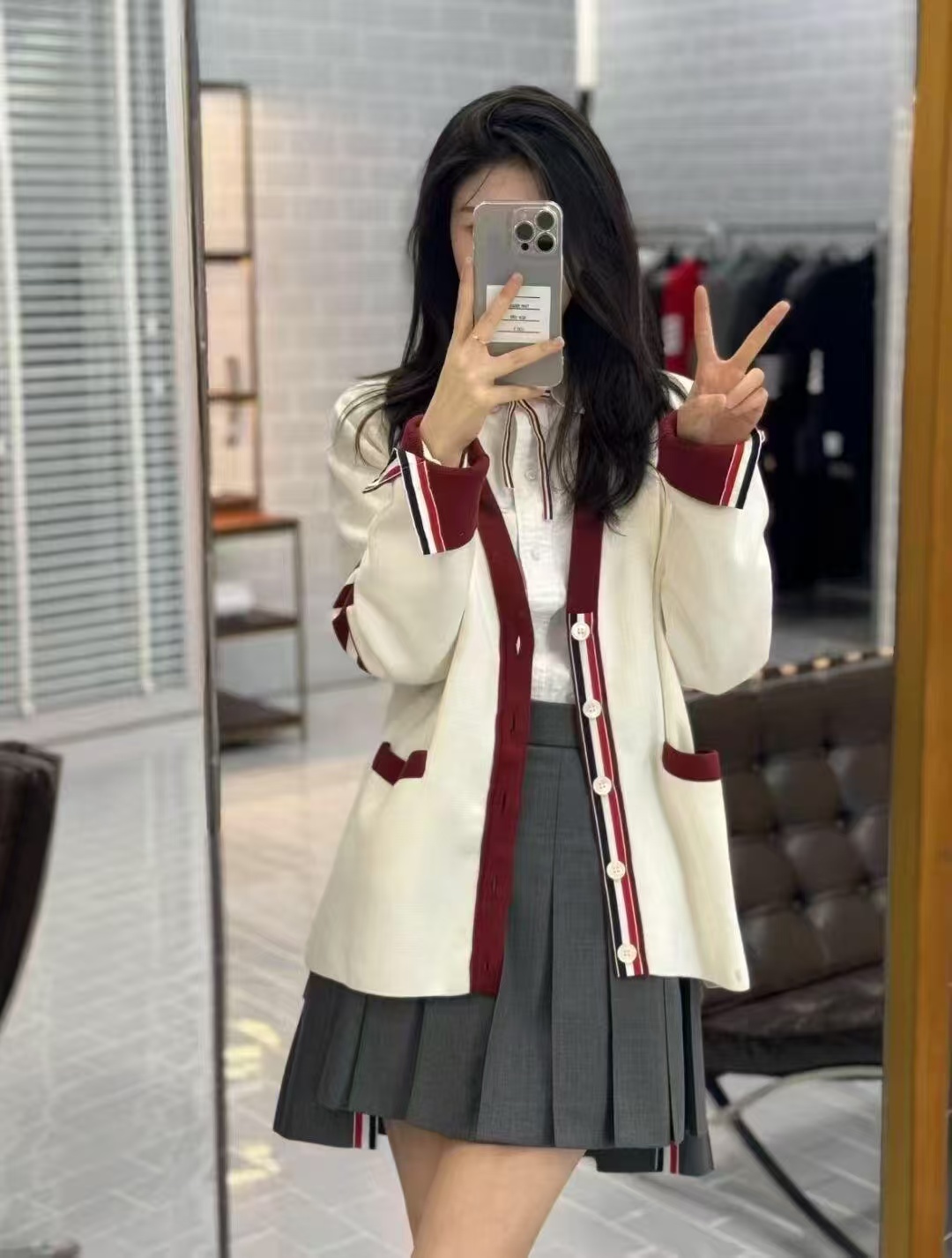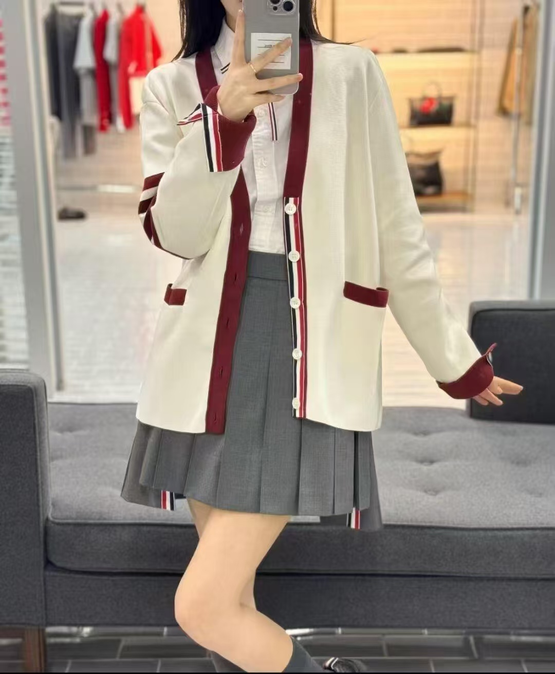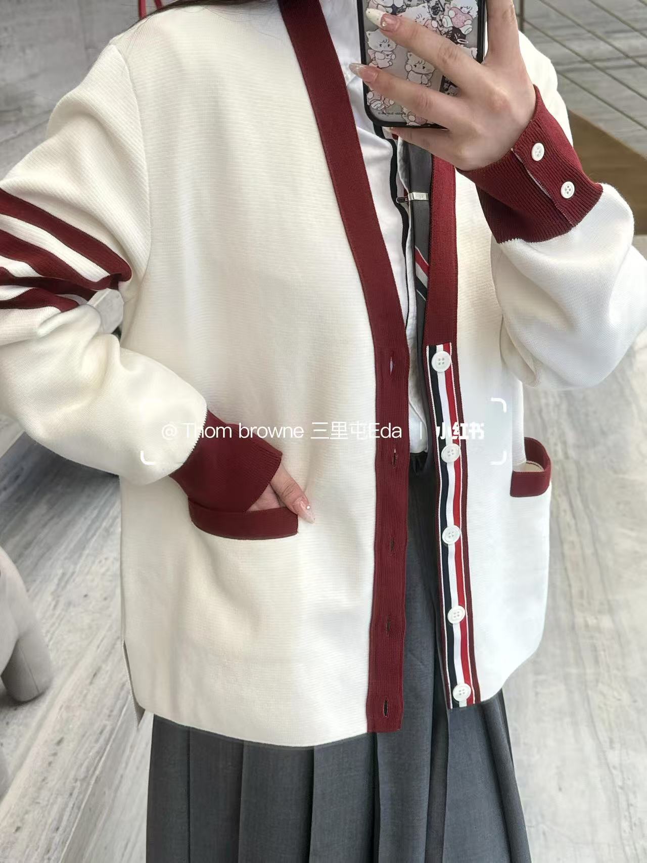 这款衣服是AAAAA 1:1 质量 (非常棒). 使用了和原版一模一样的材料. 商标部分也保持了和汤姆布朗/Thom Browne一样. 图片拍摄是实物衣服拍摄, 您所收到的实物保证和我们图片一模一样.