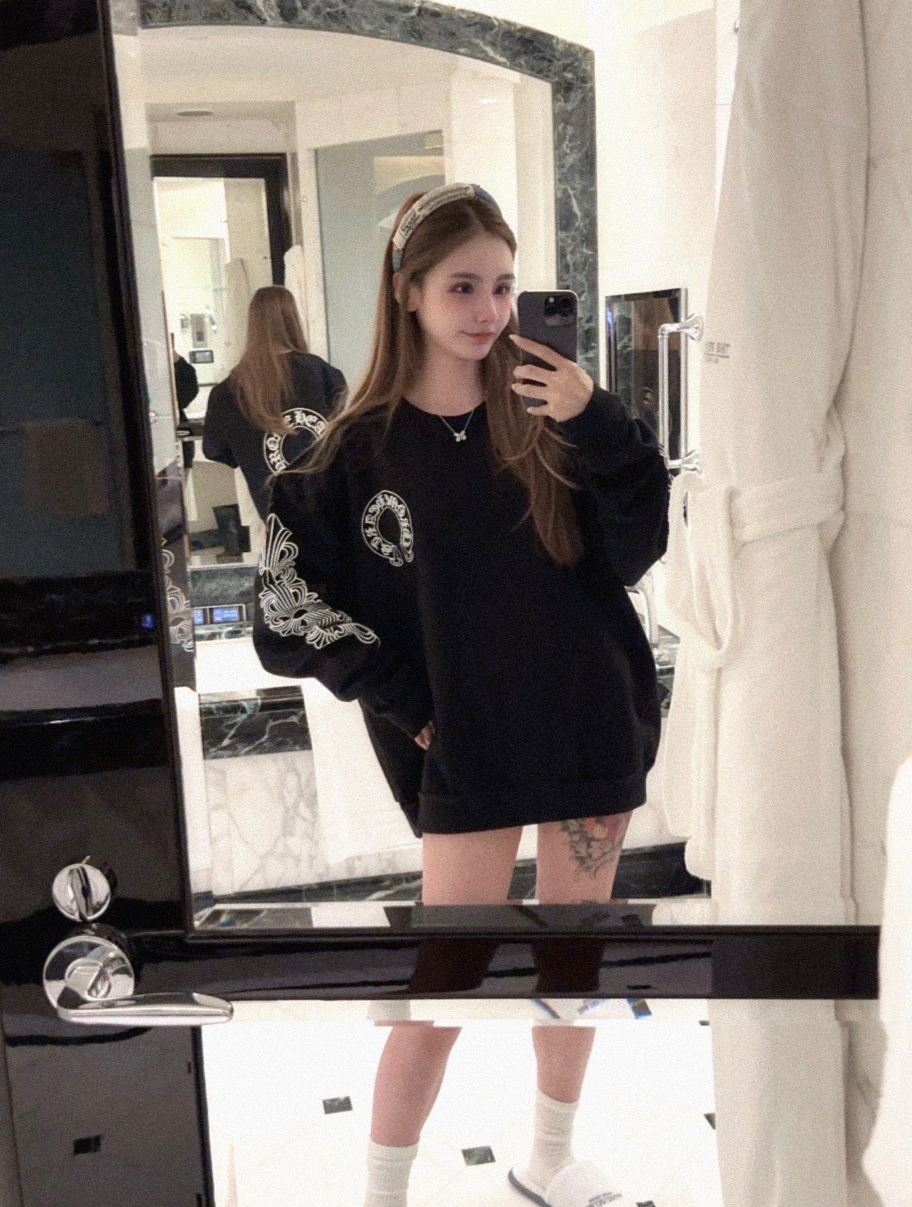 这款衣服是AAAAA 1:1 质量 (非常棒). 使用了和原版一模一样的材料. 商标部分也保持了和克罗心/Chrome Hearts一样. 图片拍摄是实物衣服拍摄, 您所收到的实物保证和我们图片一模一样.