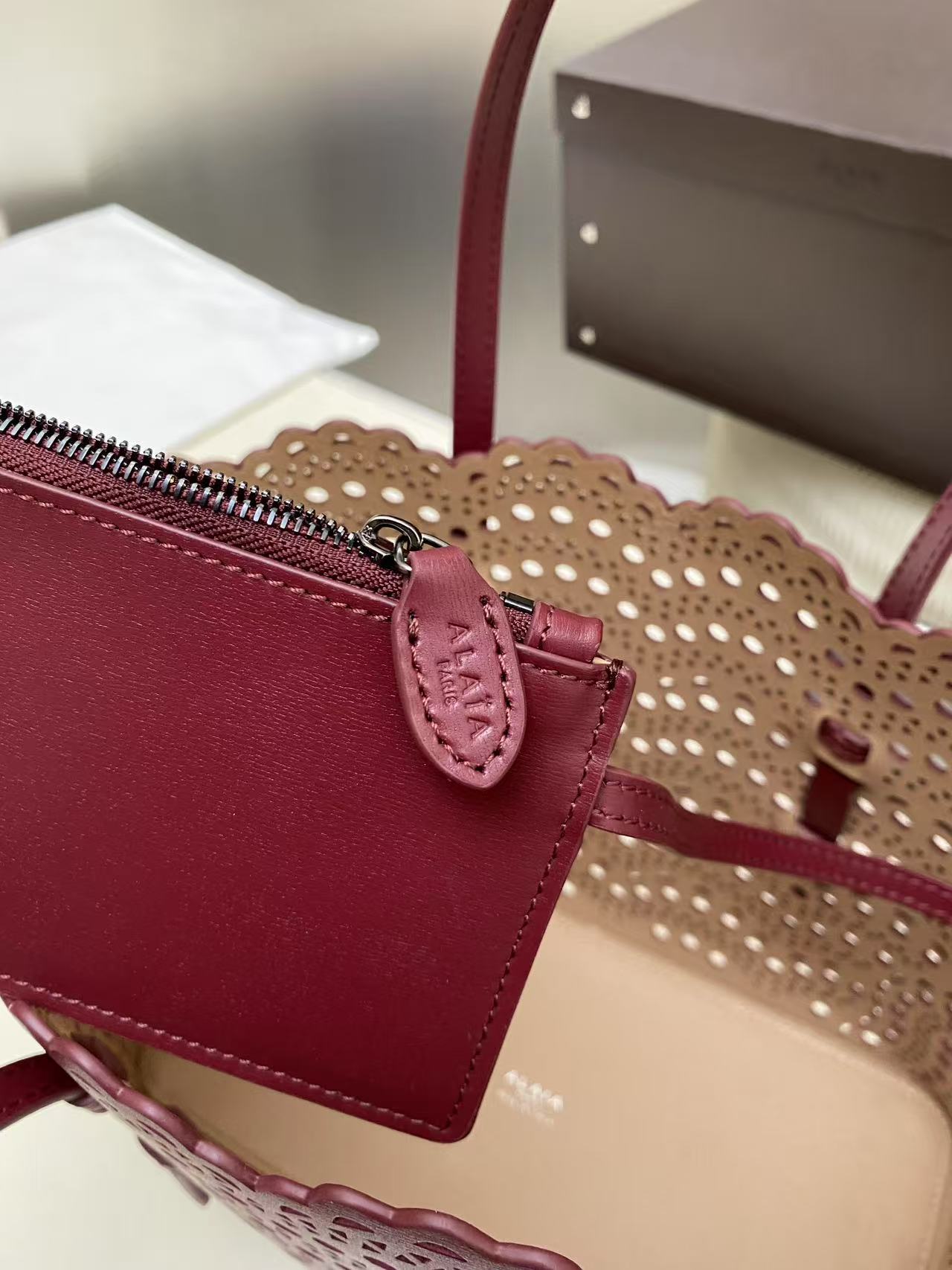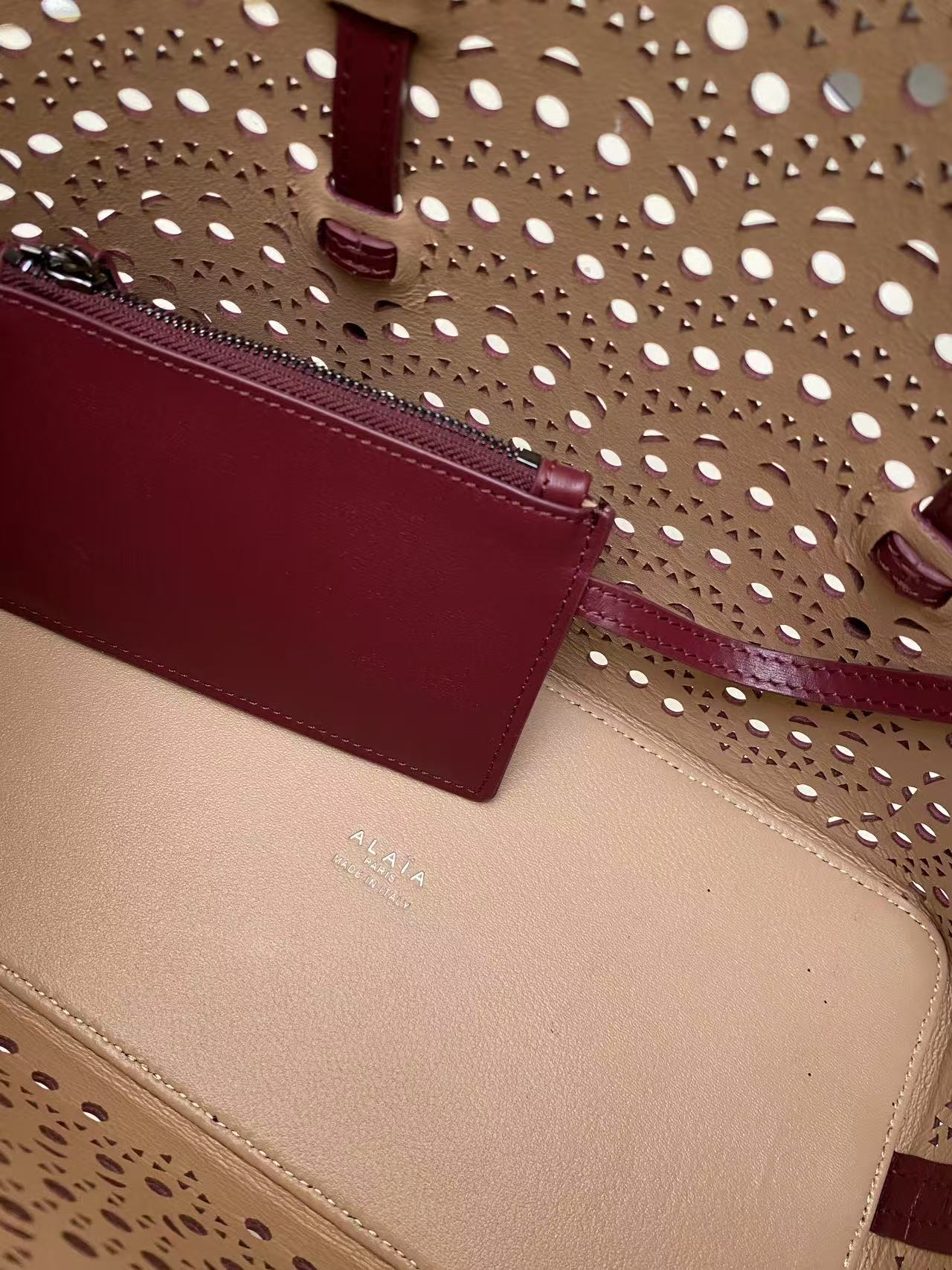 这款包包是AAAAA 1:1 质量 (非常棒). 使用了和原版一模一样的材料. 商标部分也保持了和Alaia一样. 图片拍摄是实物包包拍摄, 您所收到的实物保证和我们图片一模一样.