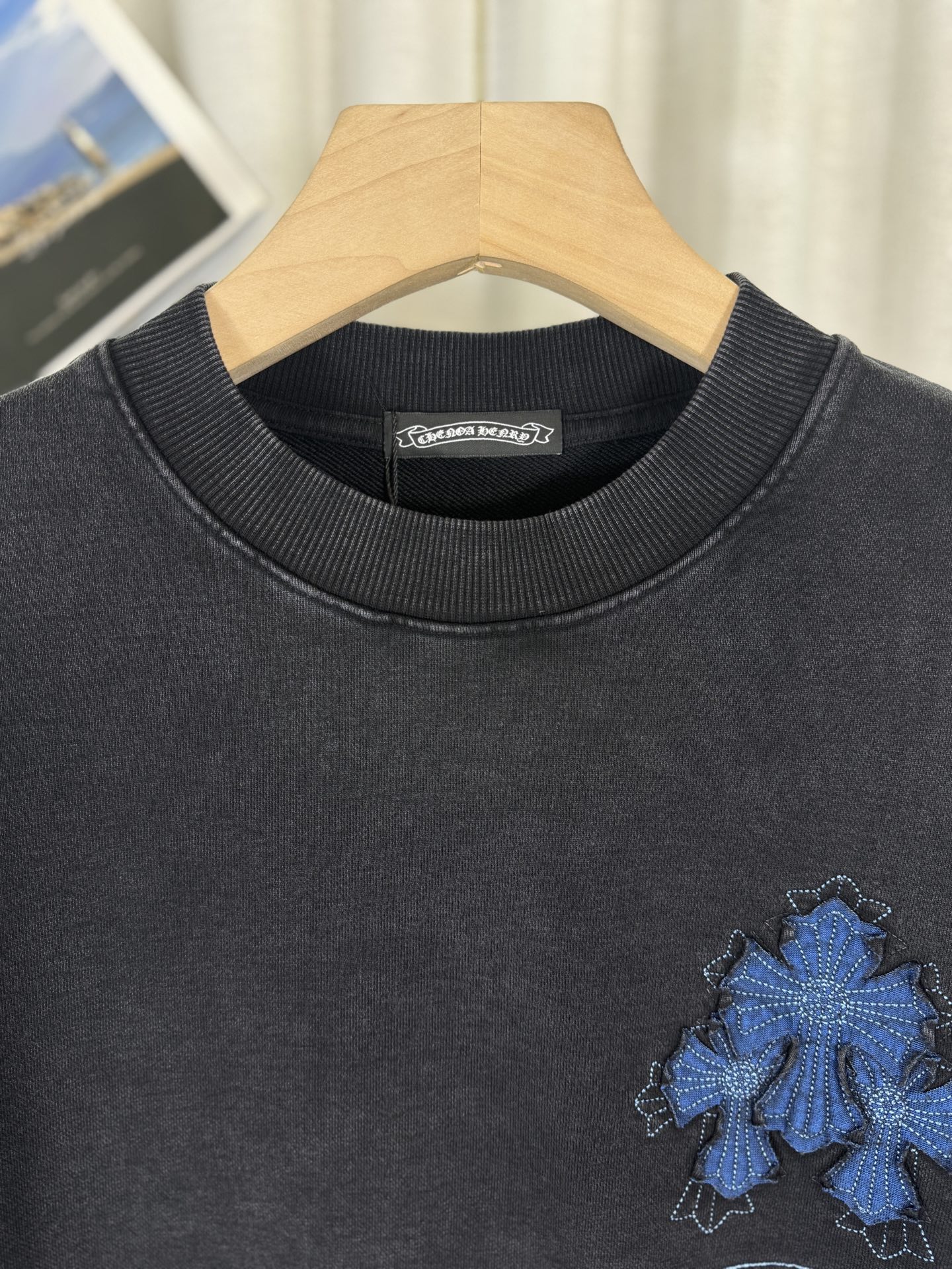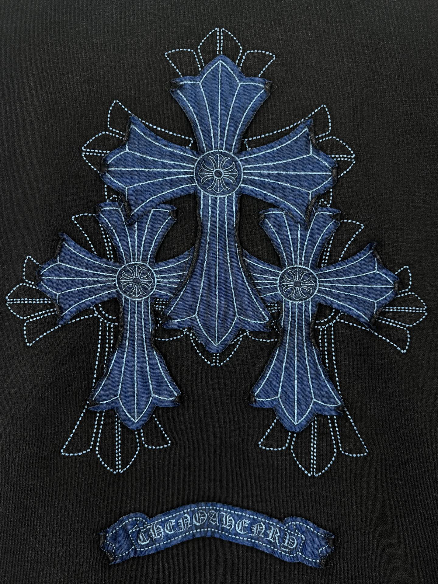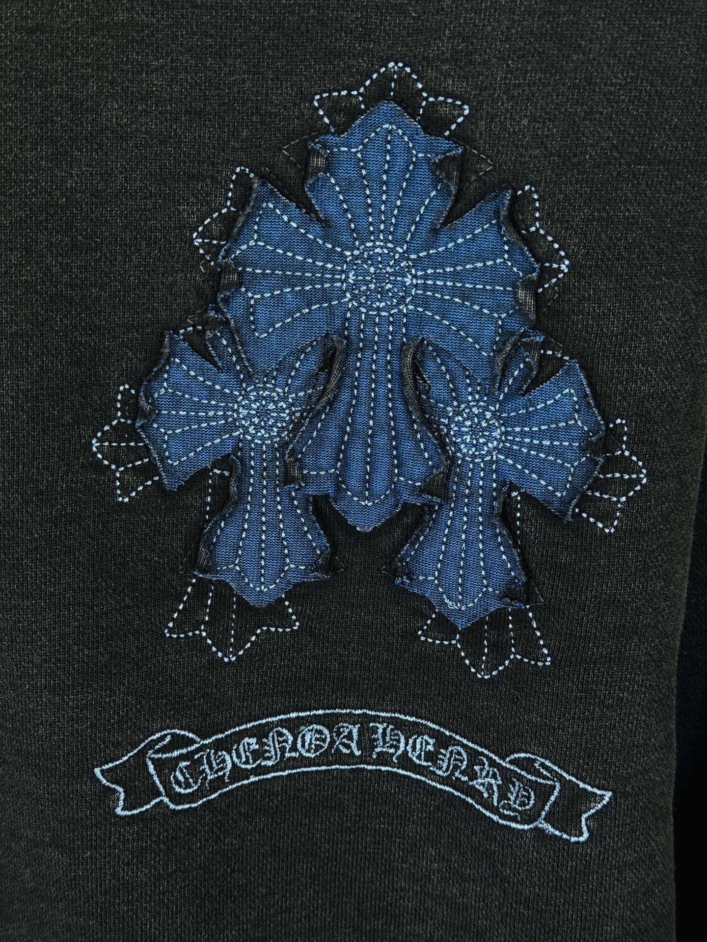 这款衣服是AAAAA 1:1 质量 (非常棒). 使用了和原版一模一样的材料. 商标部分也保持了和克罗心/Chrome Hearts一样. 图片拍摄是实物衣服拍摄, 您所收到的实物保证和我们图片一模一样.