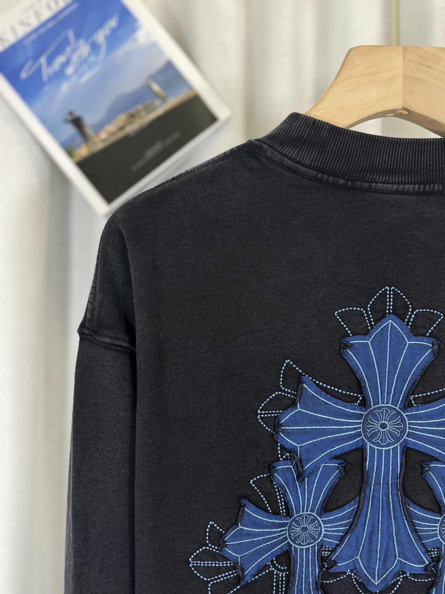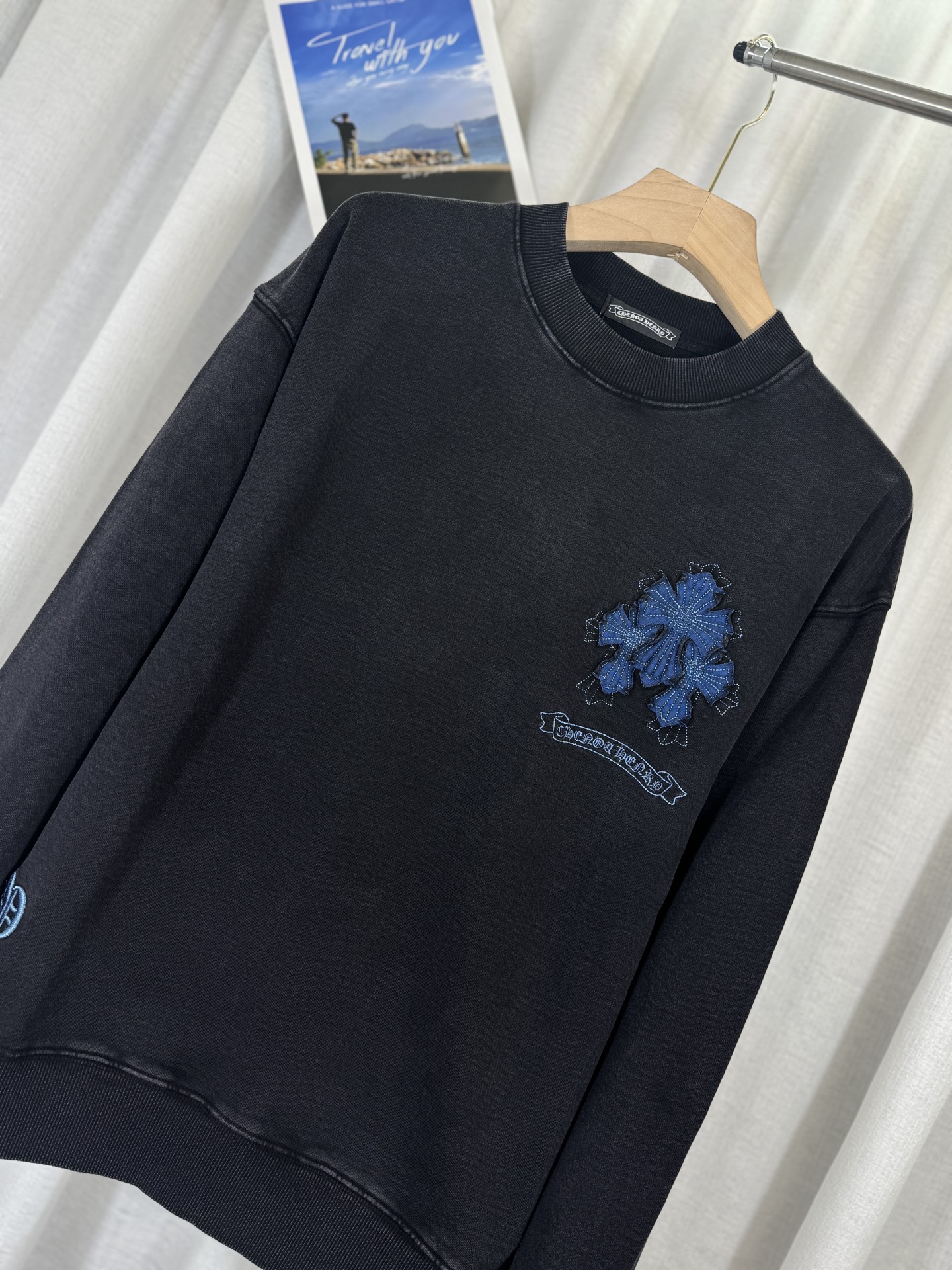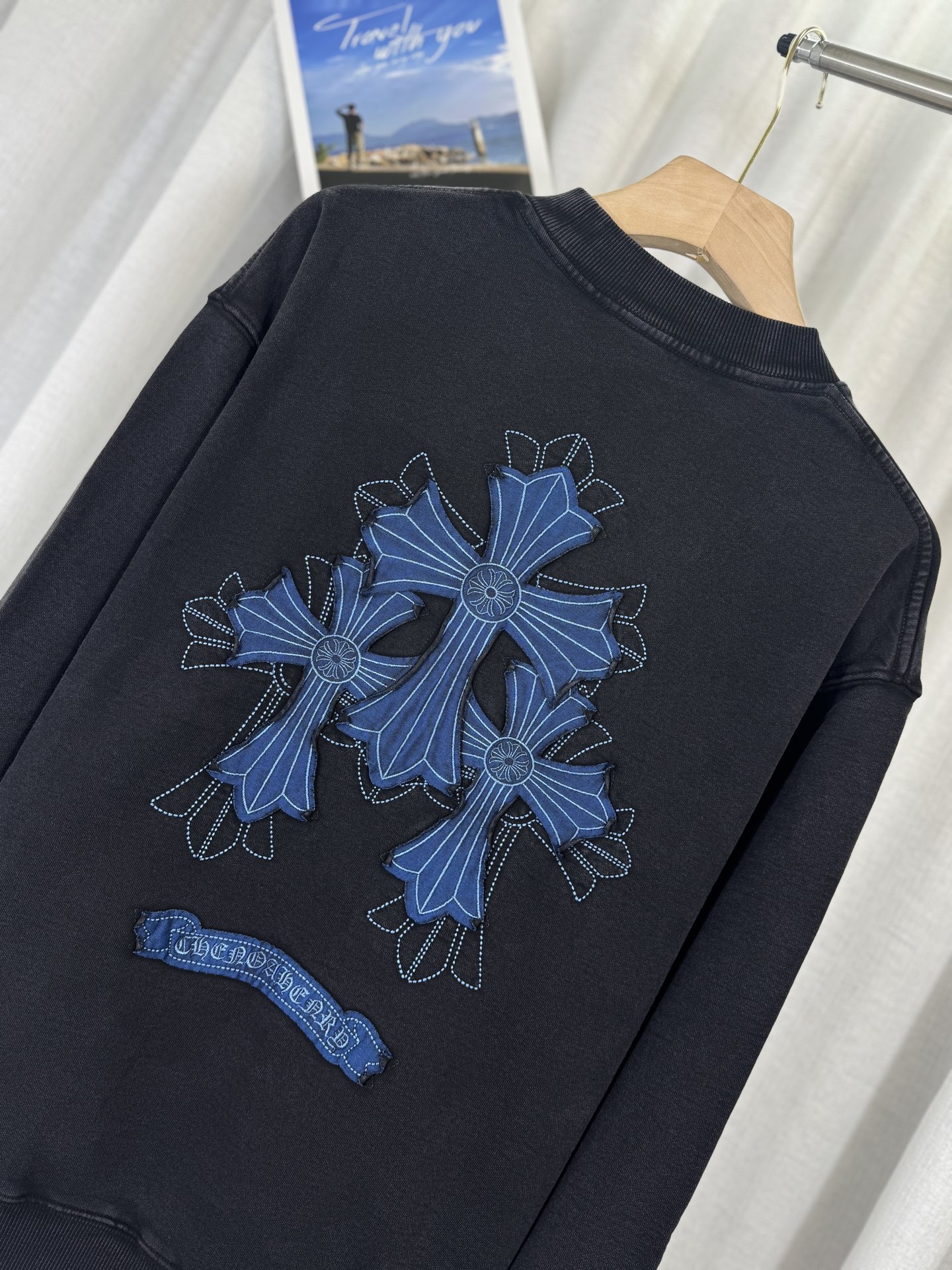 这款衣服是AAAAA 1:1 质量 (非常棒). 使用了和原版一模一样的材料. 商标部分也保持了和克罗心/Chrome Hearts一样. 图片拍摄是实物衣服拍摄, 您所收到的实物保证和我们图片一模一样.