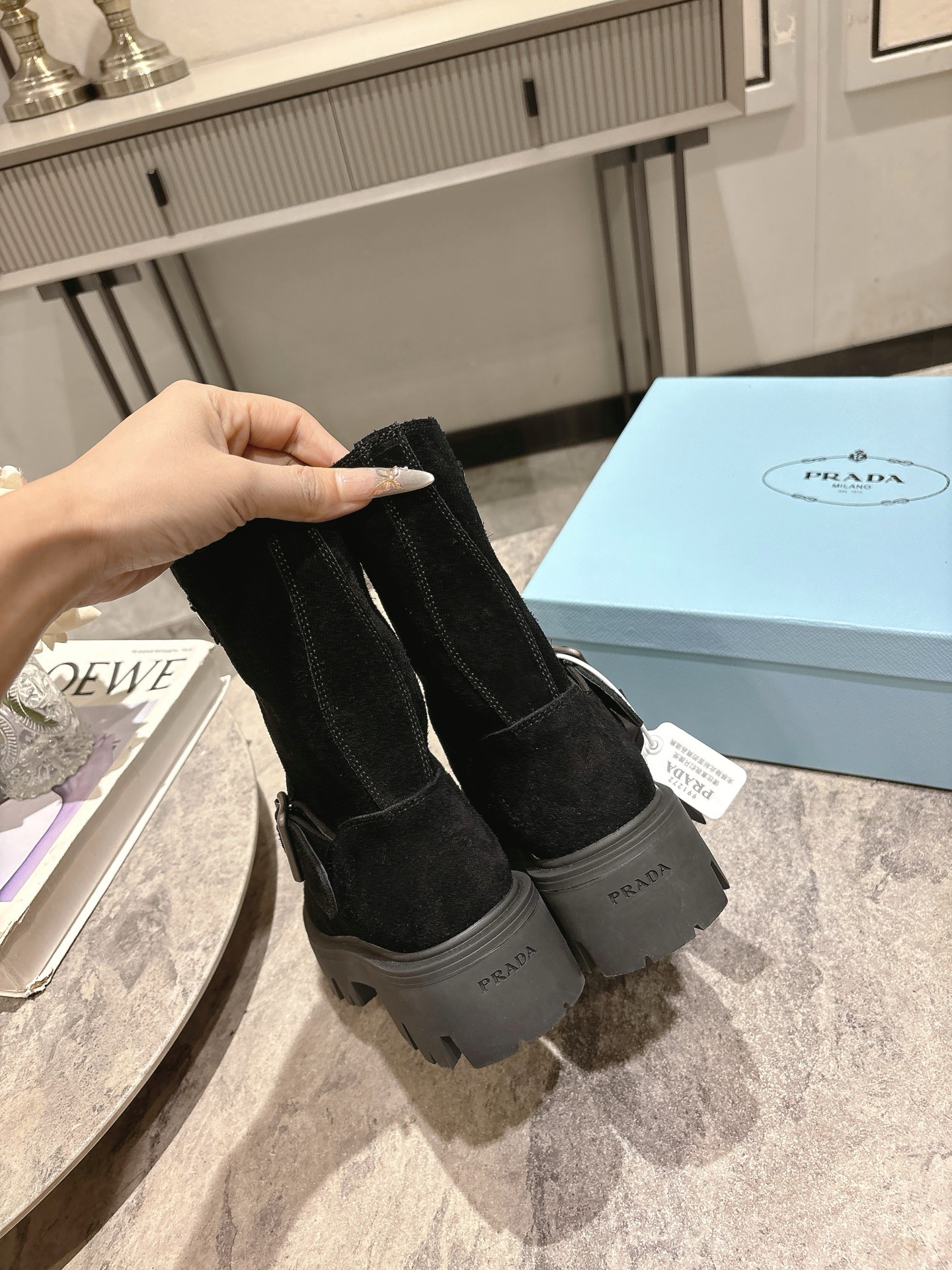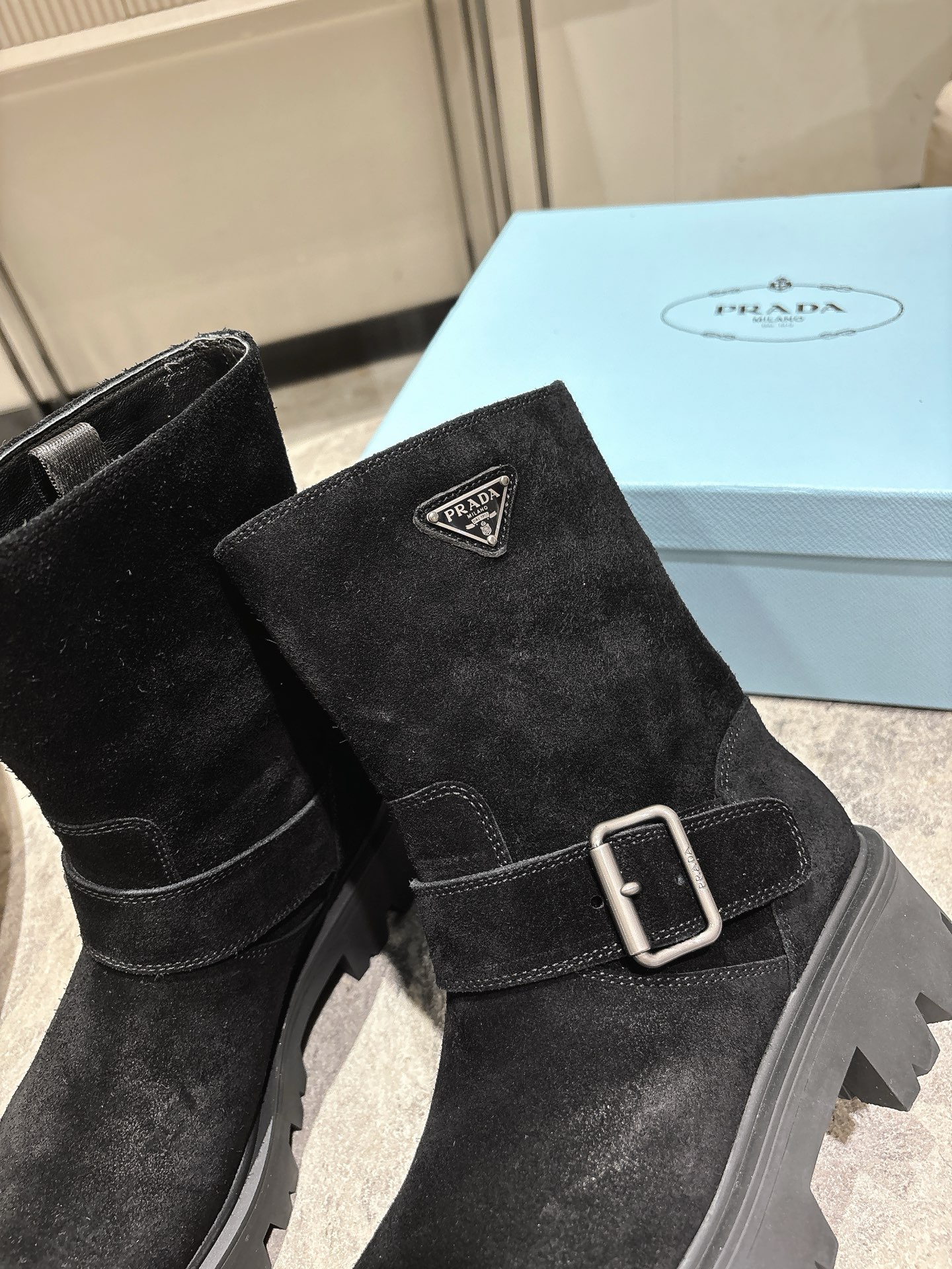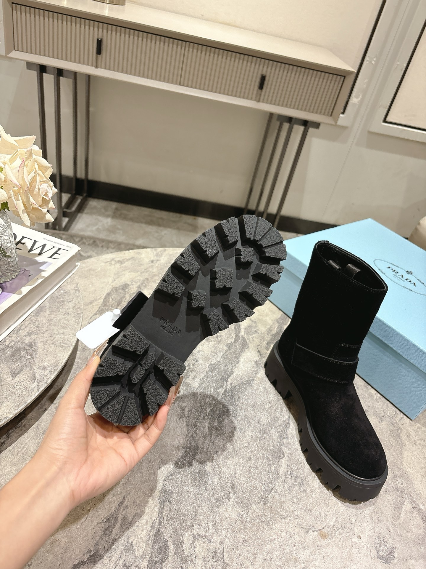这款鞋子是AAAAA 1:1 质量 (非常棒). 使用了和原版一模一样的材料. 商标部分也保持了和普拉达/Prada一样. 图片拍摄是实物鞋子拍摄, 您所收到的实物保证和我们图片一模一样.