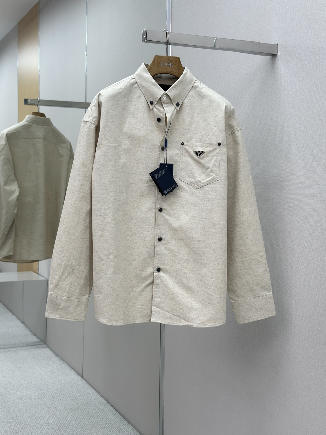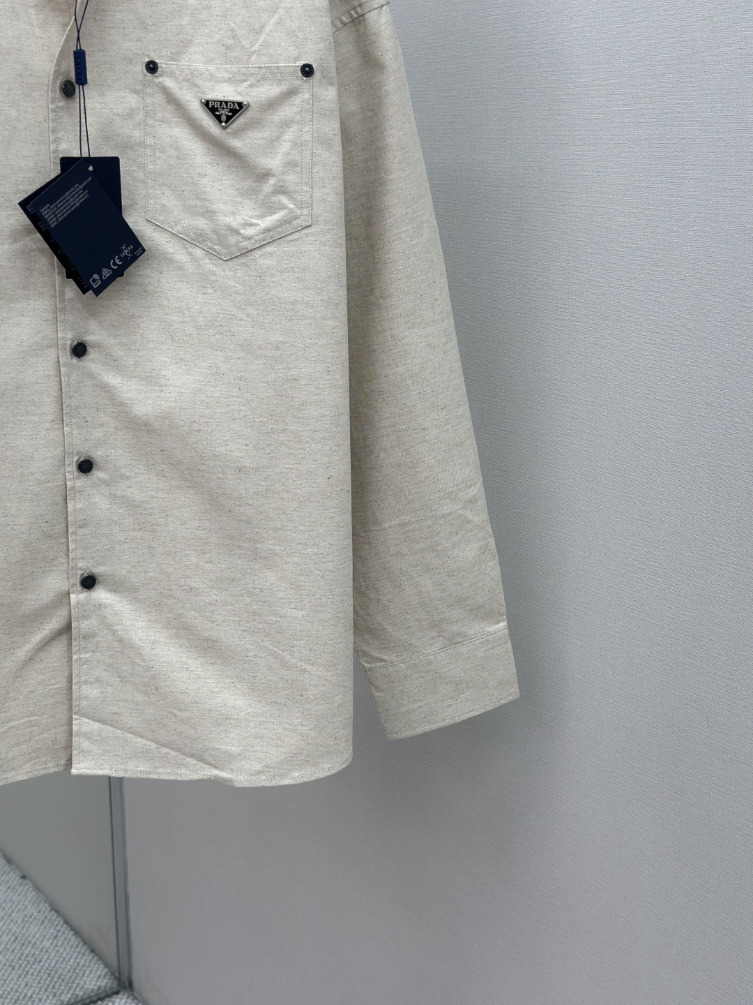 这款衣服是AAAAA 1:1 质量 (非常棒). 使用了和原版一模一样的材料. 商标部分也保持了和普拉达/Prada一样. 图片拍摄是实物衣服拍摄, 您所收到的实物保证和我们图片一模一样.