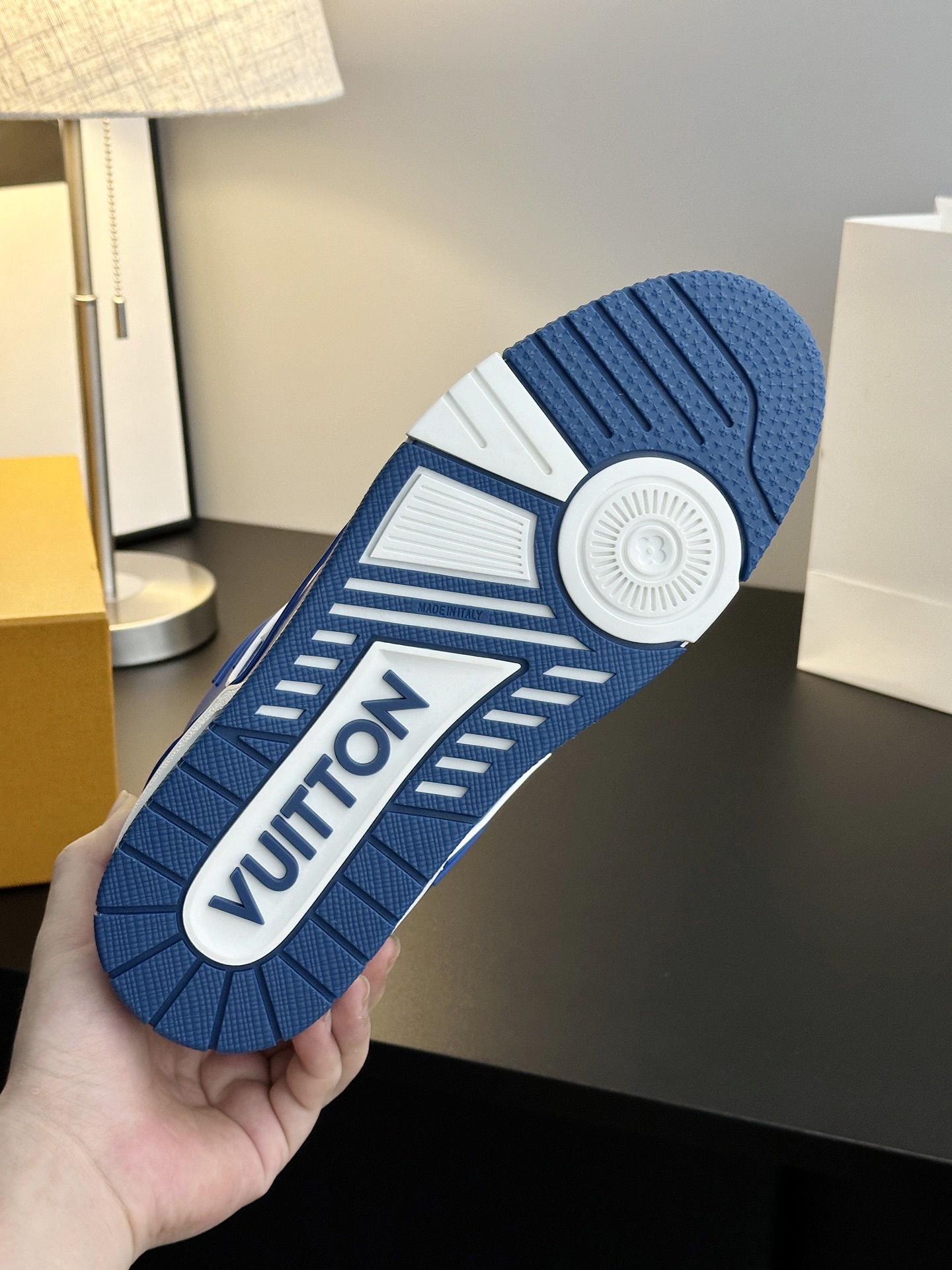 这款鞋子是AAAAA 1:1 质量 (非常棒). 使用了和原版一模一样的材料. 商标部分也保持了和路易威登/Louis Vuitton一样. 图片拍摄是实物鞋子拍摄, 您所收到的实物保证和我们图片一模一样.