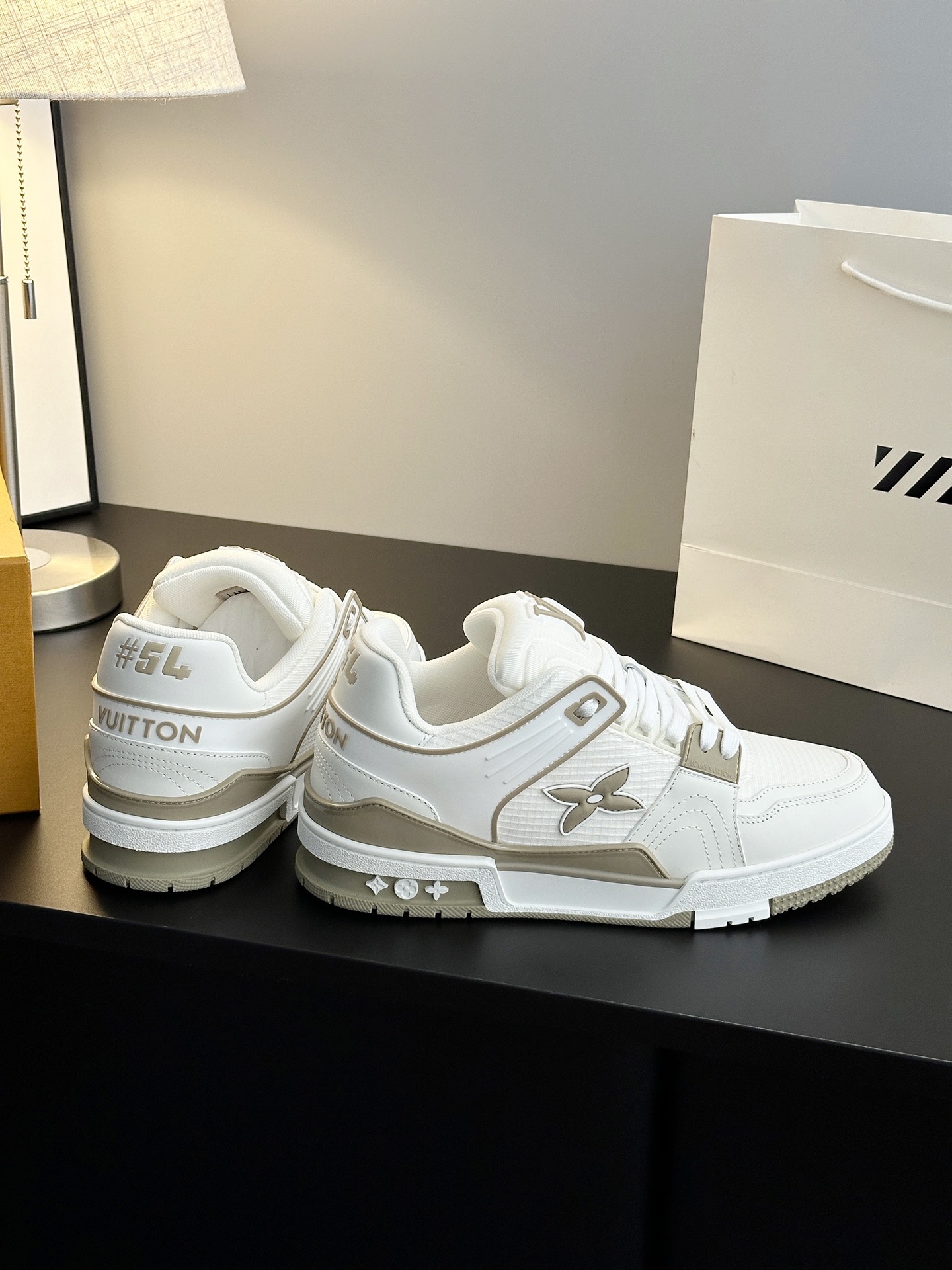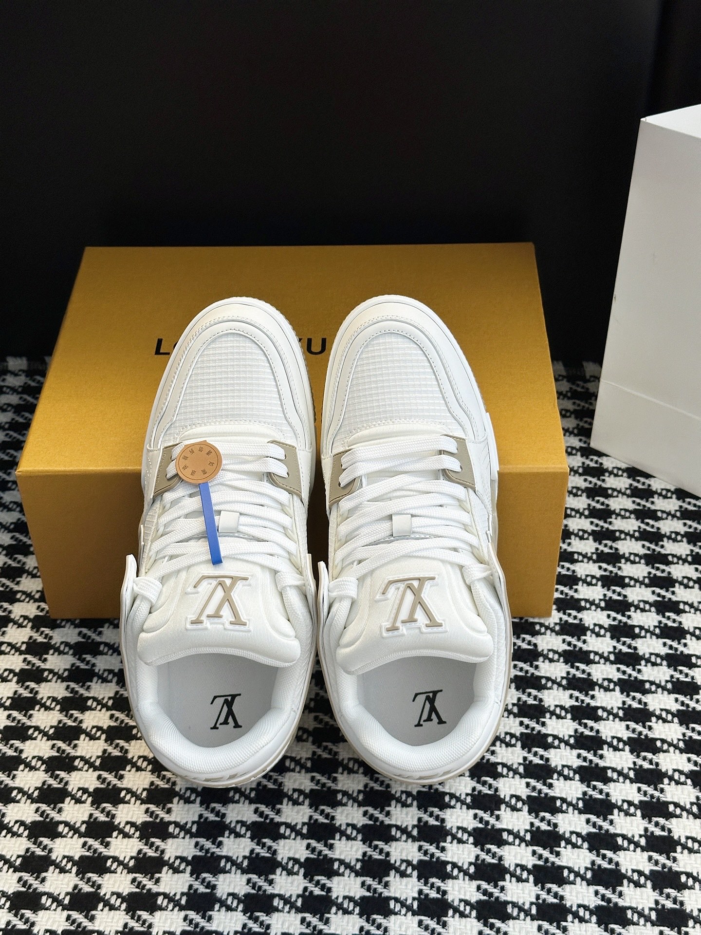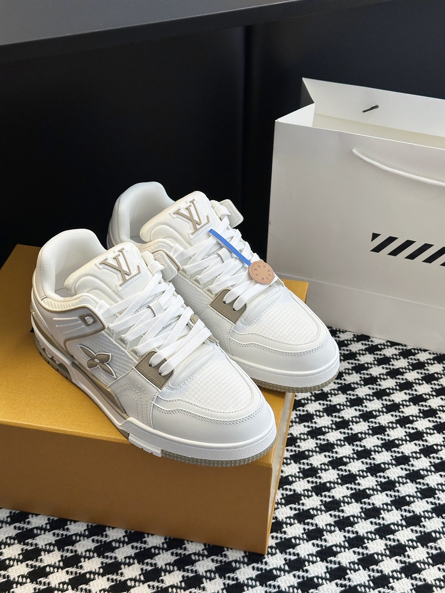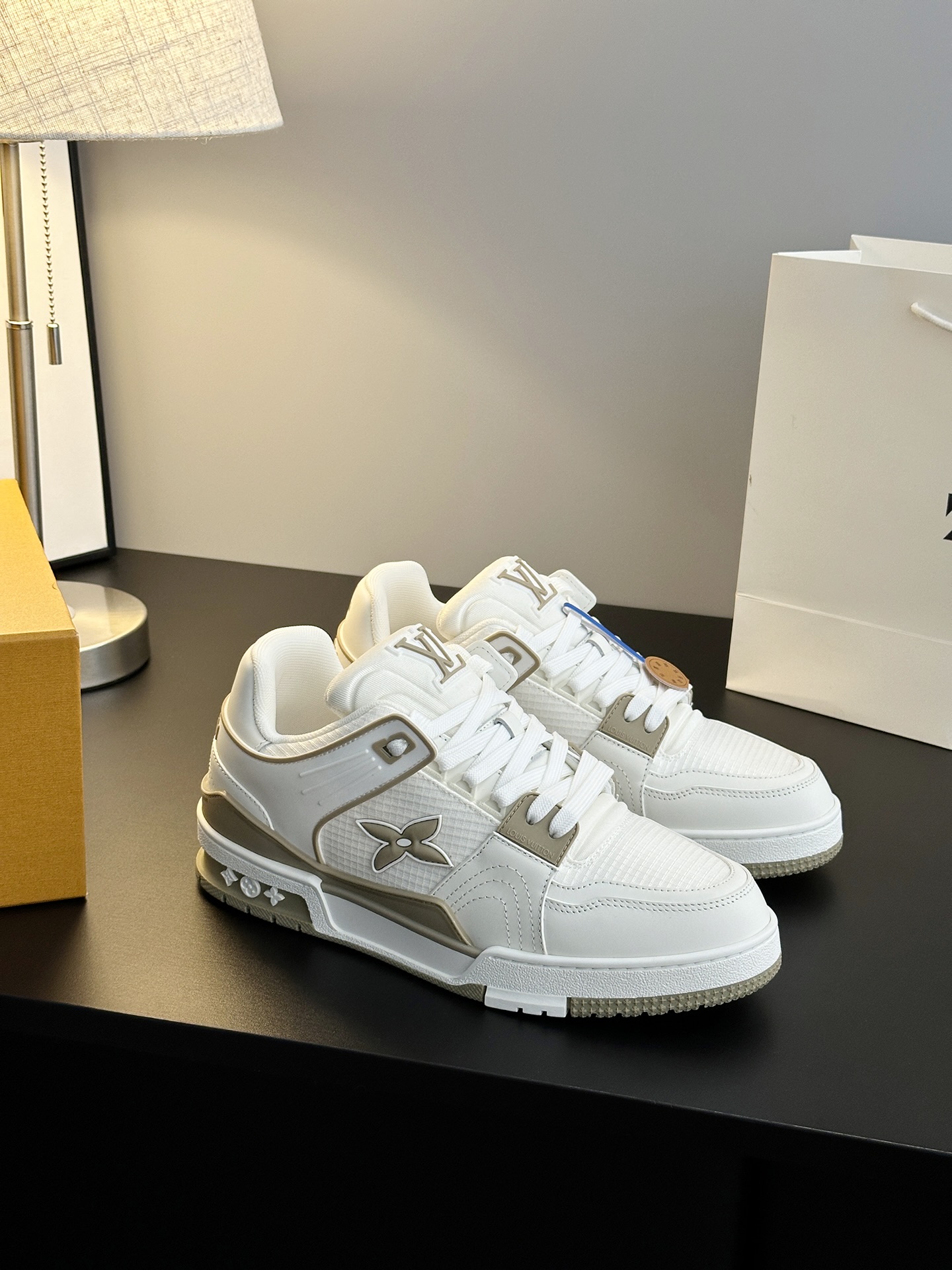 这款鞋子是AAAAA 1:1 质量 (非常棒). 使用了和原版一模一样的材料. 商标部分也保持了和路易威登/Louis Vuitton一样. 图片拍摄是实物鞋子拍摄, 您所收到的实物保证和我们图片一模一样.