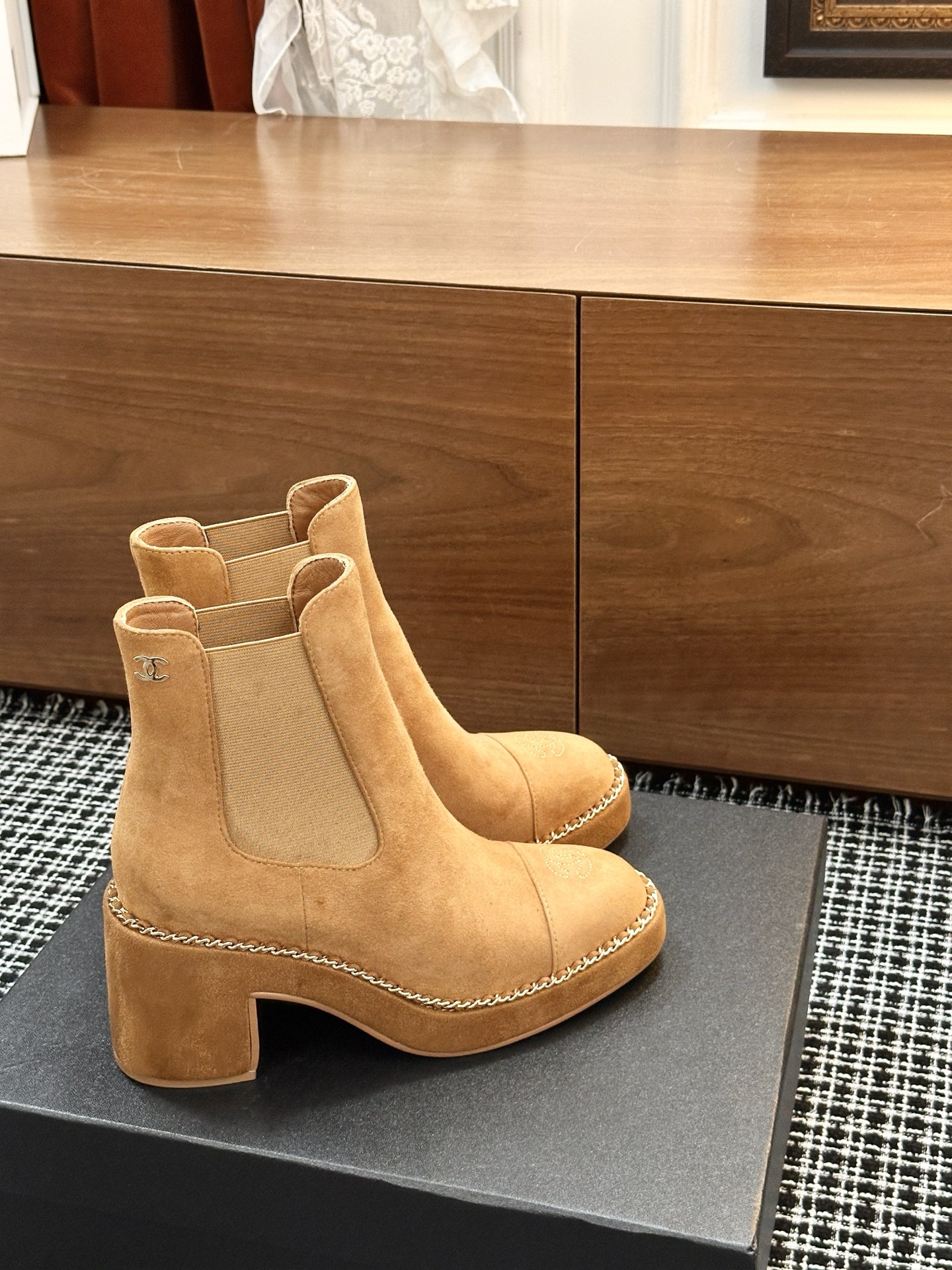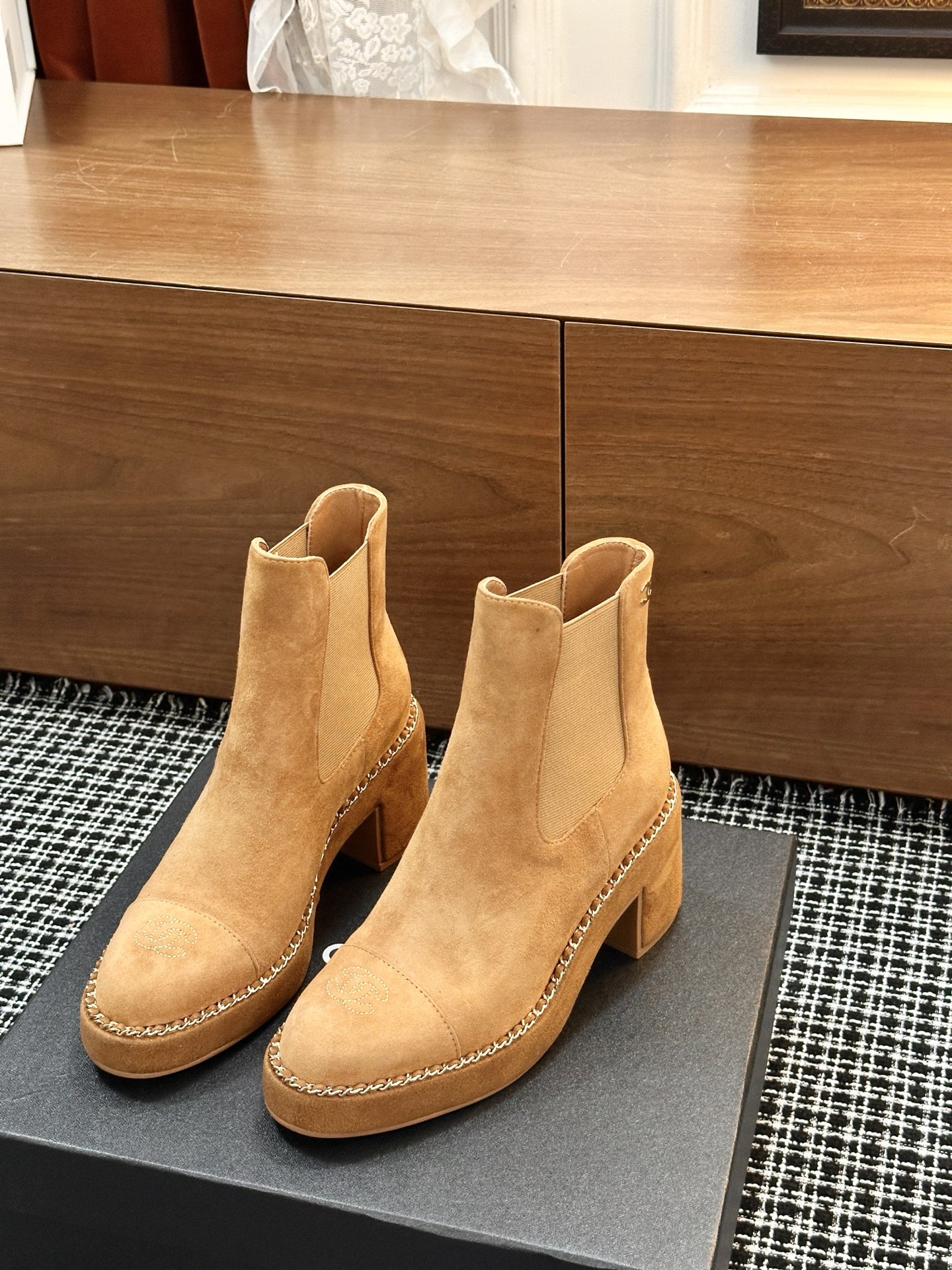 这款鞋子是AAAAA 1:1 质量 (非常棒). 使用了和原版一模一样的材料. 商标部分也保持了和香奈儿/Chanel一样. 图片拍摄是实物鞋子拍摄, 您所收到的实物保证和我们图片一模一样.