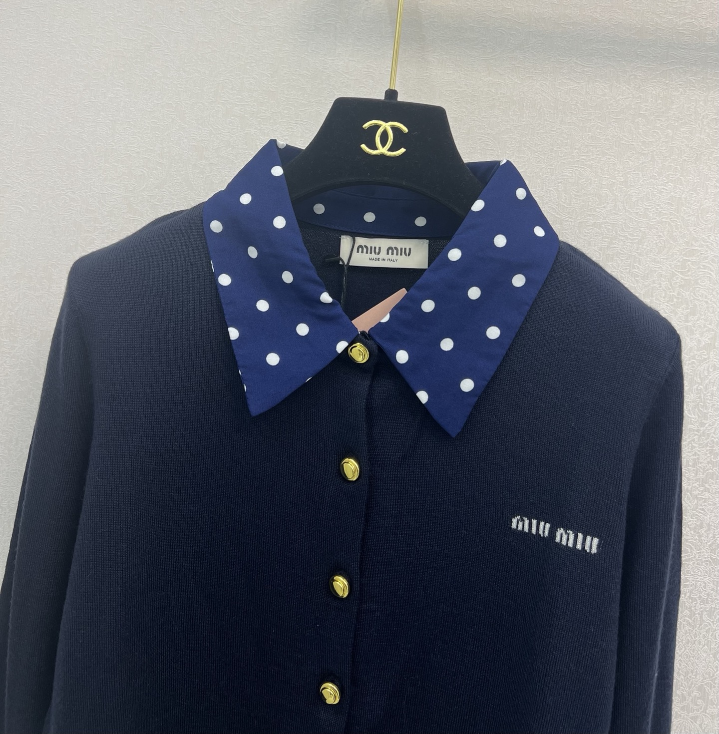 这款衣服是AAAAA 1:1 质量 (非常棒). 使用了和原版一模一样的材料. 商标部分也保持了和缪缪/Miu Miu一样. 图片拍摄是实物衣服拍摄, 您所收到的实物保证和我们图片一模一样.