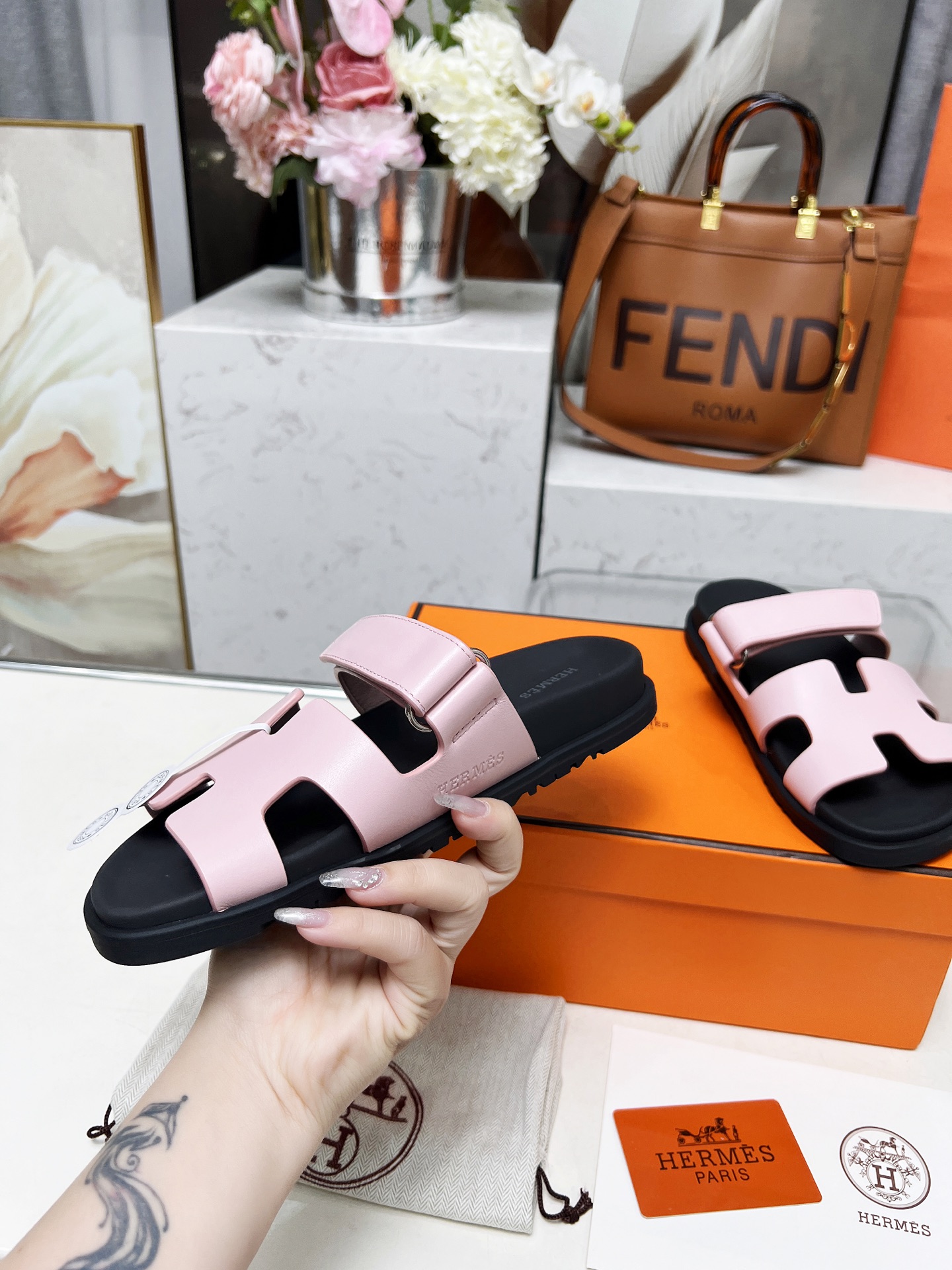 这款鞋子是AAAAA 1:1 质量 (非常棒). 使用了和原版一模一样的材料. 商标部分也保持了和爱马仕/Hermes一样. 图片拍摄是实物鞋子拍摄, 您所收到的实物保证和我们图片一模一样.