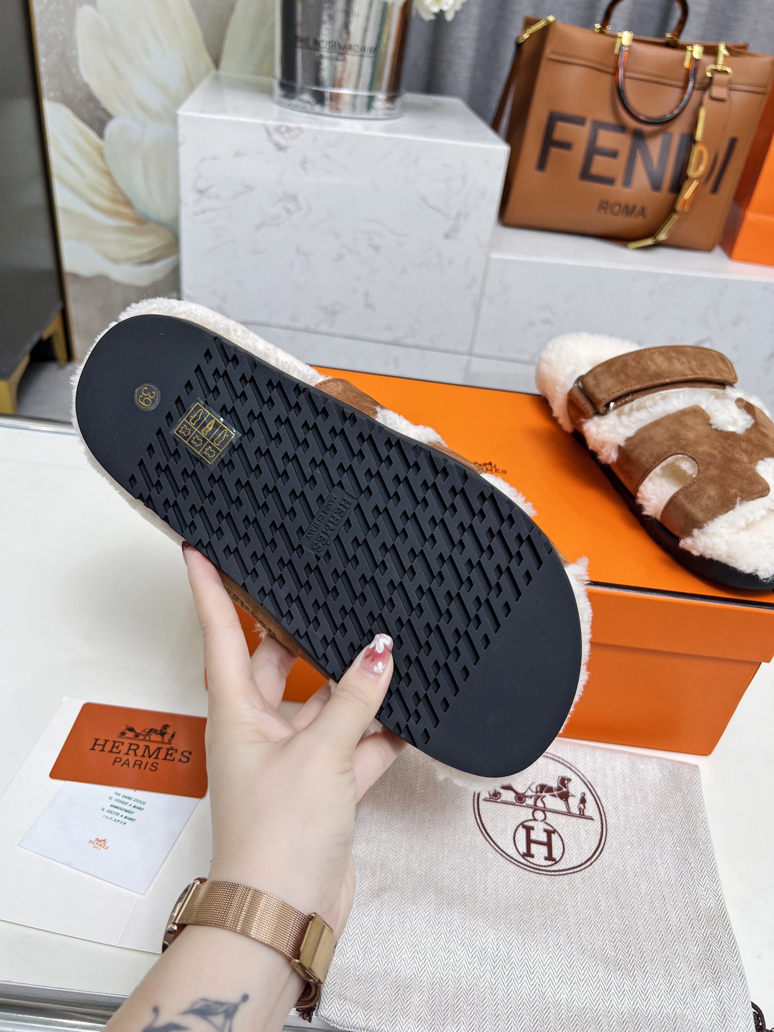 这款鞋子是AAAAA 1:1 质量 (非常棒). 使用了和原版一模一样的材料. 商标部分也保持了和爱马仕/Hermes一样. 图片拍摄是实物鞋子拍摄, 您所收到的实物保证和我们图片一模一样.