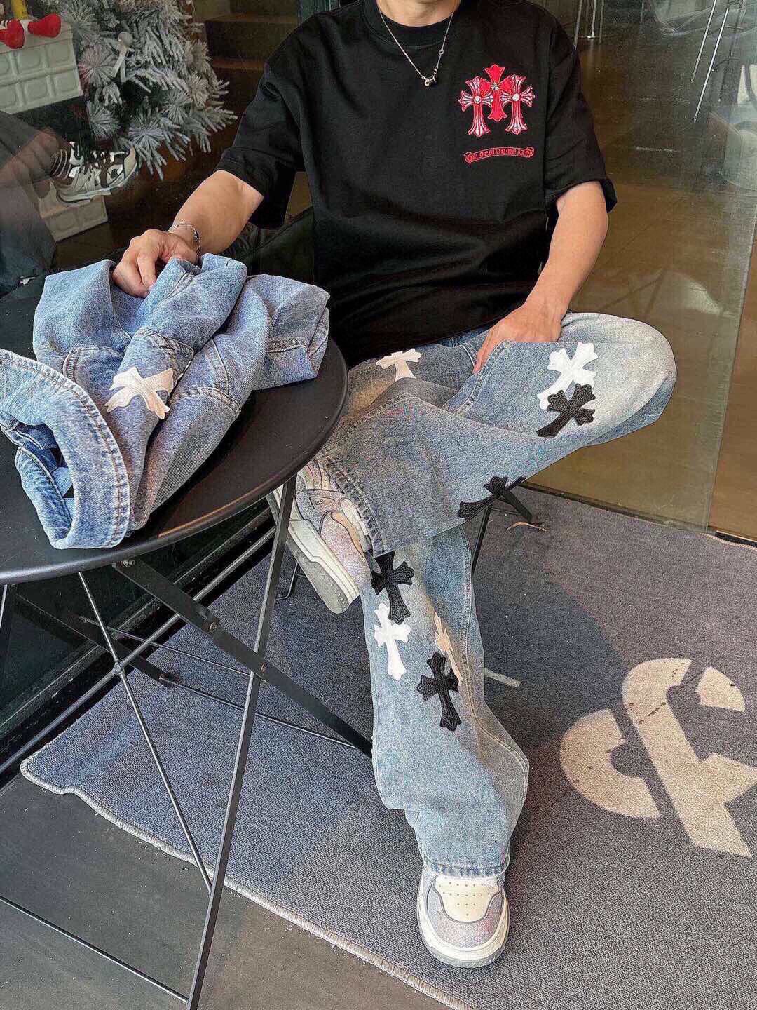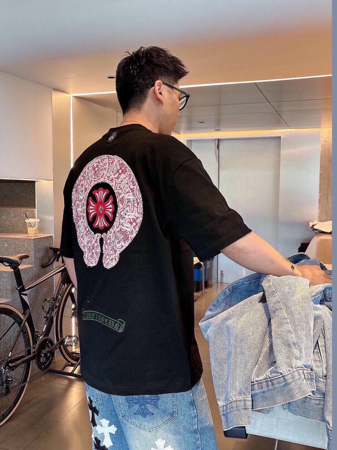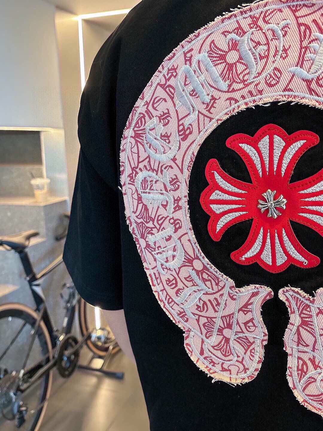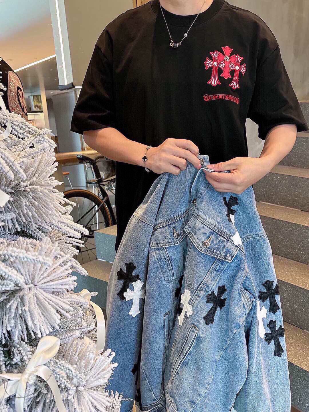 这款衣服是AAAAA 1:1 质量 (非常棒). 使用了和原版一模一样的材料. 商标部分也保持了和克罗心/Chrome Hearts一样. 图片拍摄是实物衣服拍摄, 您所收到的实物保证和我们图片一模一样.