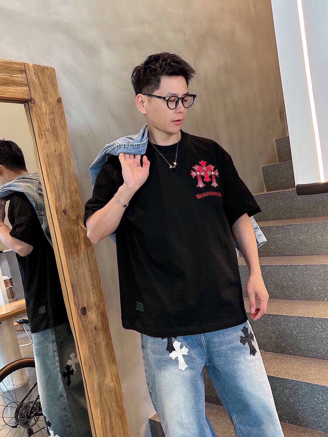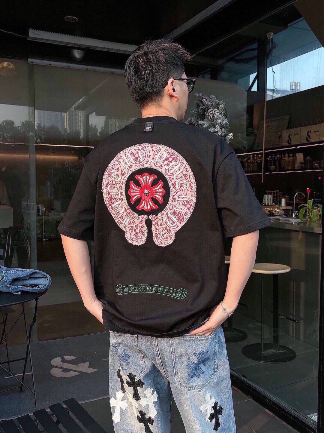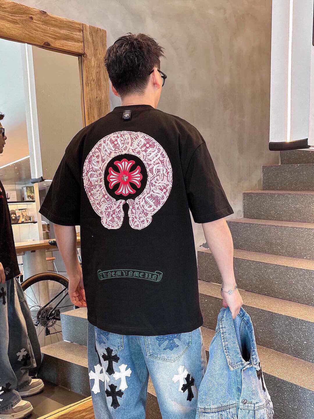 这款衣服是AAAAA 1:1 质量 (非常棒). 使用了和原版一模一样的材料. 商标部分也保持了和克罗心/Chrome Hearts一样. 图片拍摄是实物衣服拍摄, 您所收到的实物保证和我们图片一模一样.