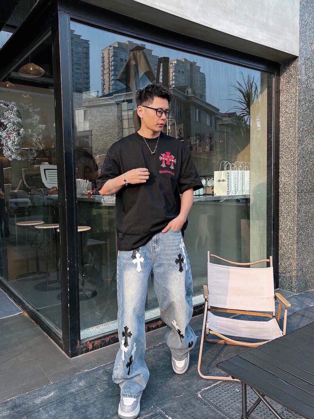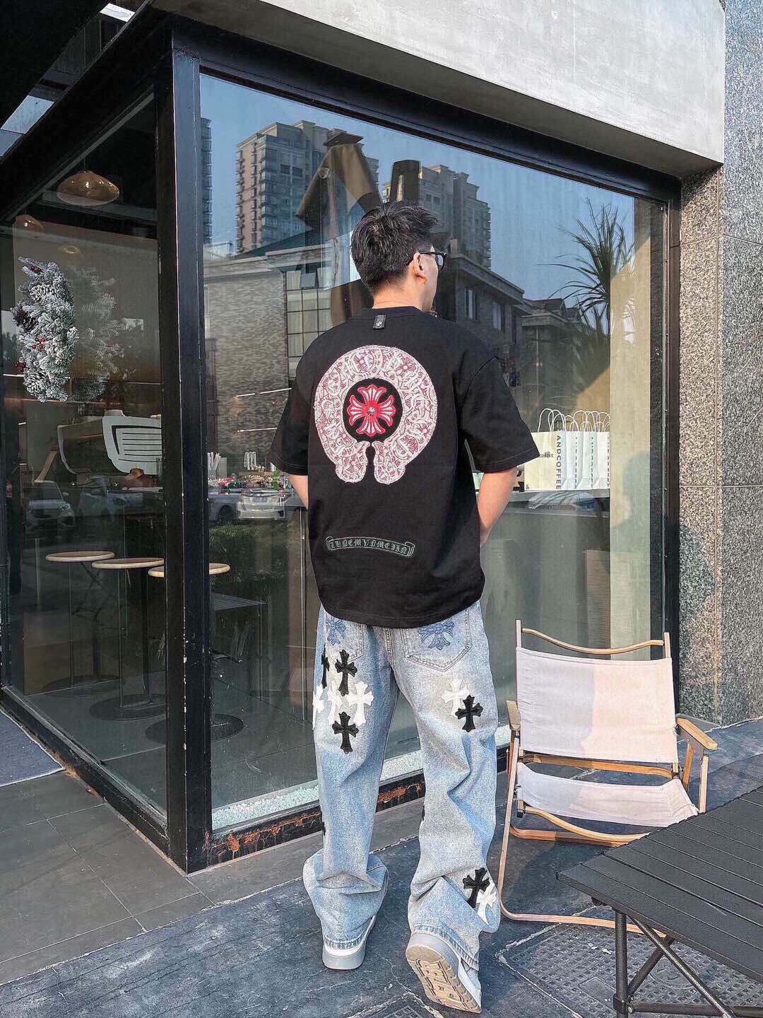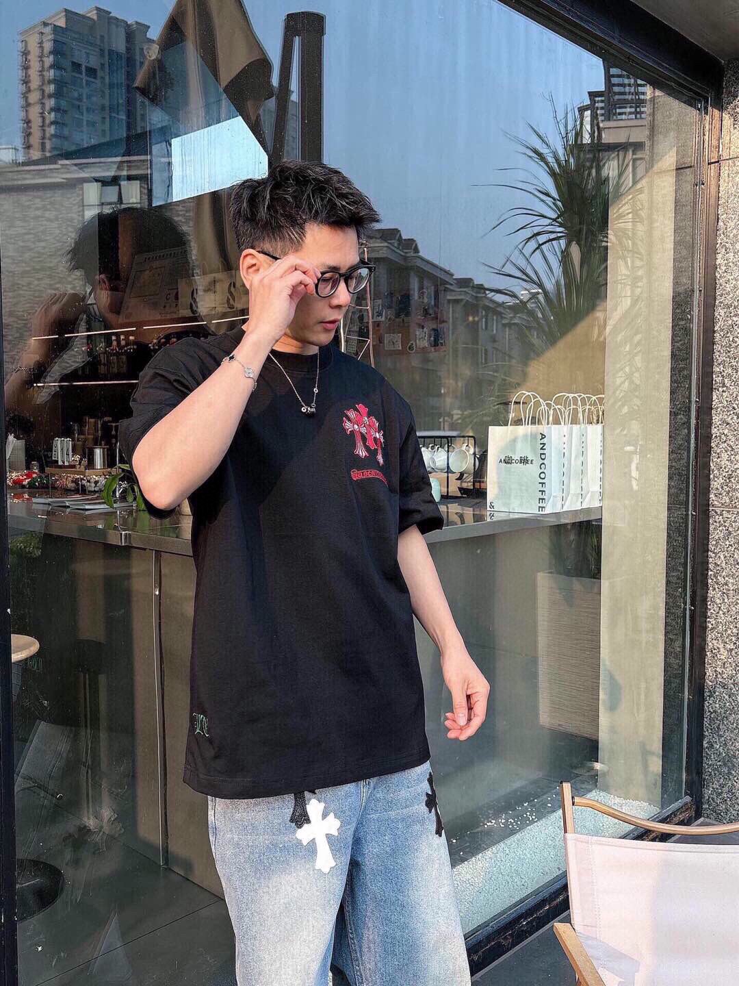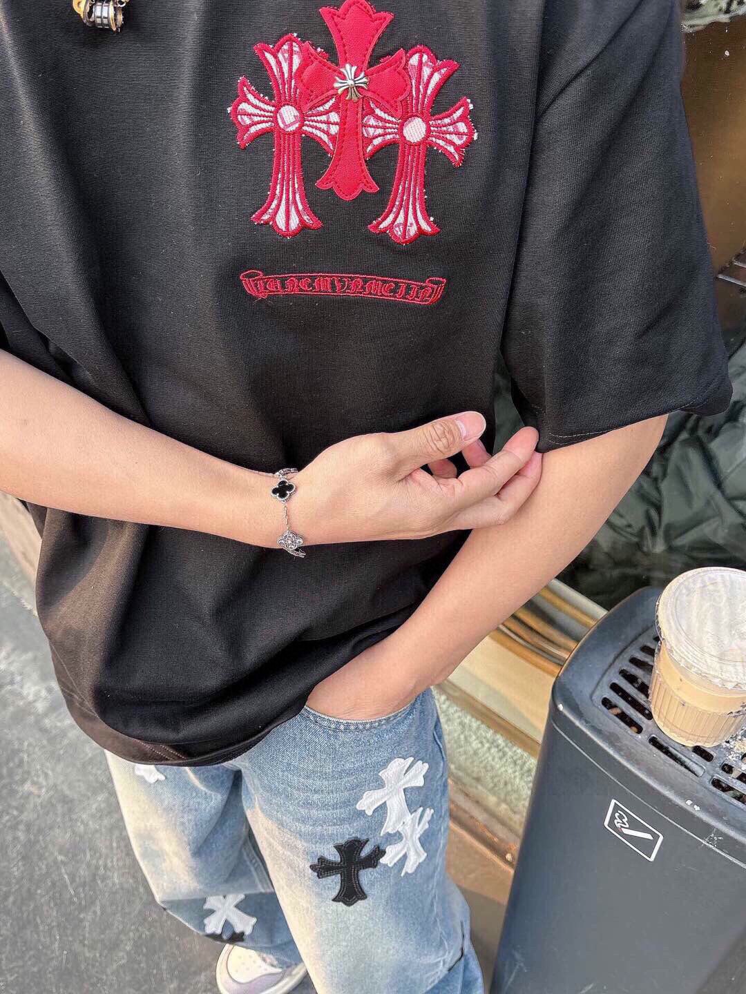 这款衣服是AAAAA 1:1 质量 (非常棒). 使用了和原版一模一样的材料. 商标部分也保持了和克罗心/Chrome Hearts一样. 图片拍摄是实物衣服拍摄, 您所收到的实物保证和我们图片一模一样.