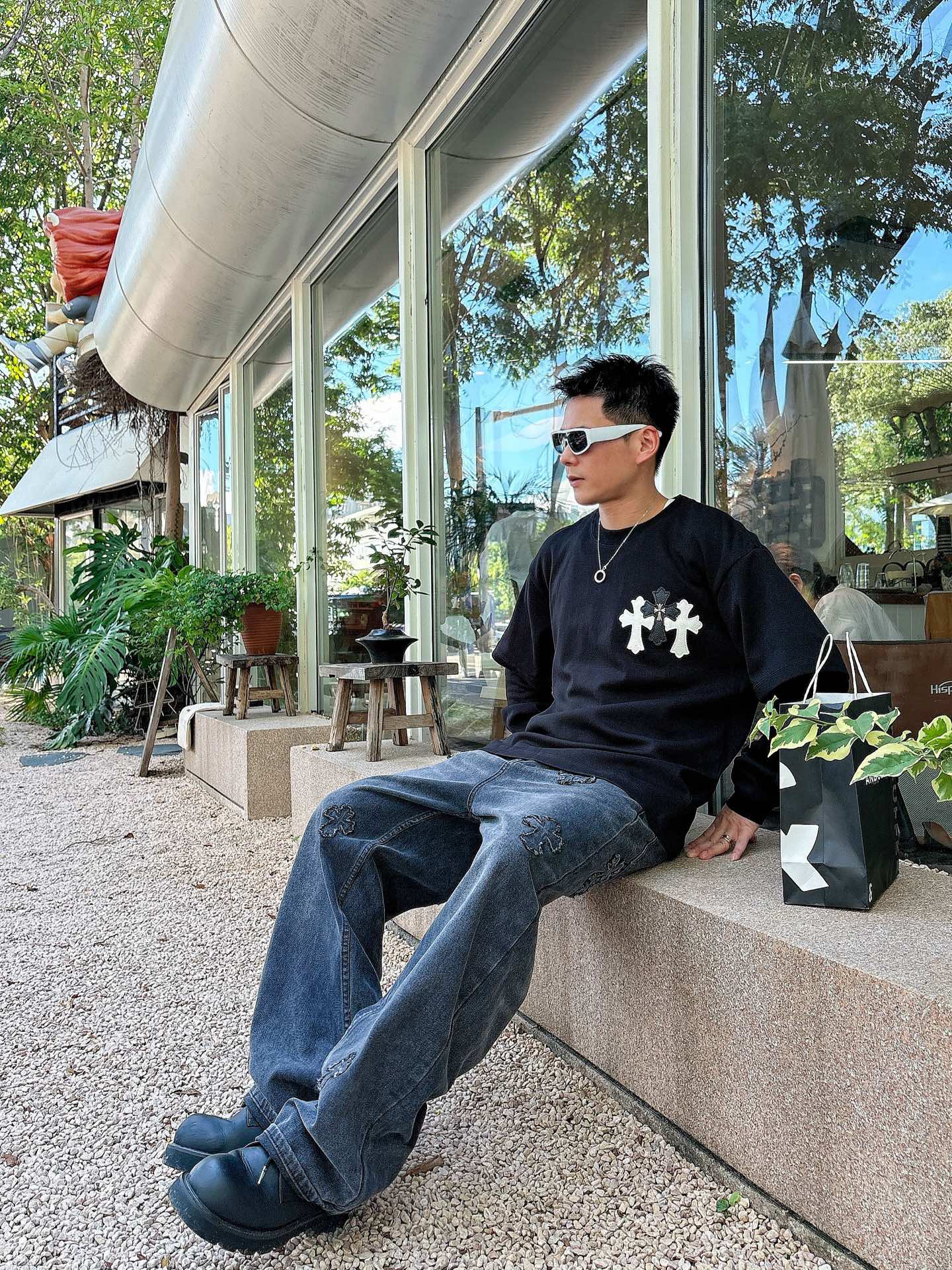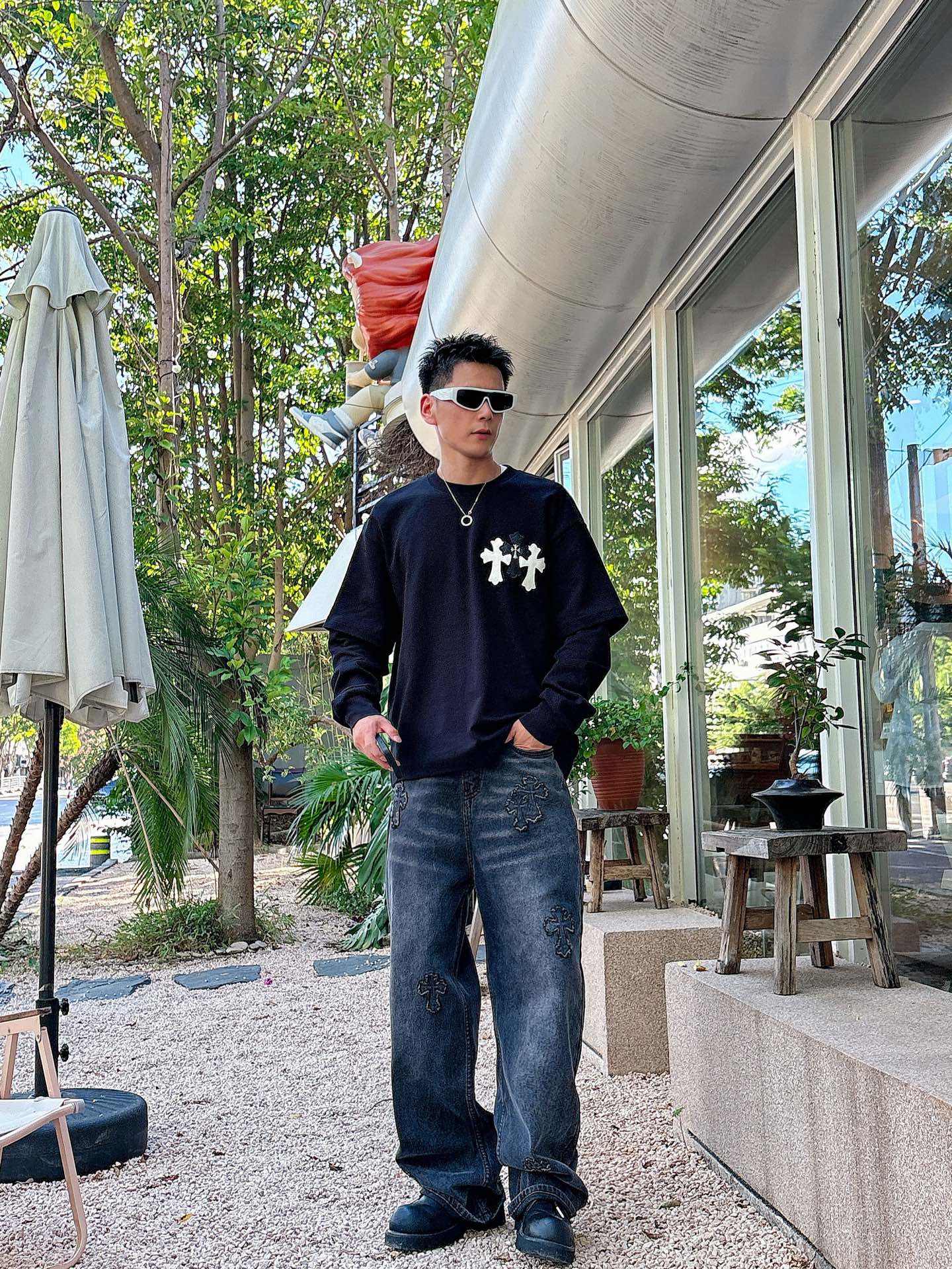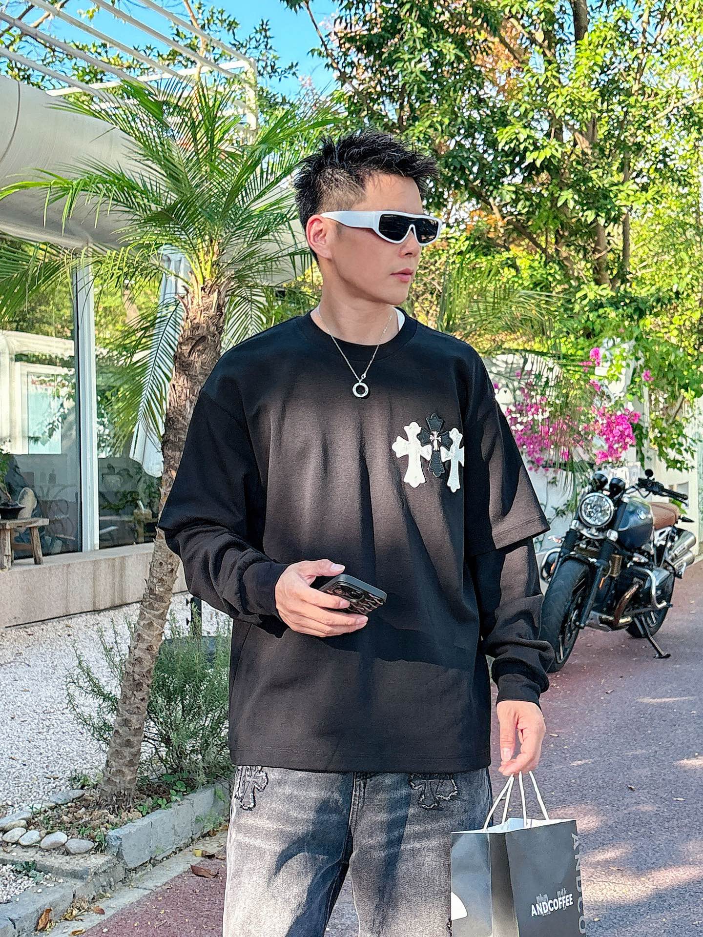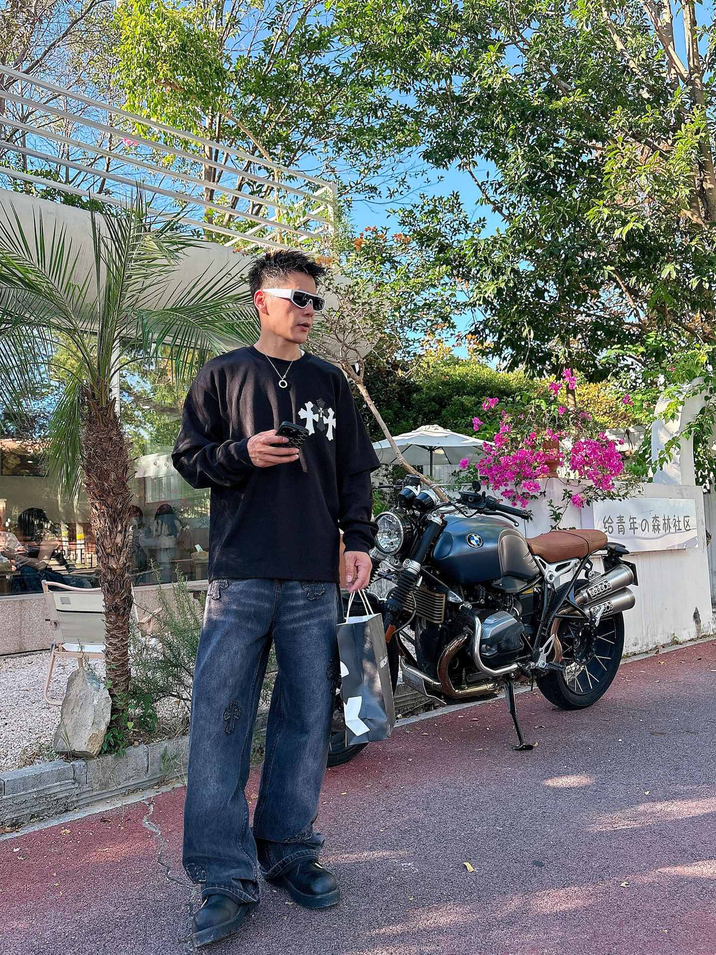 这款衣服是AAAAA 1:1 质量 (非常棒). 使用了和原版一模一样的材料. 商标部分也保持了和克罗心/Chrome Hearts一样. 图片拍摄是实物衣服拍摄, 您所收到的实物保证和我们图片一模一样.