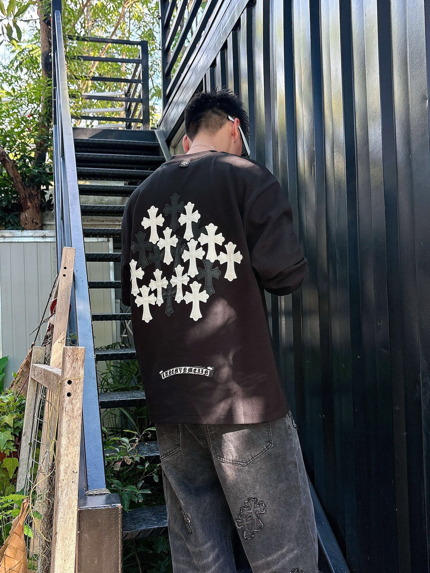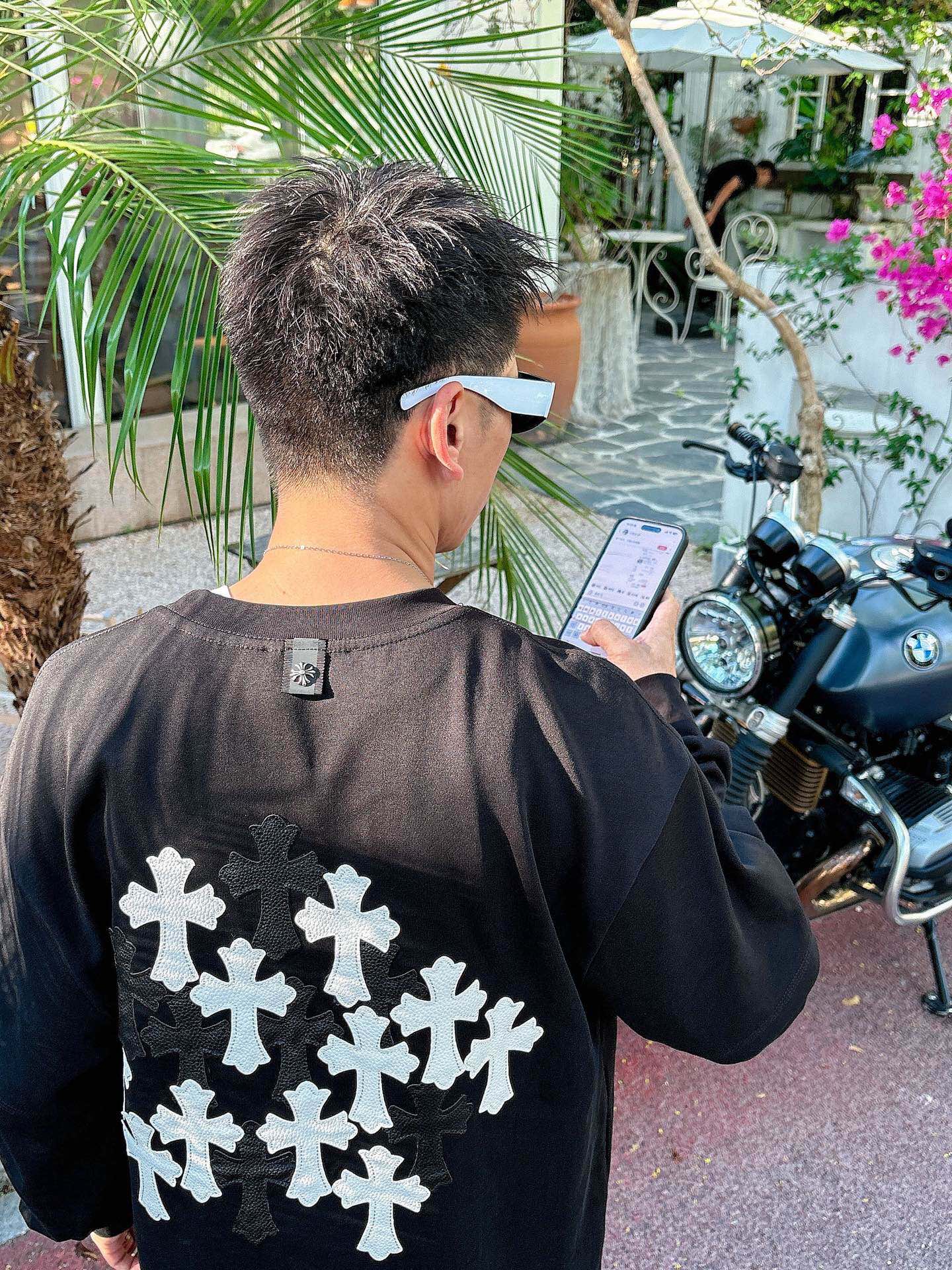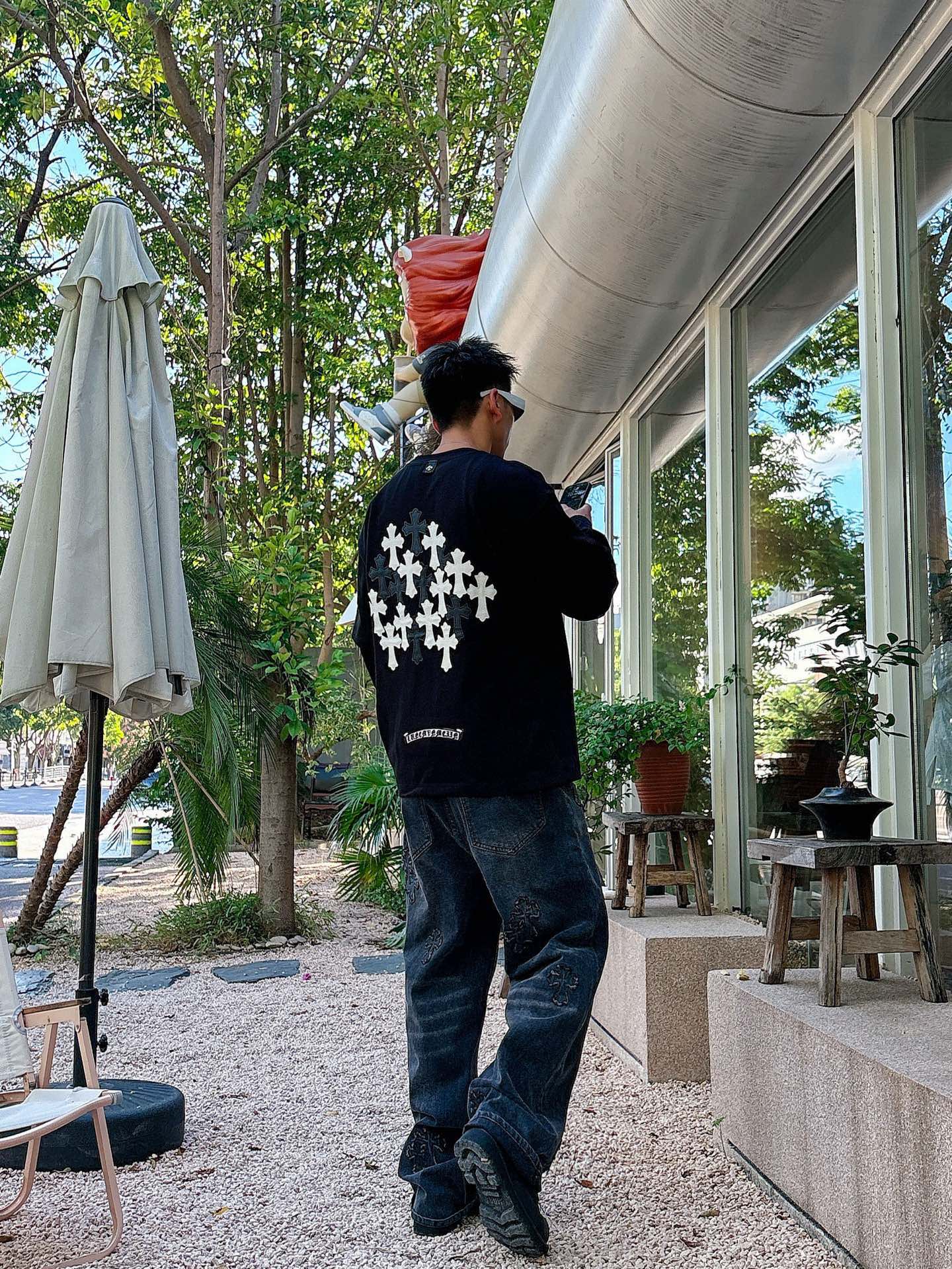 这款衣服是AAAAA 1:1 质量 (非常棒). 使用了和原版一模一样的材料. 商标部分也保持了和克罗心/Chrome Hearts一样. 图片拍摄是实物衣服拍摄, 您所收到的实物保证和我们图片一模一样.