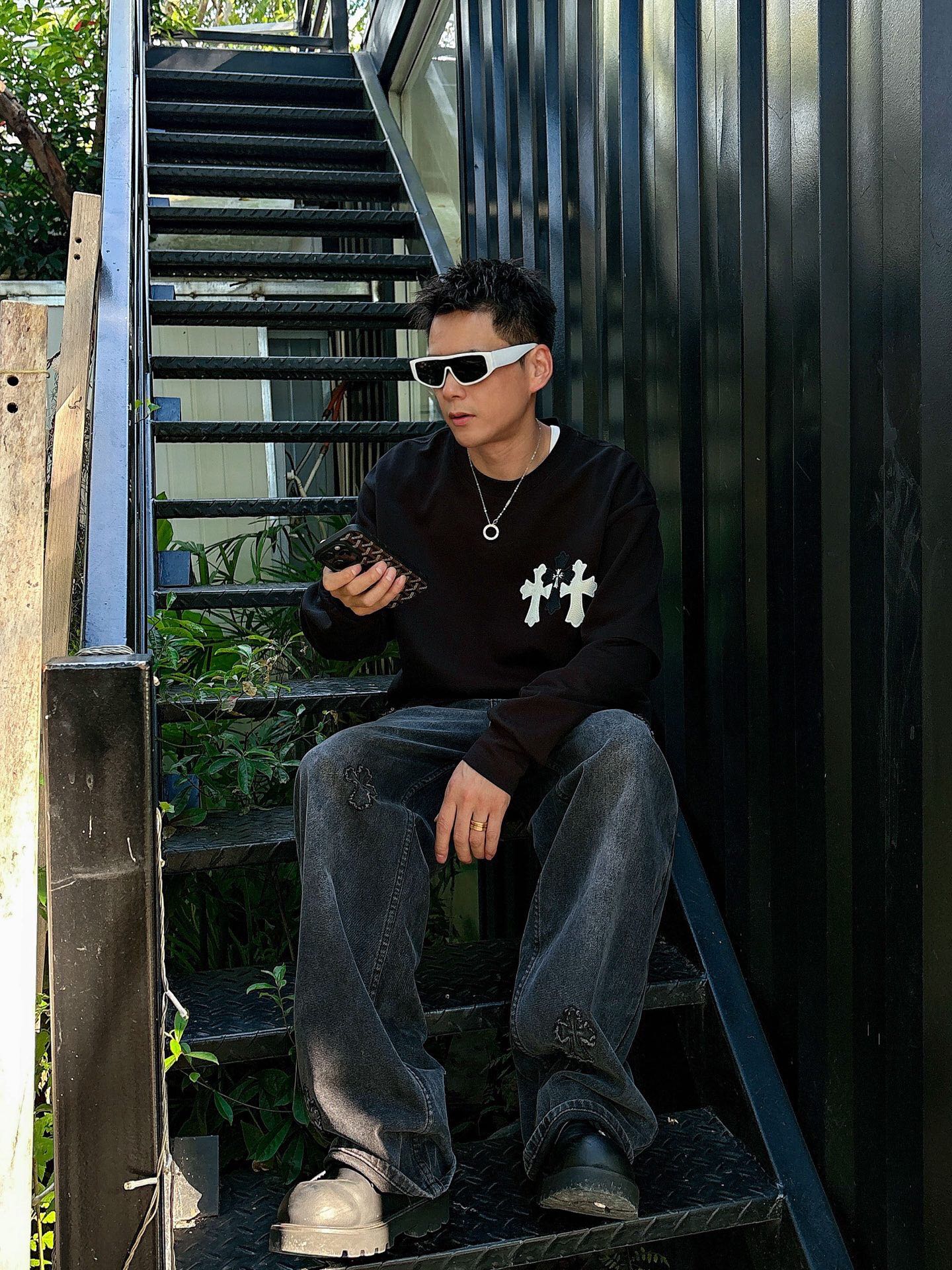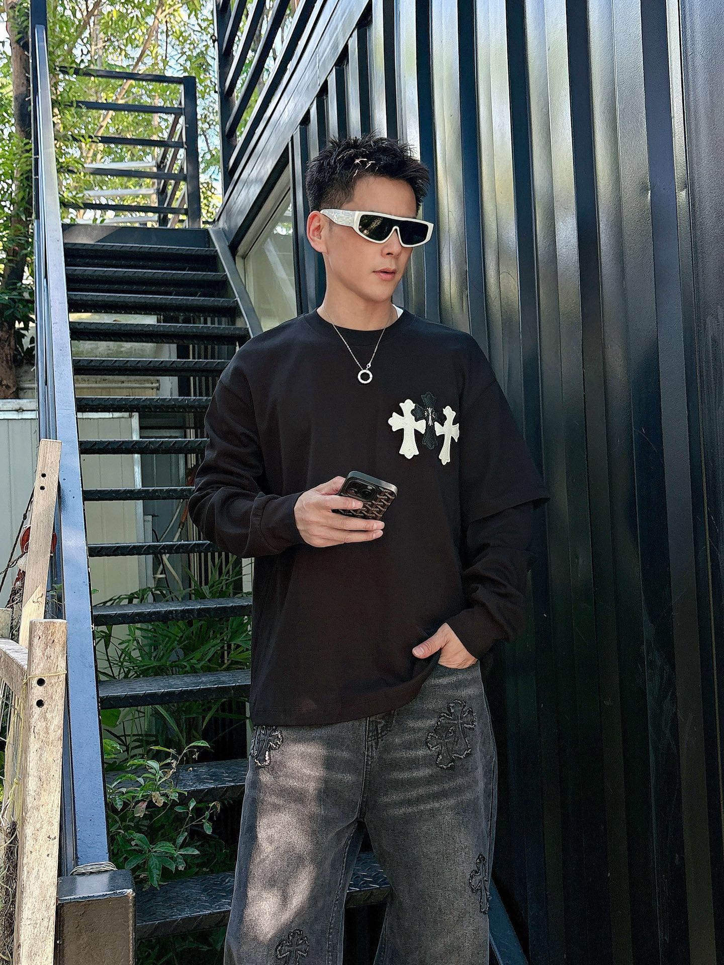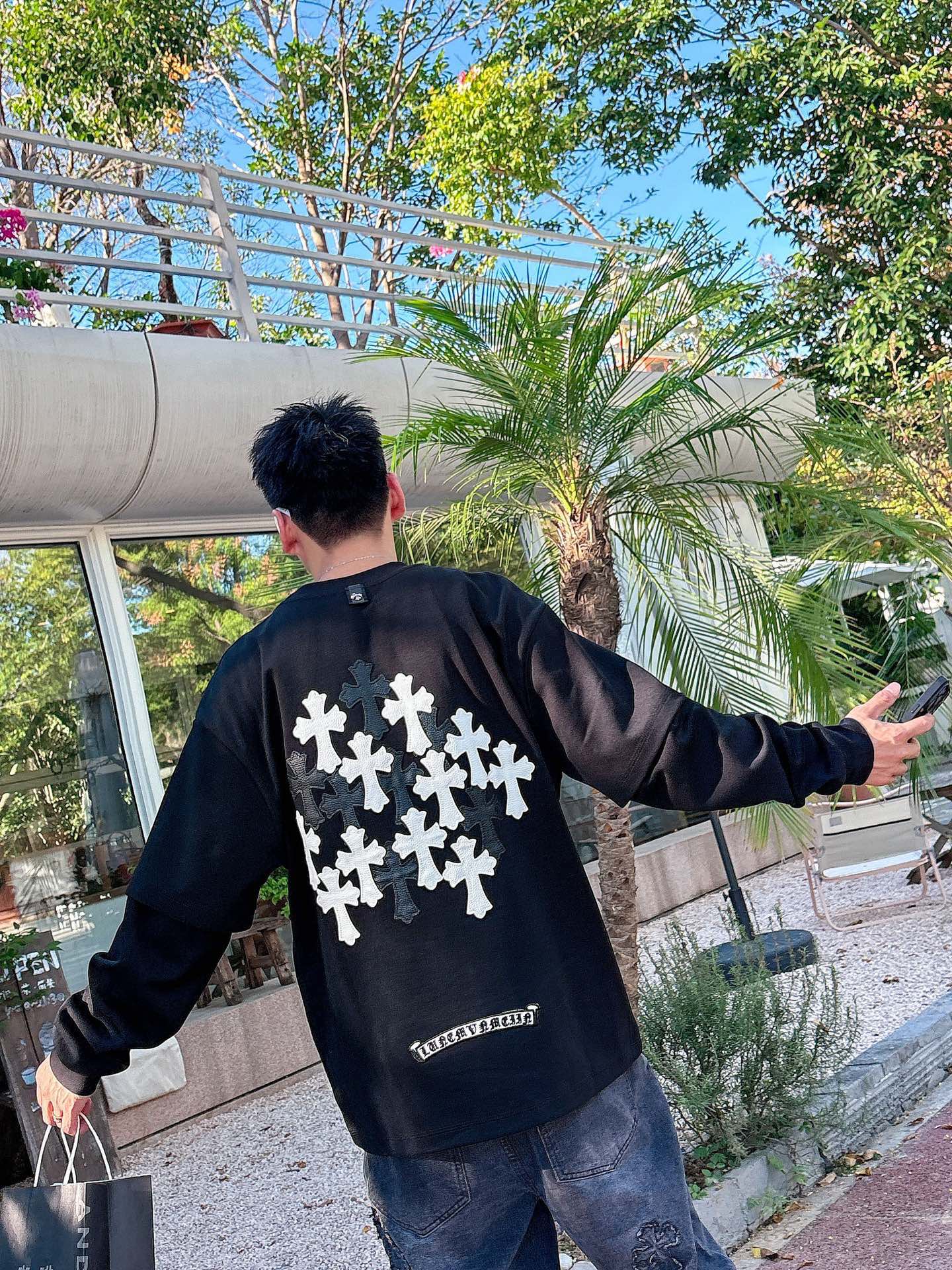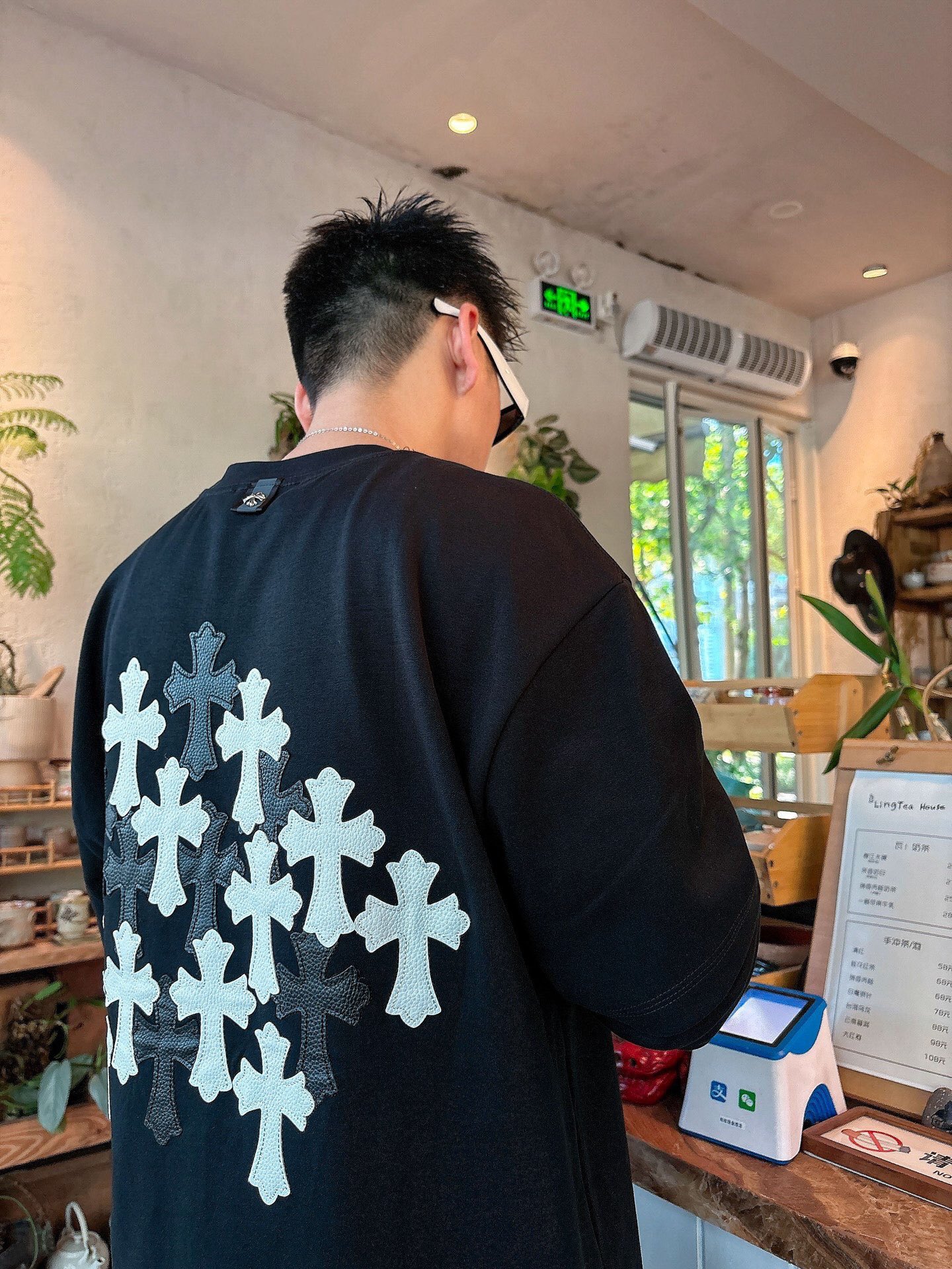 这款衣服是AAAAA 1:1 质量 (非常棒). 使用了和原版一模一样的材料. 商标部分也保持了和克罗心/Chrome Hearts一样. 图片拍摄是实物衣服拍摄, 您所收到的实物保证和我们图片一模一样.