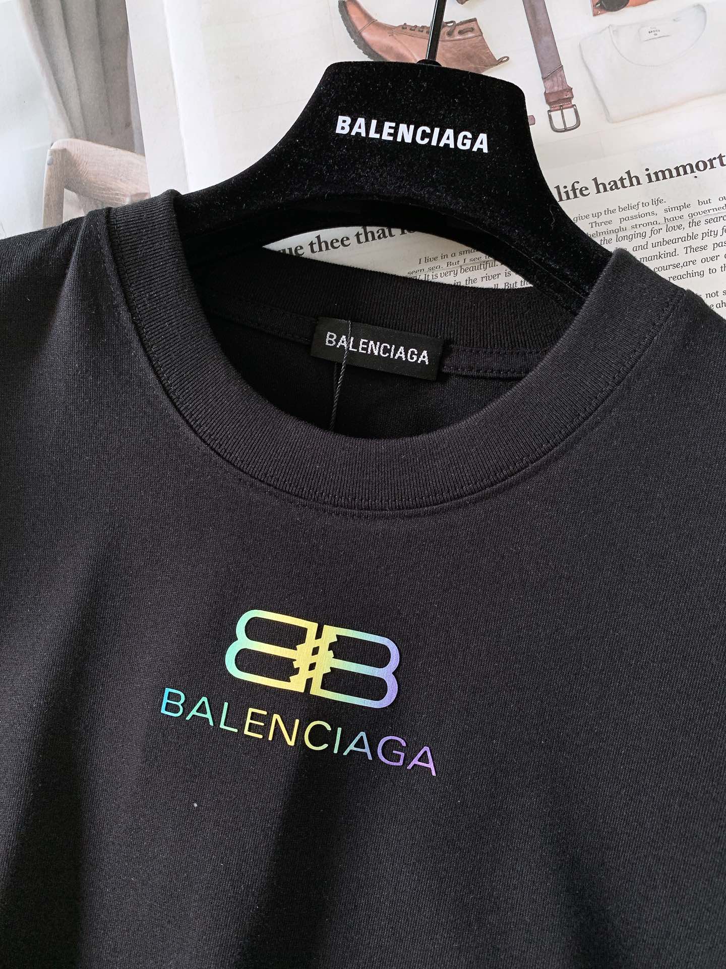 这款衣服是AAAAA 1:1 质量 (非常棒). 使用了和原版一模一样的材料. 商标部分也保持了和巴黎世家/Balenciaga一样. 图片拍摄是实物衣服拍摄, 您所收到的实物保证和我们图片一模一样.