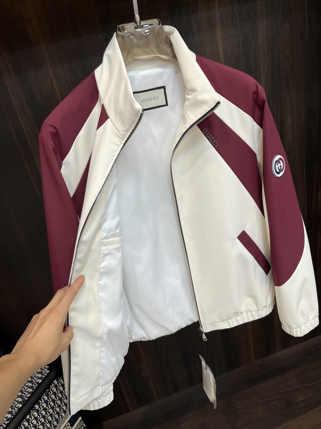这款衣服是AAAAA 1:1 质量 (非常棒). 使用了和原版一模一样的材料. 商标部分也保持了和古奇/Gucci一样. 图片拍摄是实物衣服拍摄, 您所收到的实物保证和我们图片一模一样.
