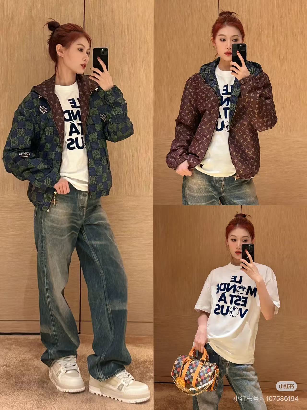 这款衣服是AAAAA 1:1 质量 (非常棒). 使用了和原版一模一样的材料. 商标部分也保持了和路易威登/Louis Vuitton一样. 图片拍摄是实物衣服拍摄, 您所收到的实物保证和我们图片一模一样.